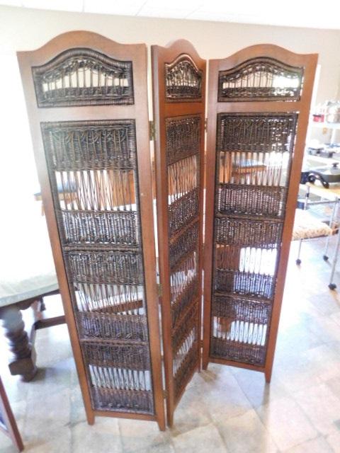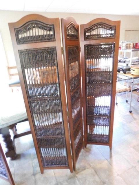 Rattan Wicker and Wood Frame Three Panel Screen 51"x72" Choice One expect some wear or scratches. Lower Level. small grassy incline to reach drive. Bring assistance