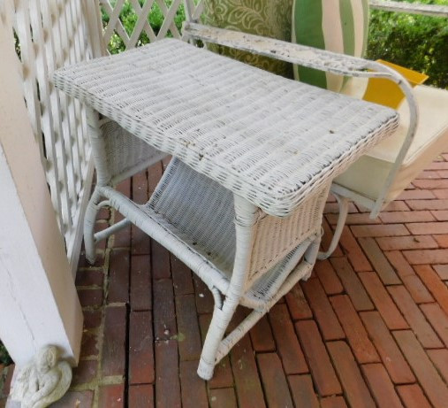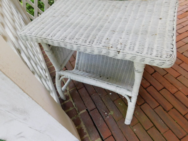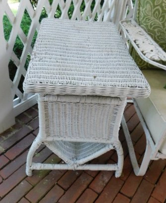 Rattan Wicker Weave Side Table and Magazine Rack paint is chipping