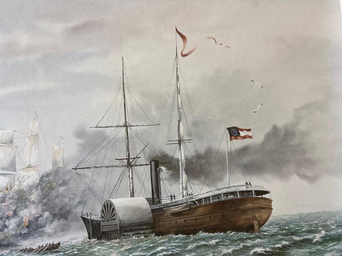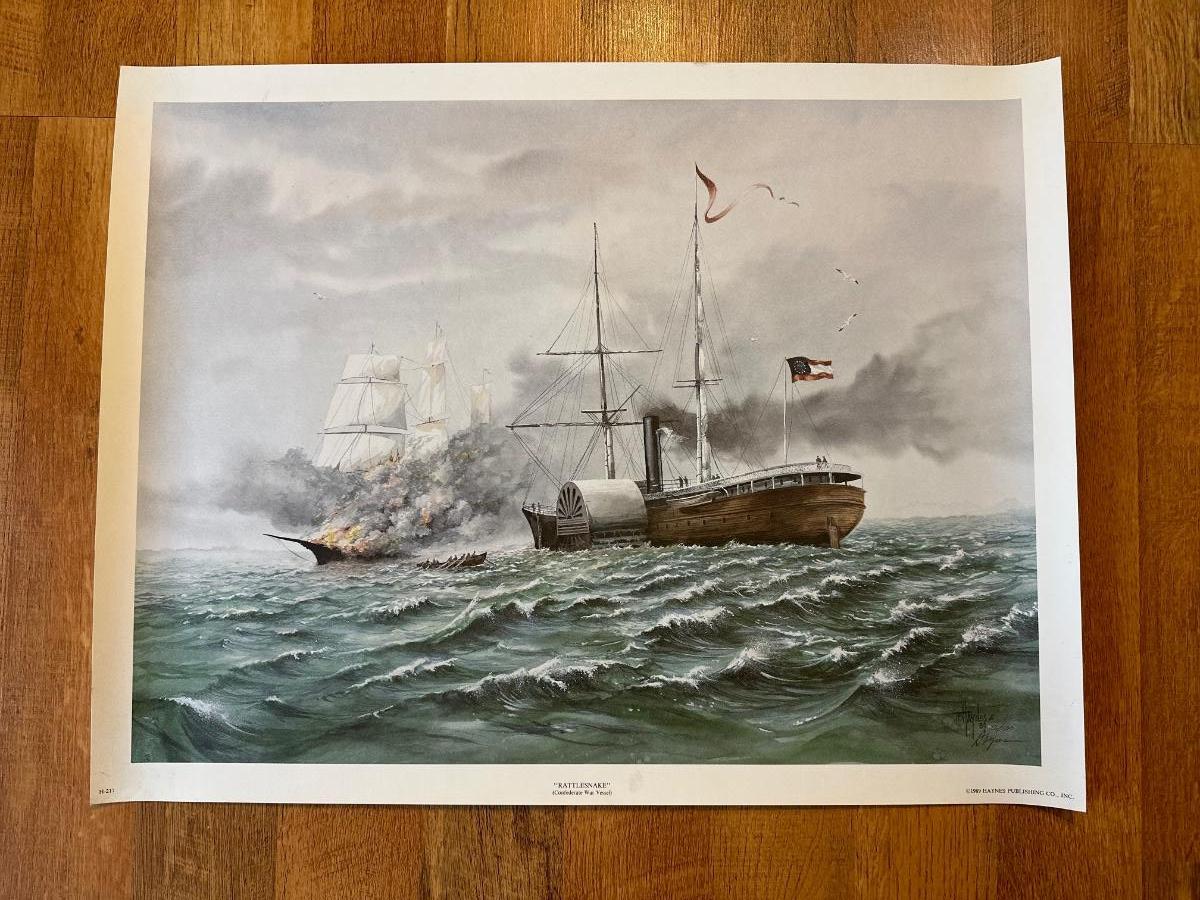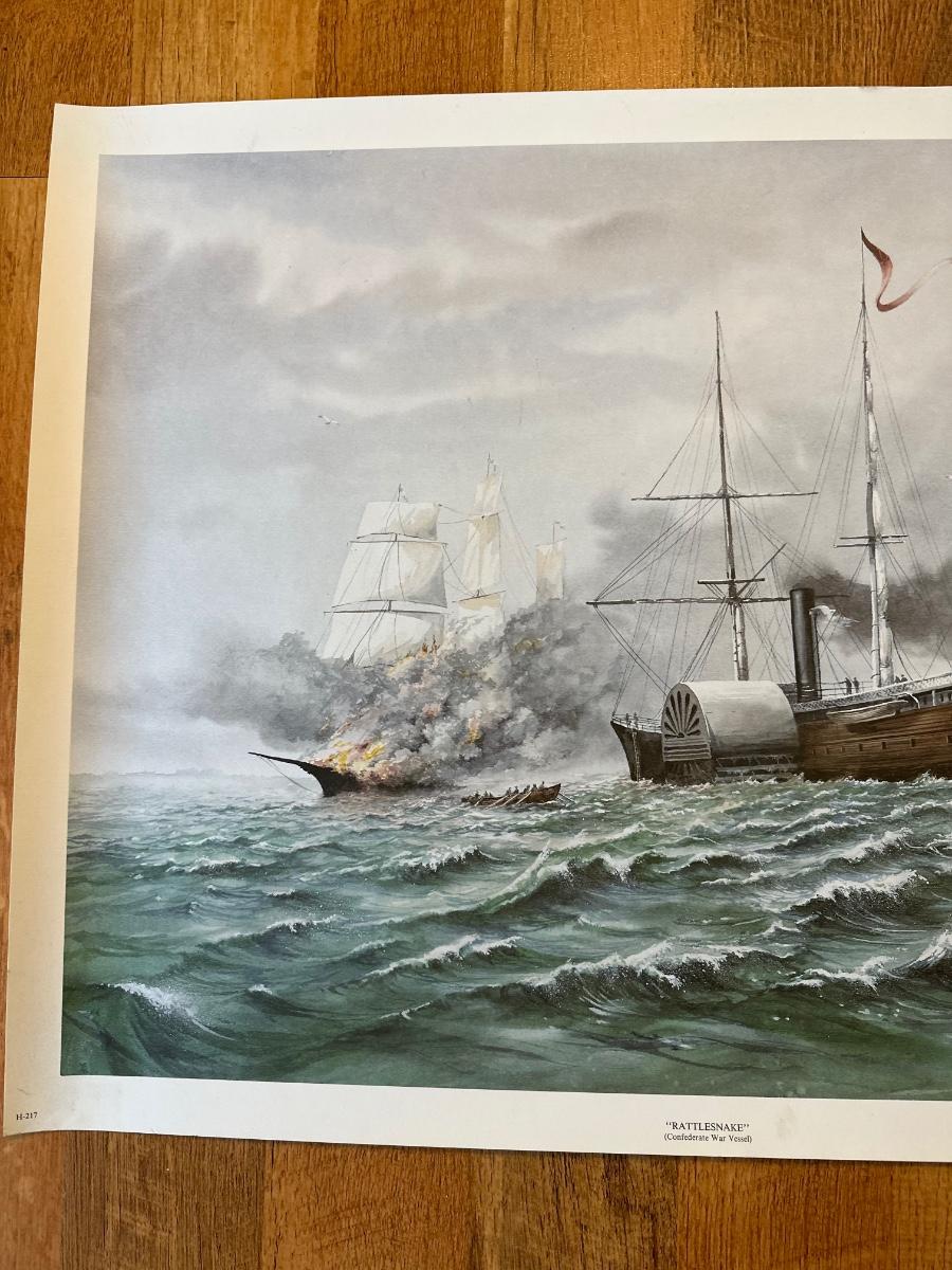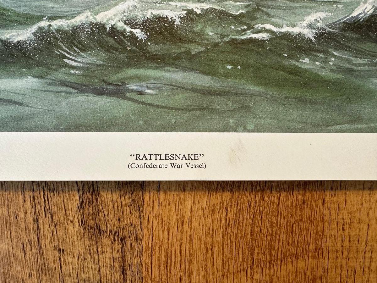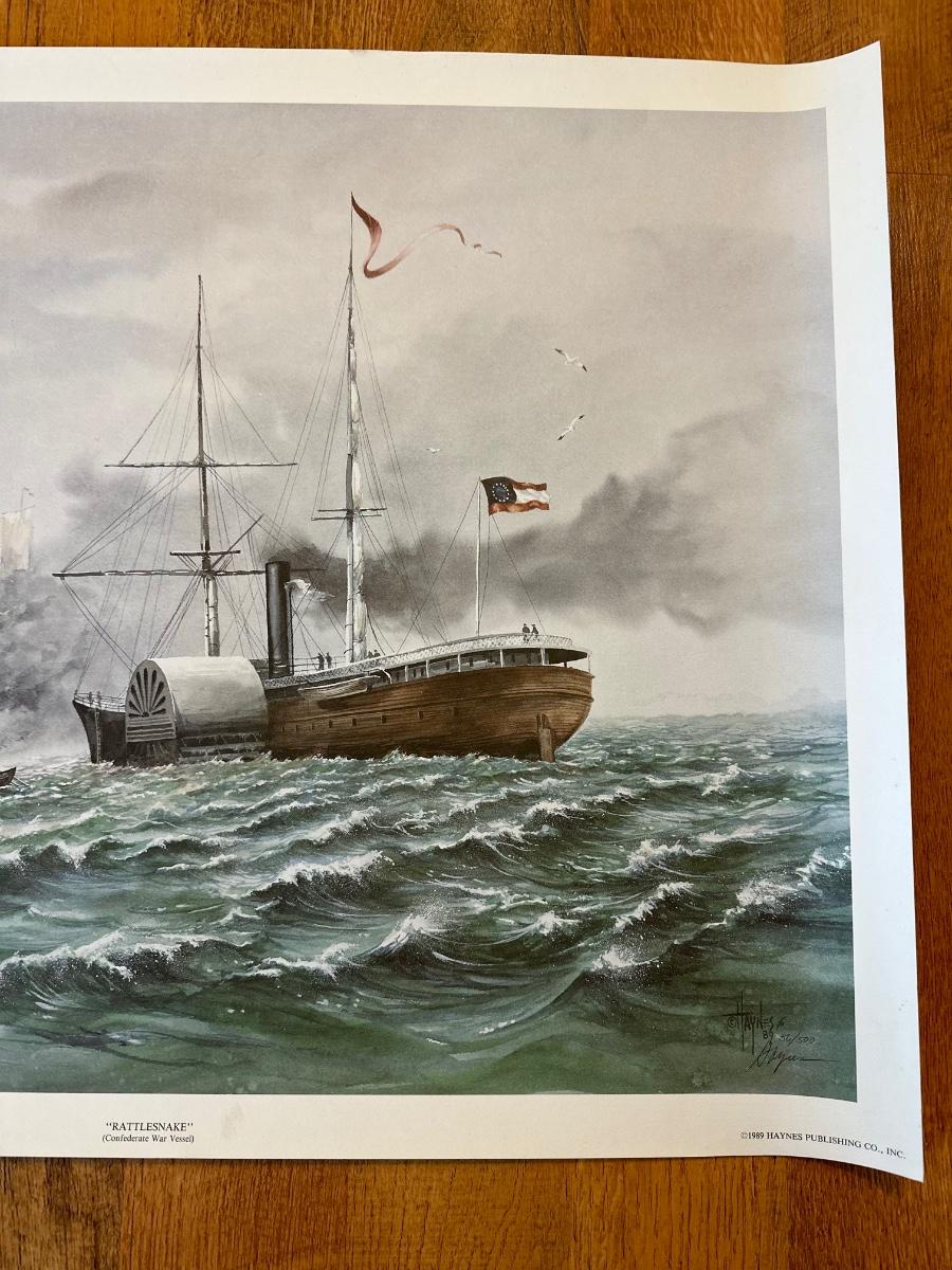Signed and numbered 56/500 print by Jerry Haynes - Rattlesnake (Confederate War Vessel) measures 20” x 26”