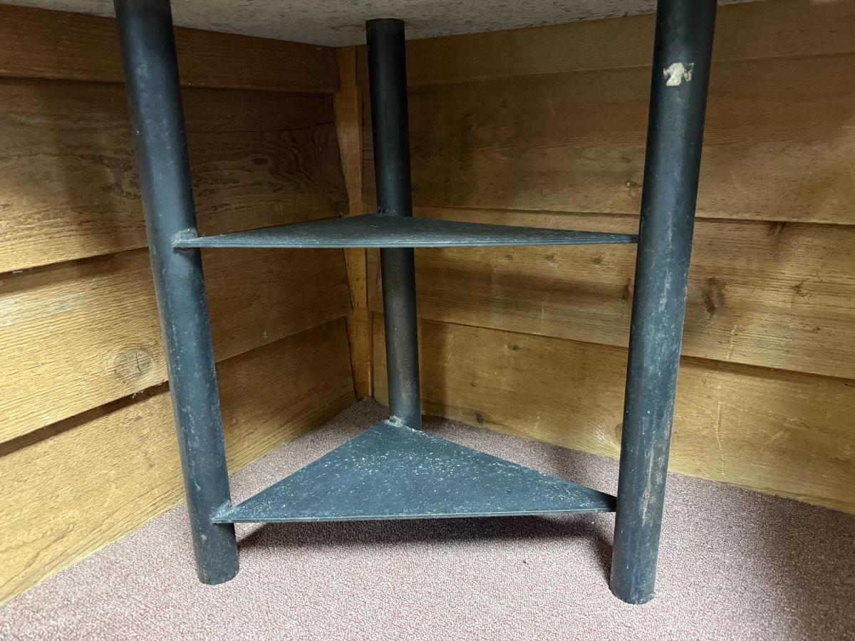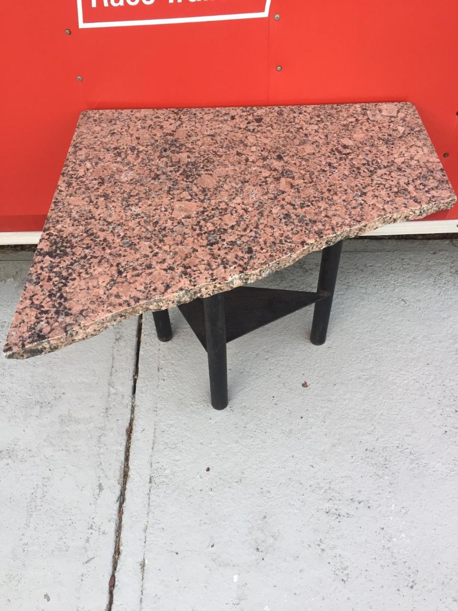 Granite on hand crafted corner triangular steel stand w/2 shelves