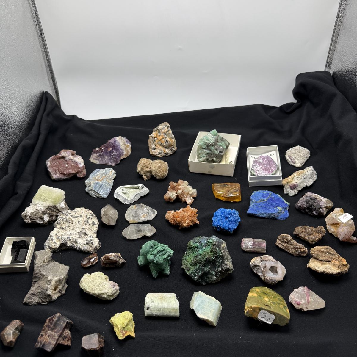 This lot contains a fabulous collection of raw precious and semi-precious minerals including what appears to be emerald and ruby. Also included are what appears to be amethyst, kyanite, quartz, amber, aragonite, malachite, garnets and more. The piece that appears to be emerald measures 3.5” x 2” x 2.5”H. The large circular piece of what appears to be ruby measures 1.75” x 2” x 1”H. Local pick up only. Please note that any price tag seen on an item was not put there by Sterling Transitions and does not reflect the current value of the item. All sales are final. No returns or refunds. Please bid accordingly.
