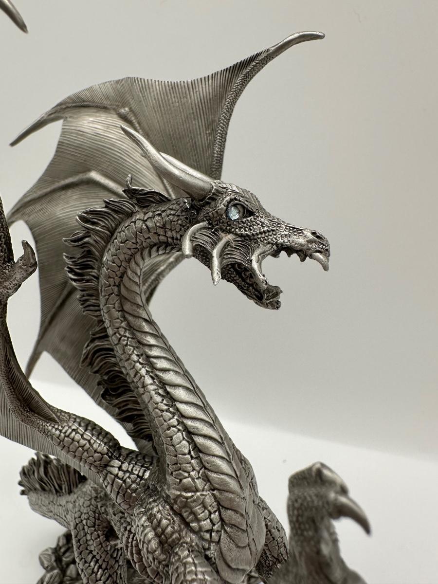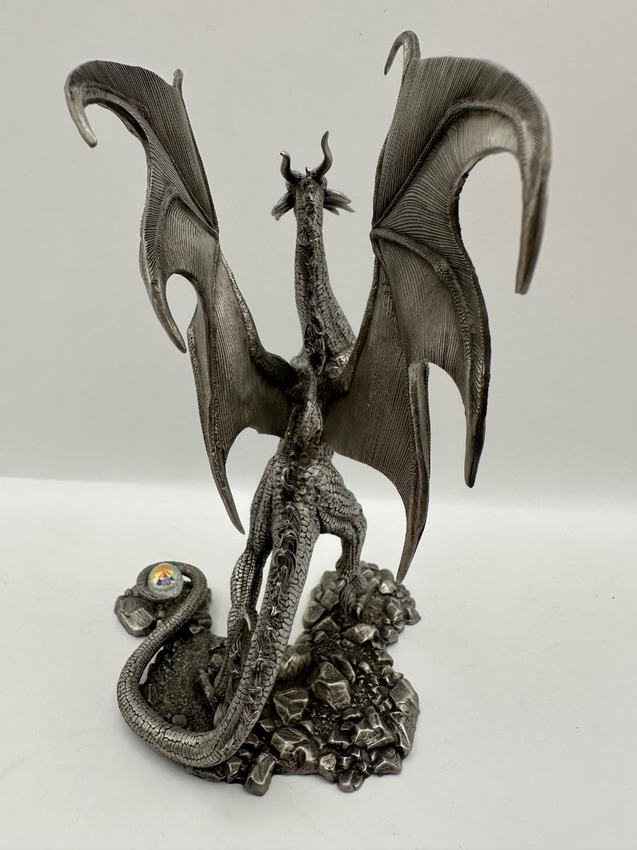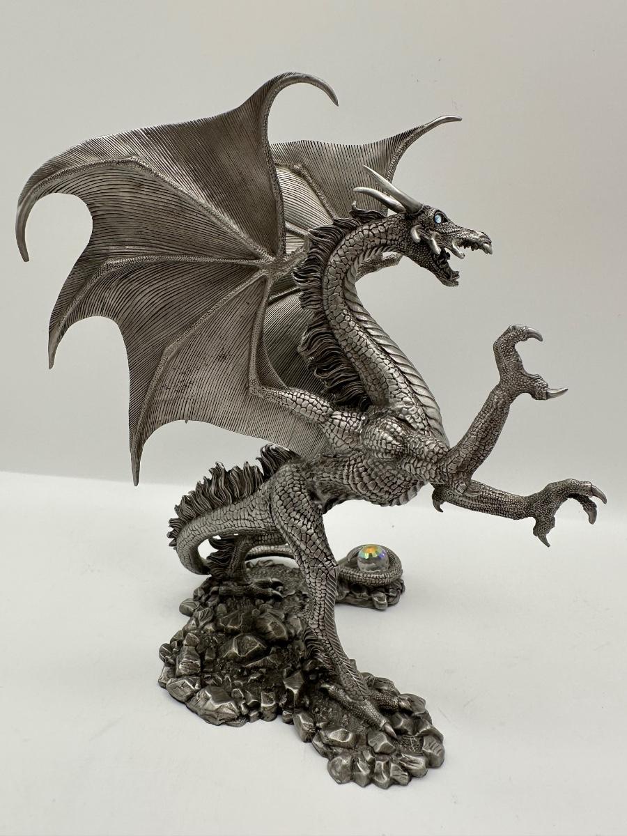 Rawcliffe pewter fantasy dragon sculpture, dated 1992 and signed by artist Martin (Gallo Studios collaboration).