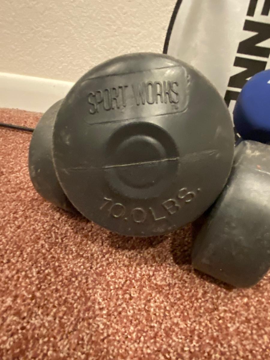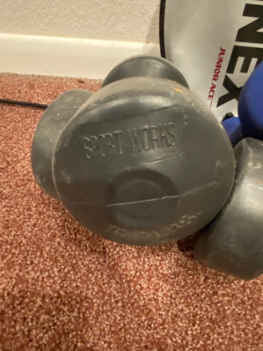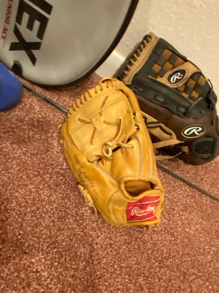 RAWLINGS BALL MITTS, JUNIOR RAQUET, & DUMB BELLS