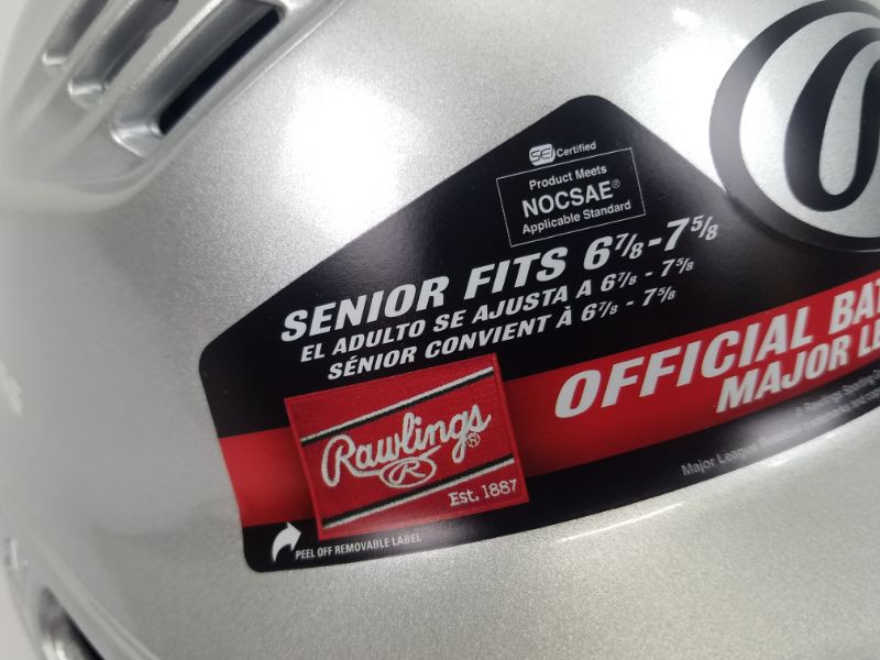 Rawlings Batting Helmet, Silver Gray, Senior Fits 6 7/8 - 7 5/8 - New