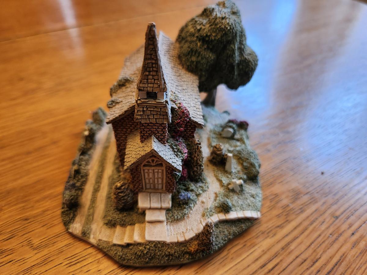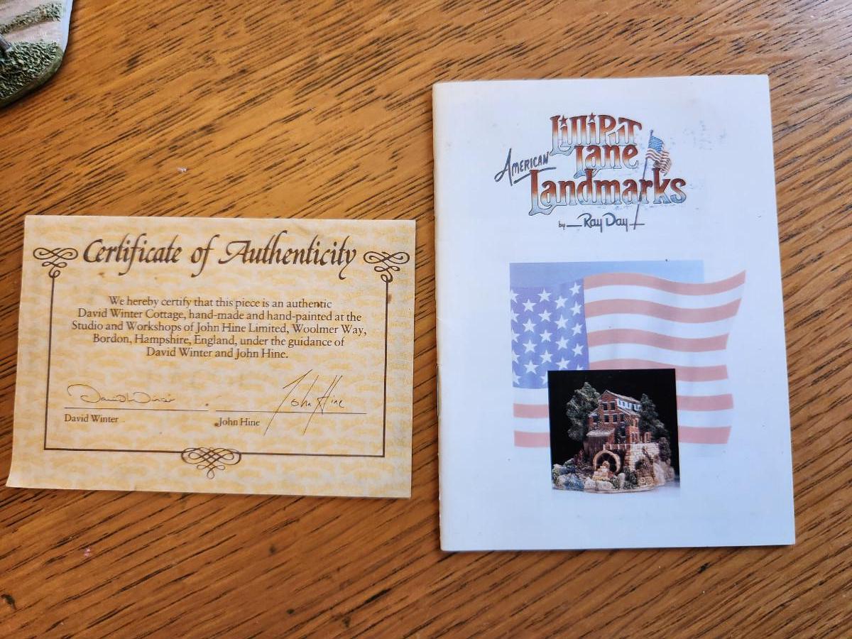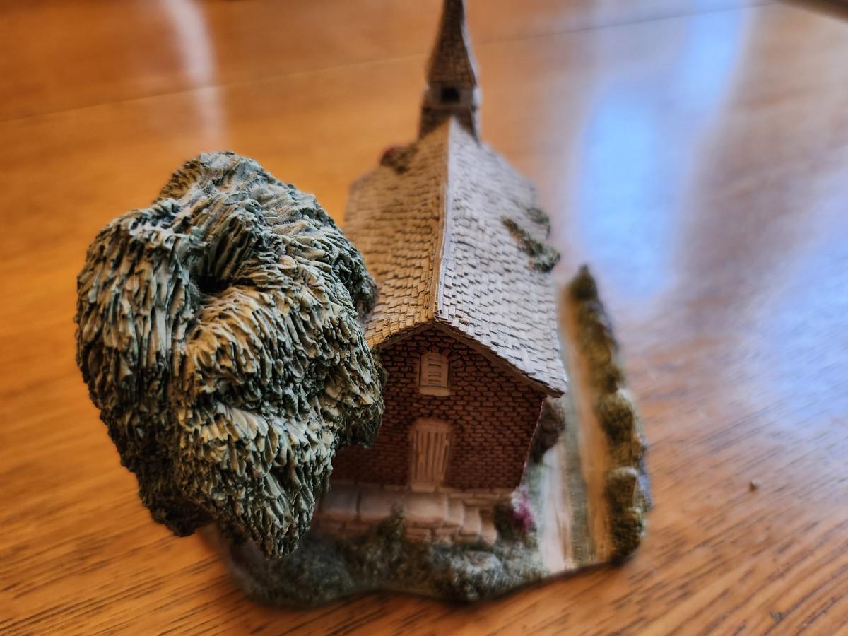 This auction lot is for Ray Day's American Landmark Collection - Country Church. A sculpted miniature make in England by the noted John Hine Company. This items comes with a Certificate of Authenticity and a booklet that explains the works of this artist with this series. This pieces is personally signed and dedicated on the verso. with a date of 1991. This item is not perfect, please examine the photos as there are several very tiny chipped places which in reality do not affect the overall wonder of this item.