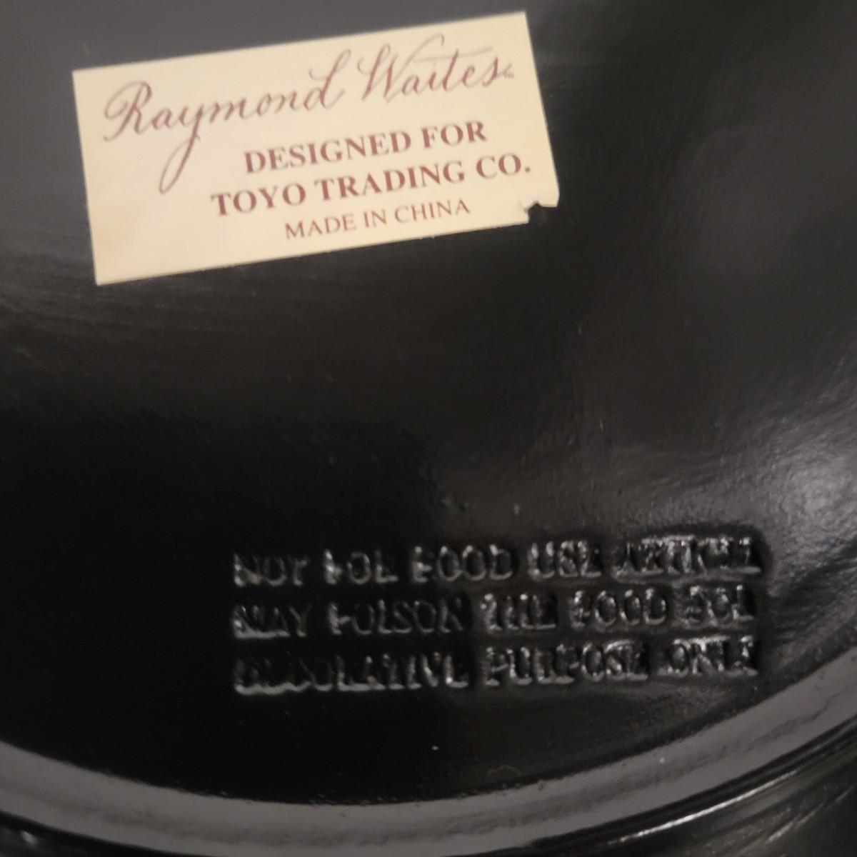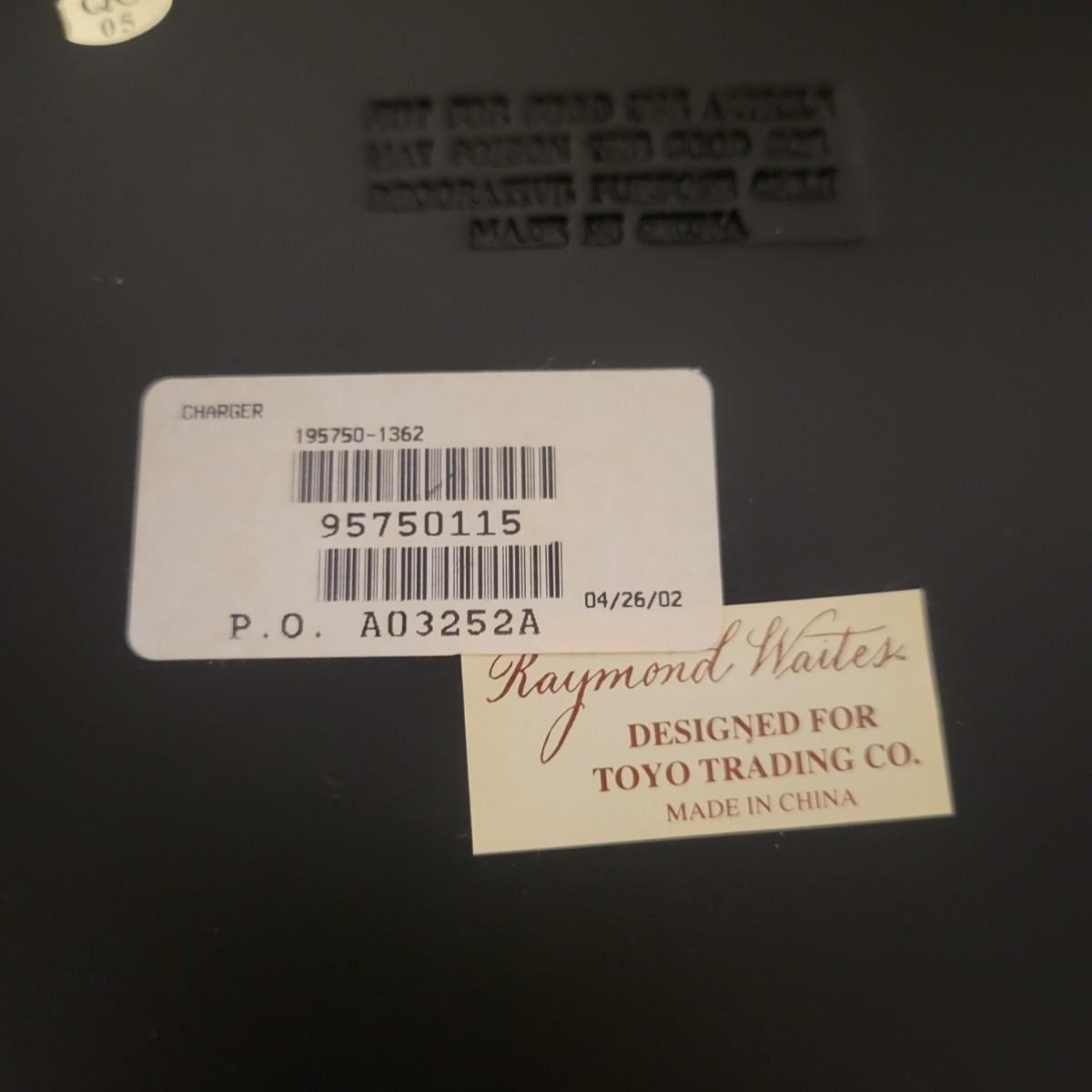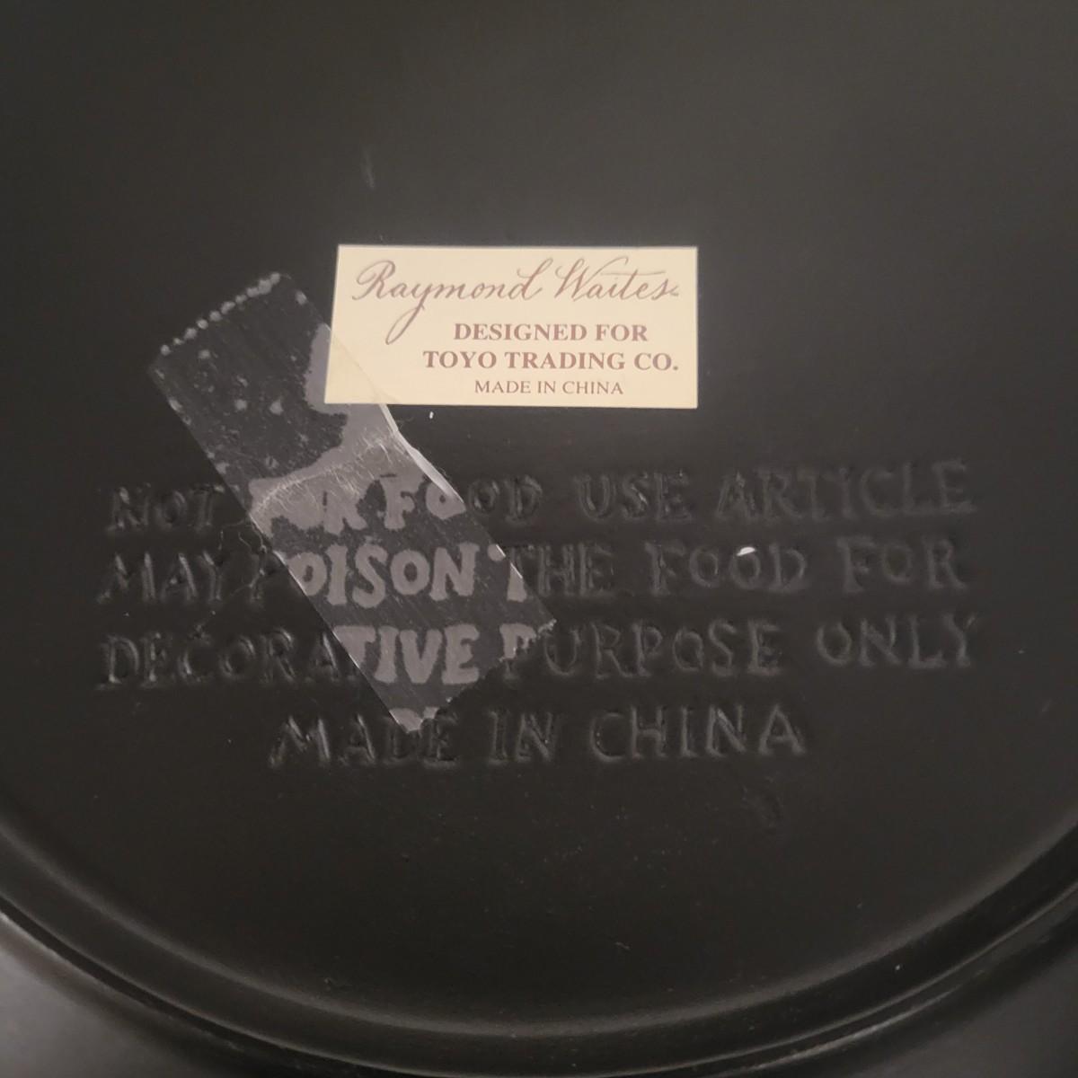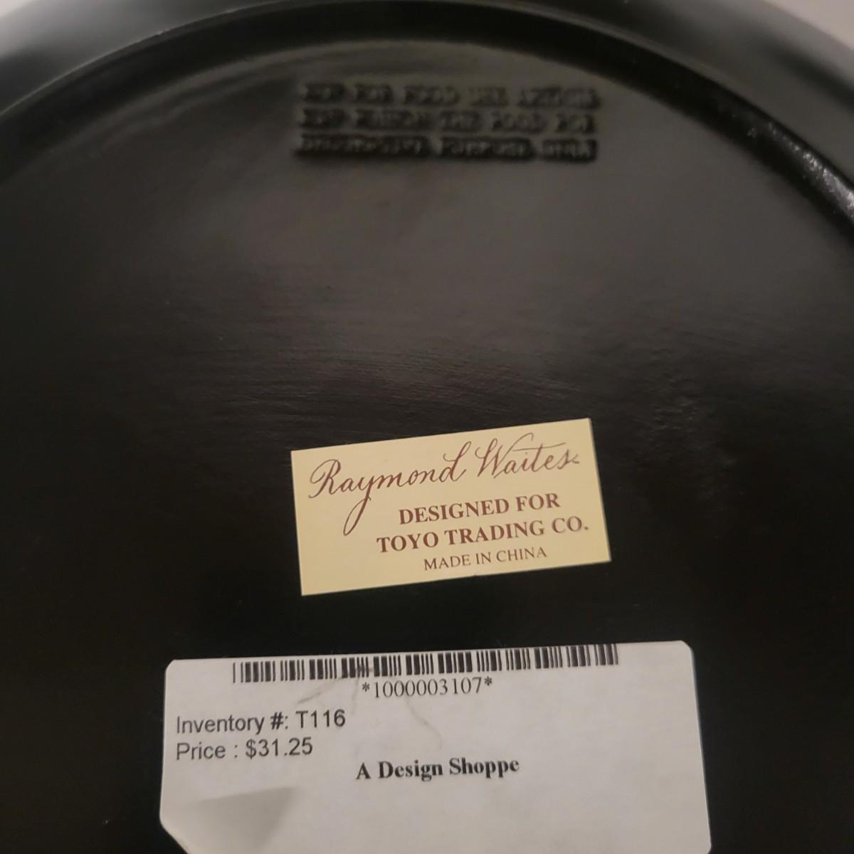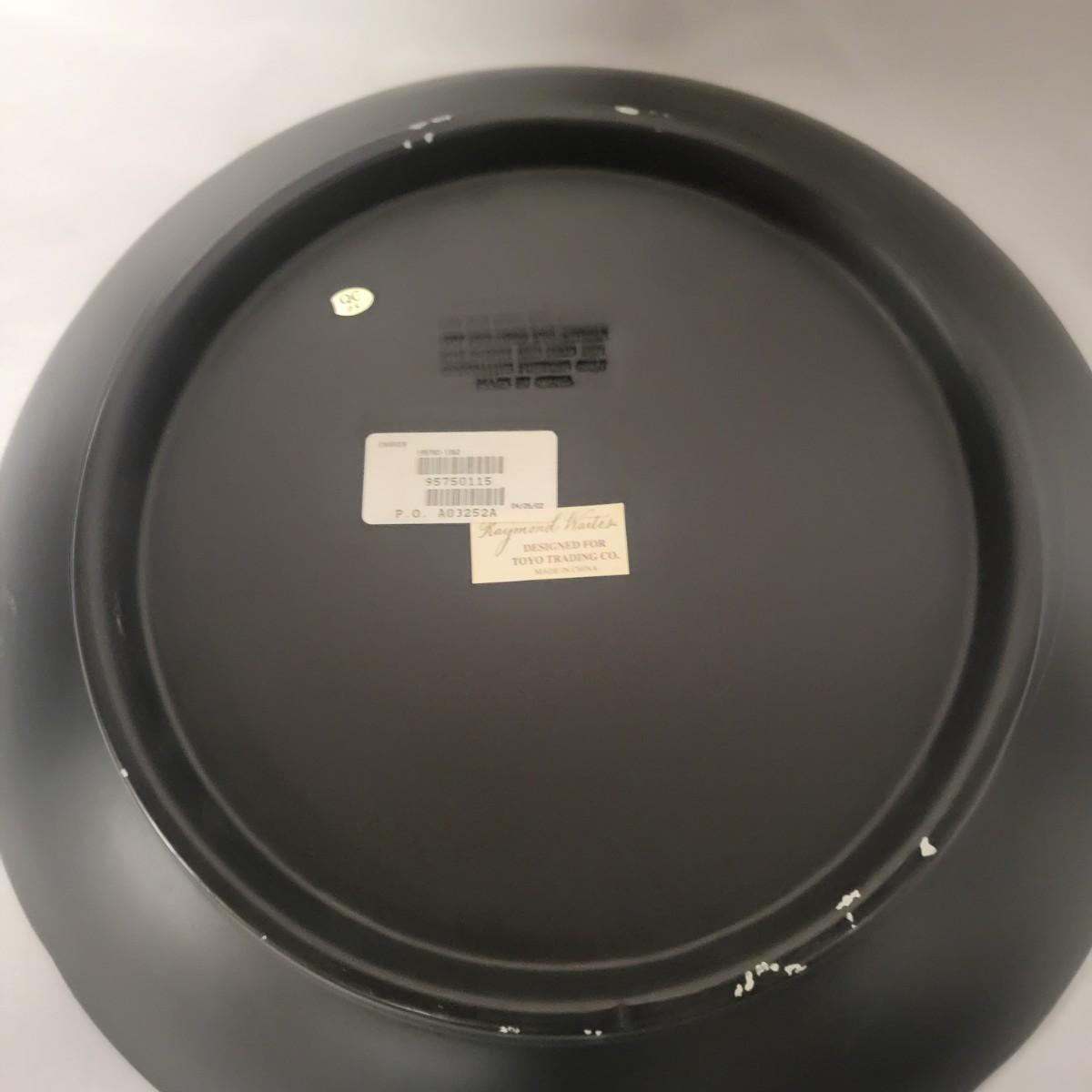 An assortment of Raymond Waites decorative plates that depict grapes, parrots and fruit. All plates have a matte finish and the largest plate measures approximately 14.5"D x 2 5"H and includes an iron plate stand. There are some minor chips on the side of the largest plate. Shipping available
