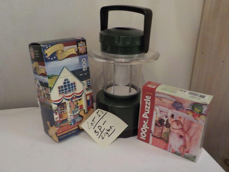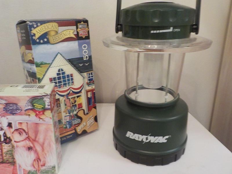 Ray-o-Vac Lantern and 2 puzzel boxes camping kit.