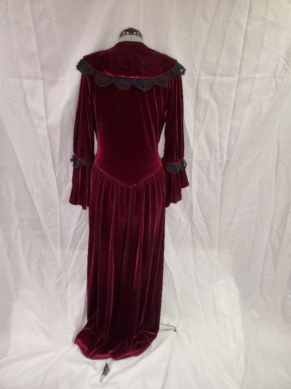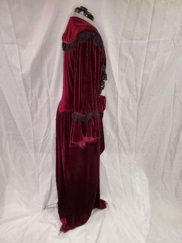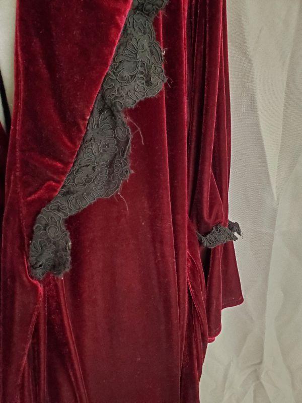 Feel glamorous even at bedtime!! This robe is lined with black lace and is simply elegant. There is some fraying around the lace as it had been worn, overall good condition!