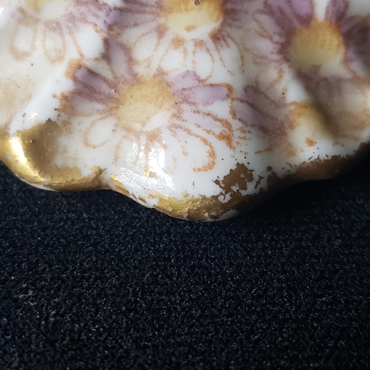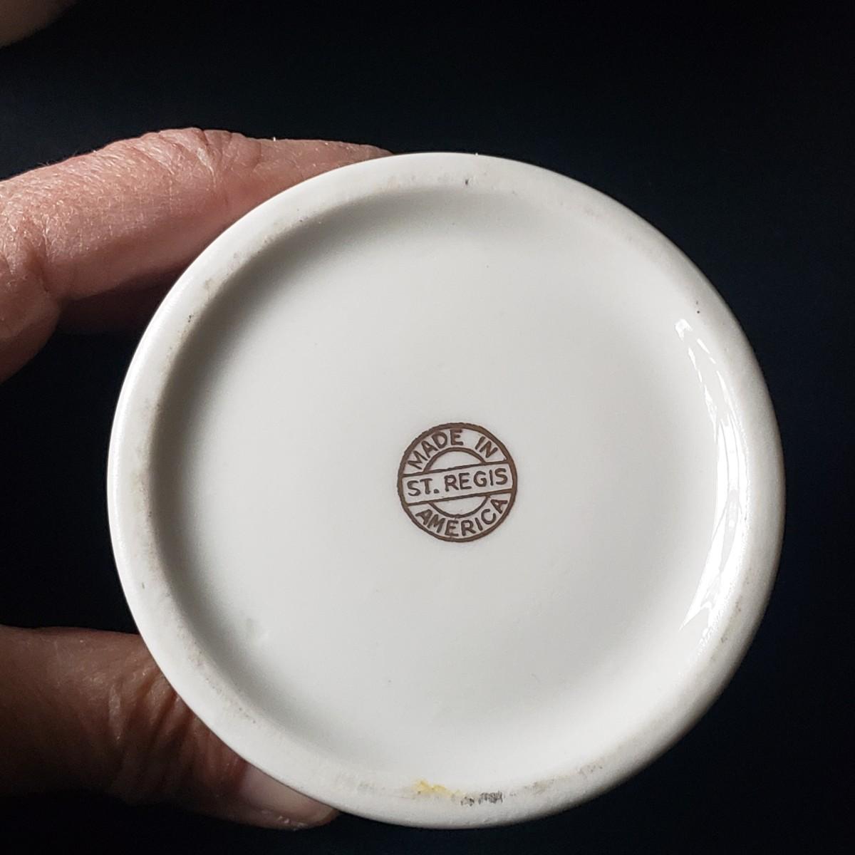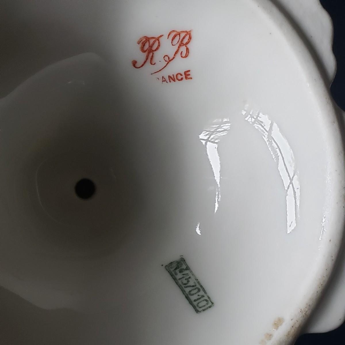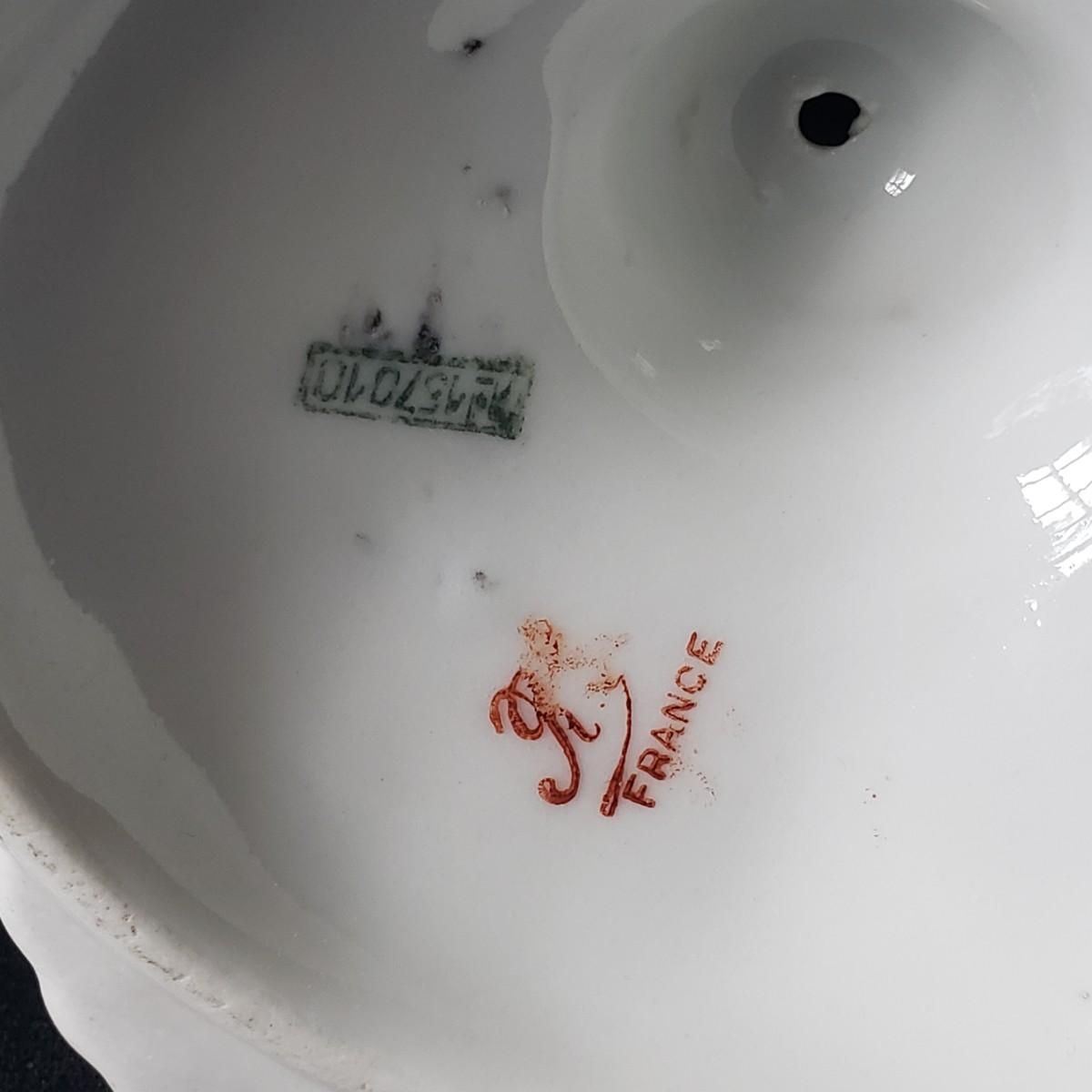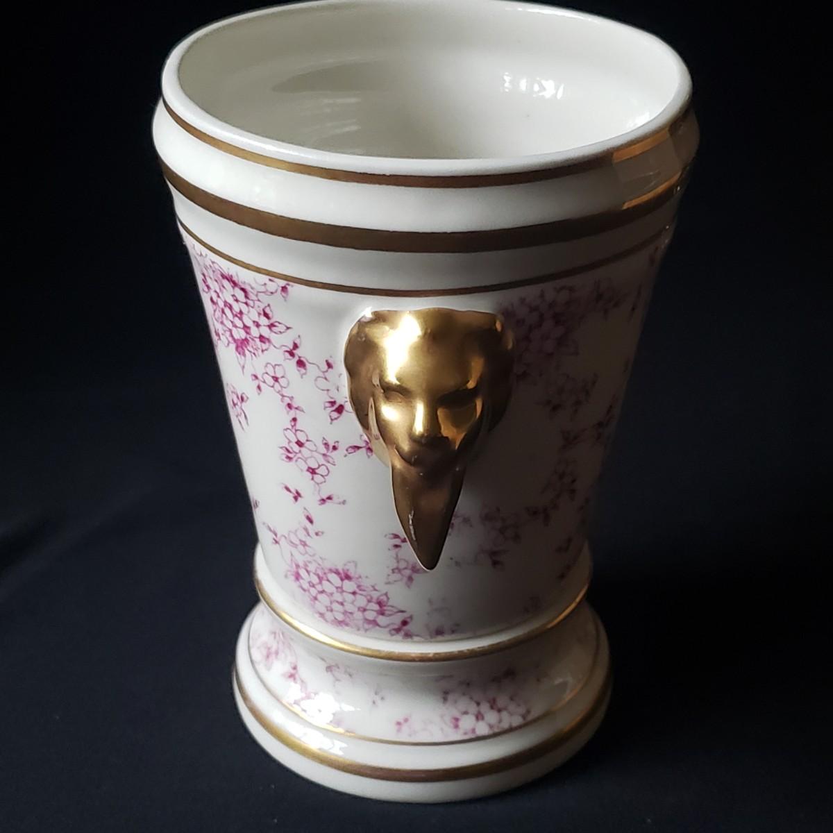 This gorgeous lot features a pair of R&B France porcelain floral candlesticks. The floral print is soft and feminine. There is a small chip in one and gold paint fading. The St. Regis flowerpot has a beautiful floral print accompanied with gold features. The pot and stand measure 3" x 6"H. The bottom of the pot needs a washing. The vintage cranberry colored footed apothecary jar measures 5"D x 11.5"H, has clear cut pattern on lid.