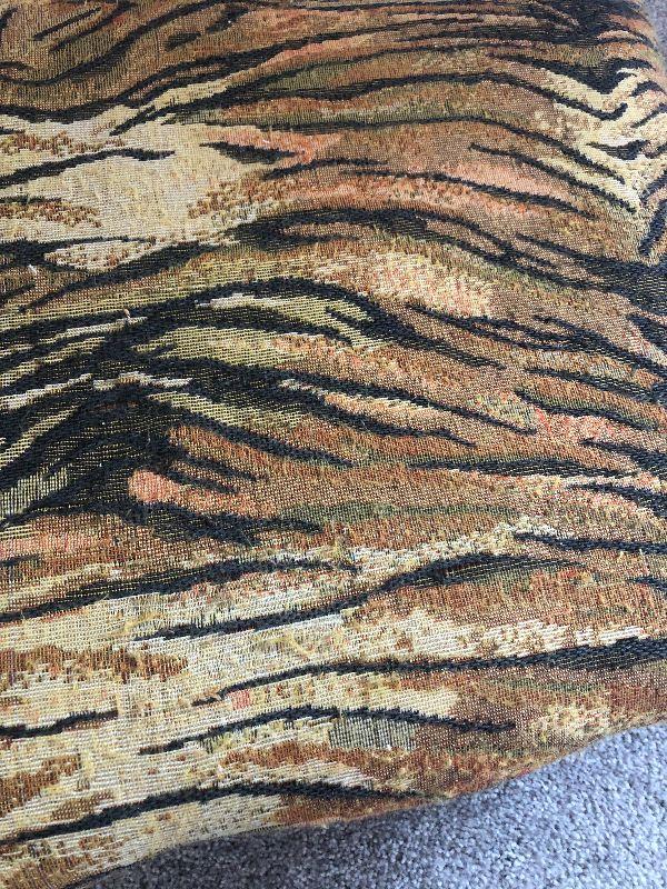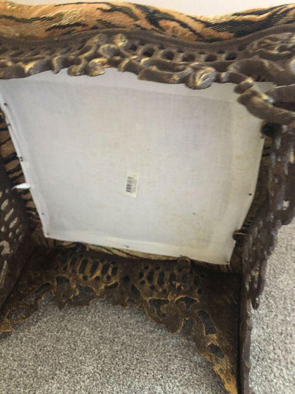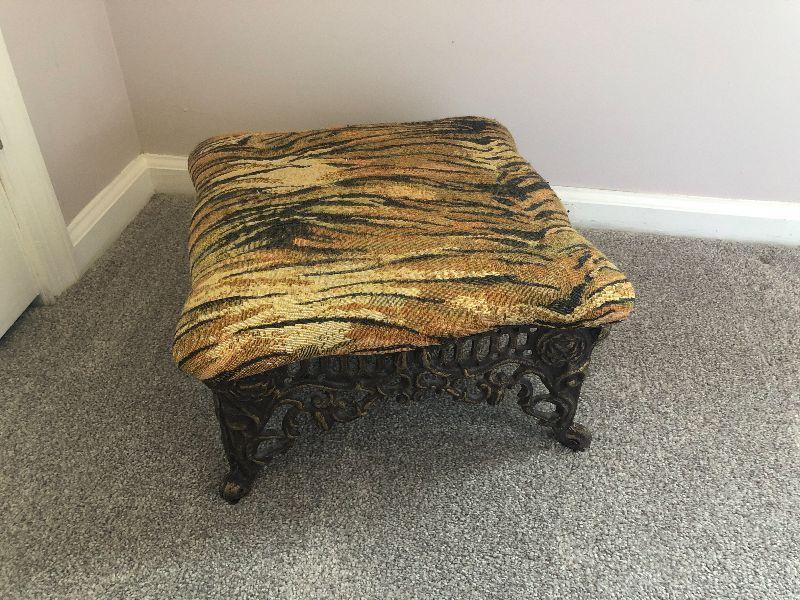 Perfect for those high beds! Cute tiger fur print with cast iron base. Nice and sturdy.Please see all pictures for contents in this listing, the condition of items in the listing, and the size if measurements were taken. Thank you for looking and have fun bidding.