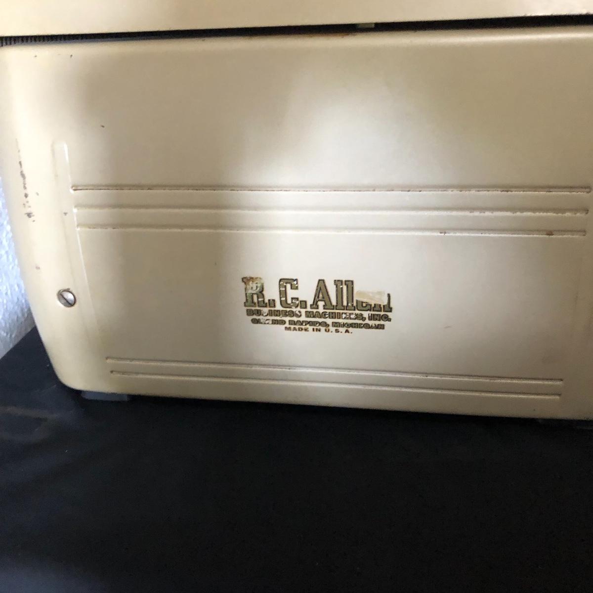 Lot includes R.C. Allen Visomatic antique typewriter in excellent shape. All keys worked when tested, it appears to need a new ribbon. Typewriter measures 13” x 23” x 10”.