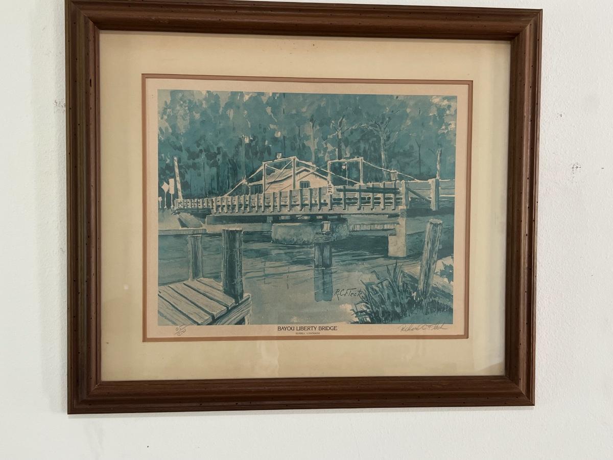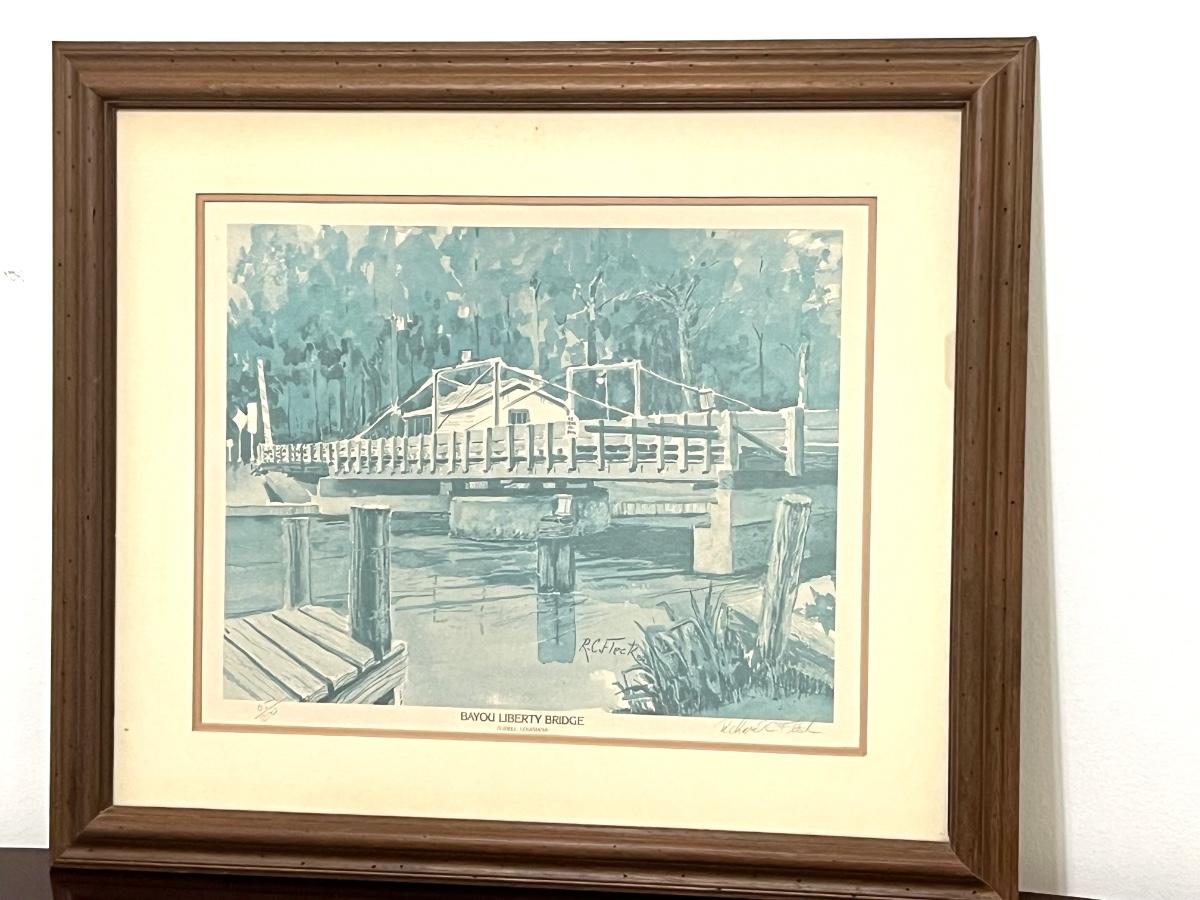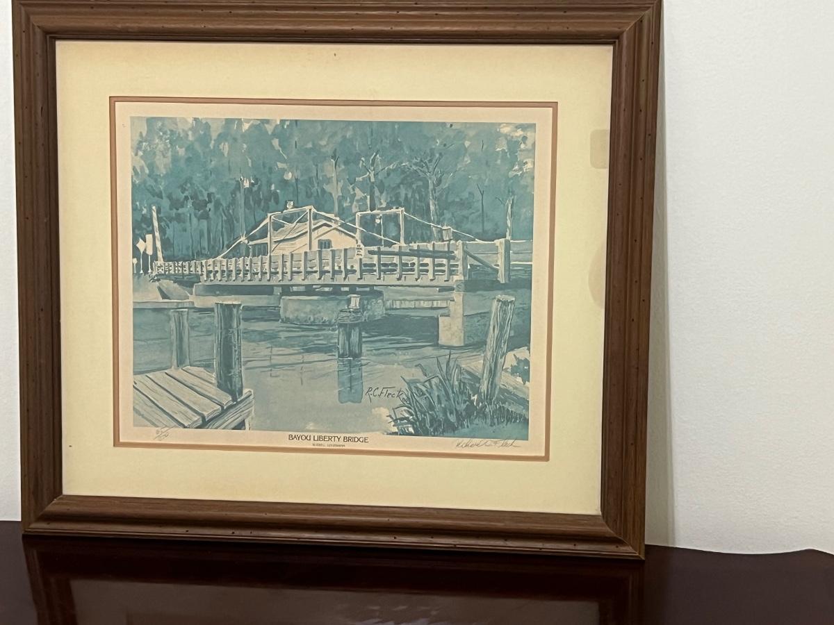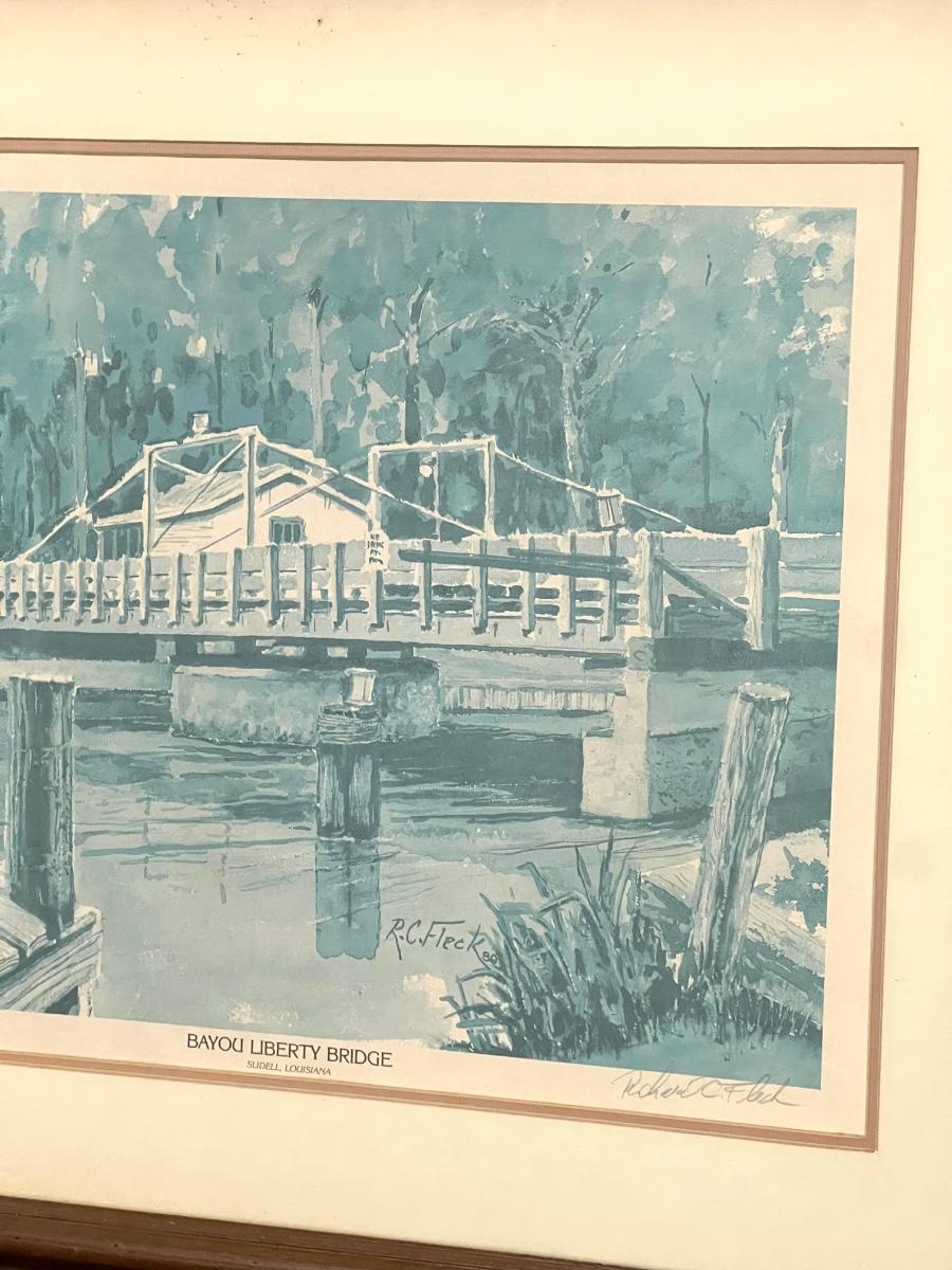 LOCAL ART! Signed & Numbered Bayou Liberty Bridge by R C Fleck. Measures 25 X 28. Signed 65/350.