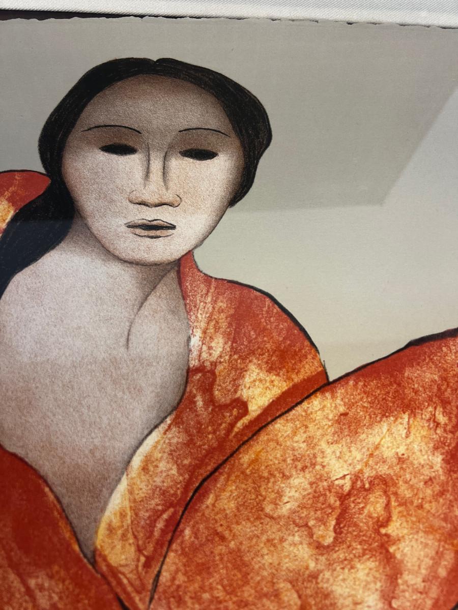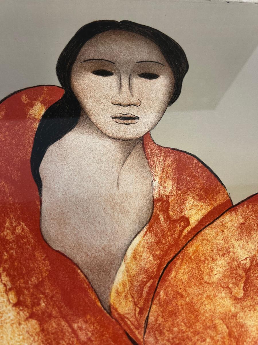 Beautiful numbered Gorman lithograph print, measures 22" by 30" plus the frame. Embossed paper, not sure of the title. A boxing fee of $200 will apply if shipping is needed.