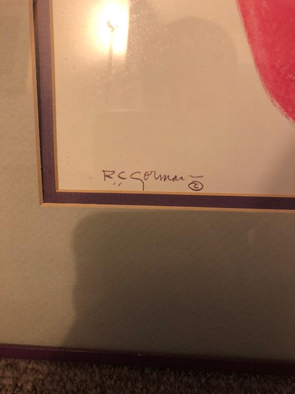 RC Gorman dual signed Artist Proof from 1982, “seated woman” measures 30” H x 32”W, excellent condition. Shipped without frame