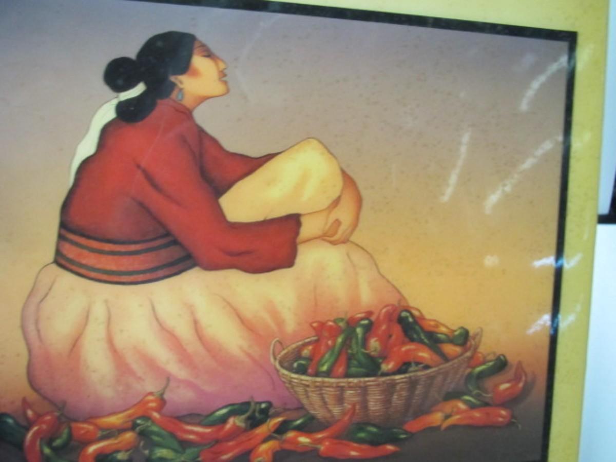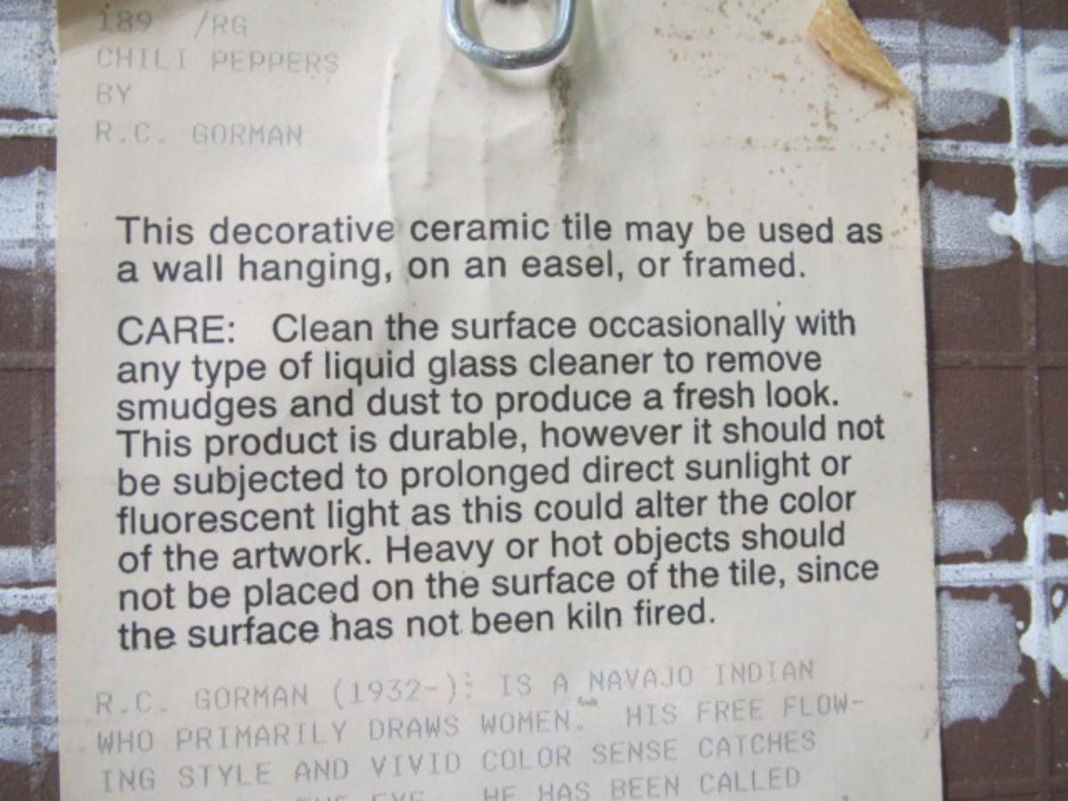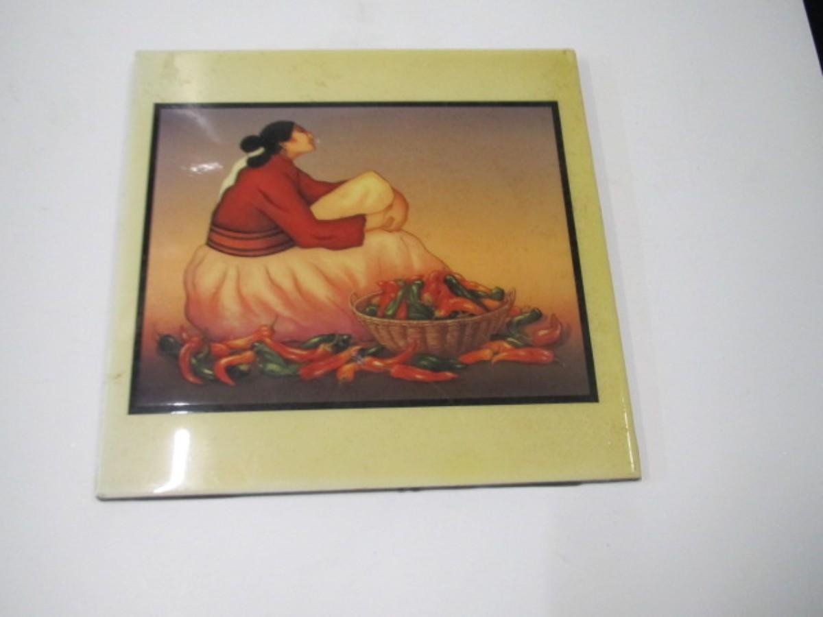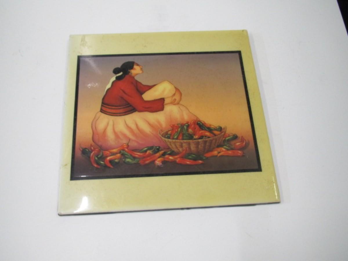 R.C. Gorman Woman With Chili Peppers Approx 12" x 12" Ceramic Tile