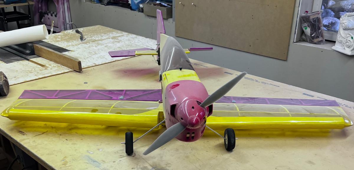 Has a 52" Wing Span and an electric Motor. This is large !! This is downstairs and you will need to carry it up from the basement this time. Thank you!