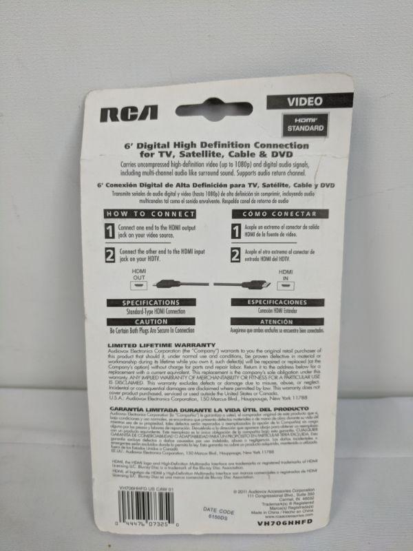 RCA HDMI Standard 6' Digital High Def Connection - New