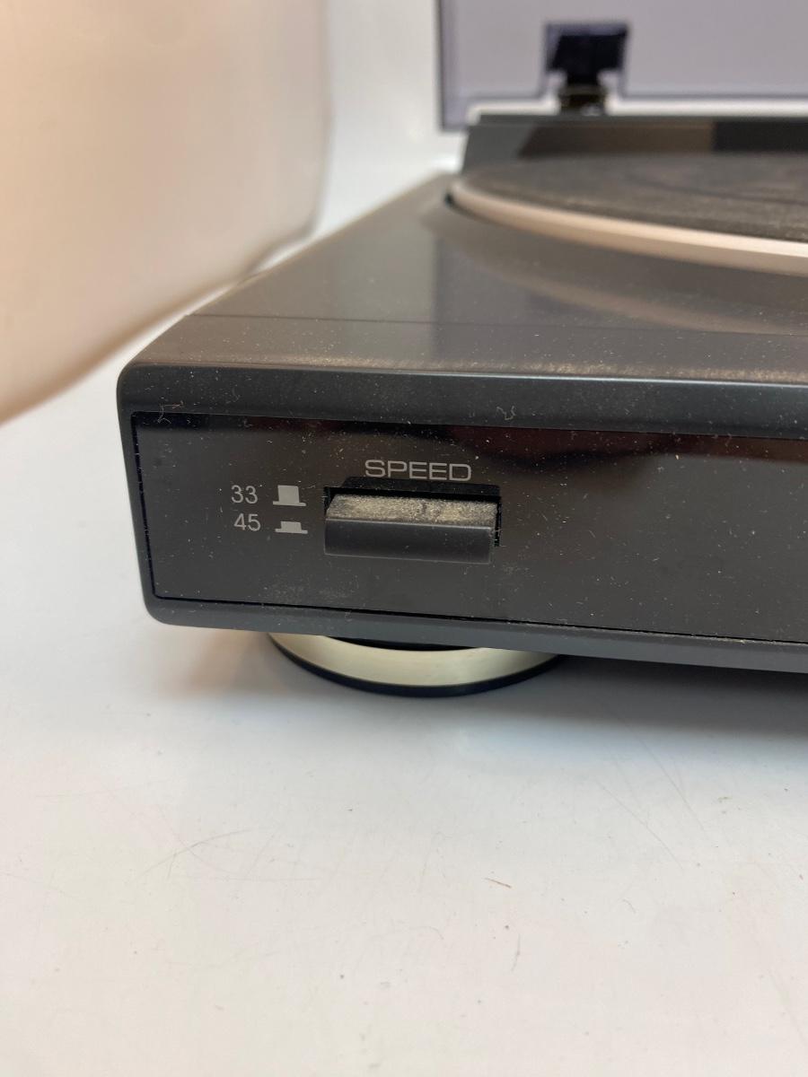 There are no signs of significant damage to the turntable and is in overall good collectible or playable condition. Has been plugged in and tested, the turntable rotates and functions normally. Has not been tested with speakers.