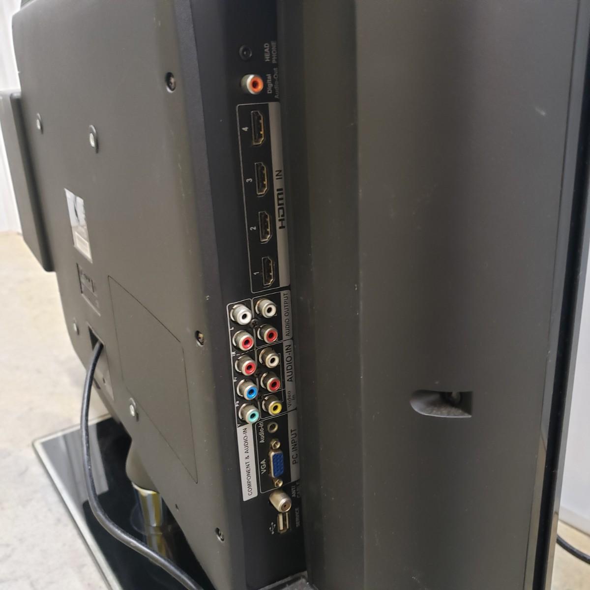 This is a RCA model # 32LA30RQD 32 inch LCD HDTV/DVD Combo TV. The TV does come with a remote. The TV turned when plugged in. We did not get to check the DVD to see if it worked. The base is made of glass with a black coloring.