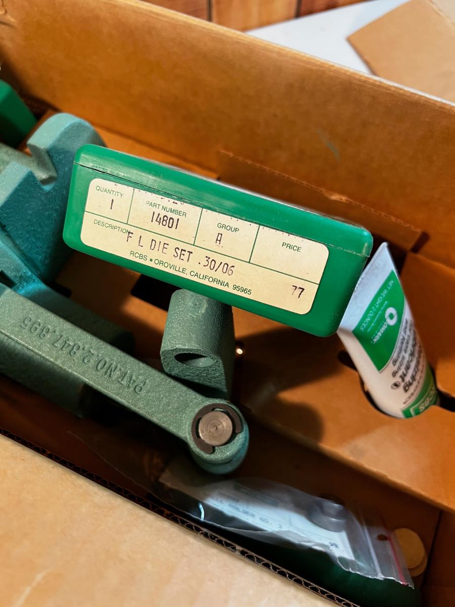 In Original Box. Appears to be un-used. Very Good Condition. Has a 30.06 Die Set included.
