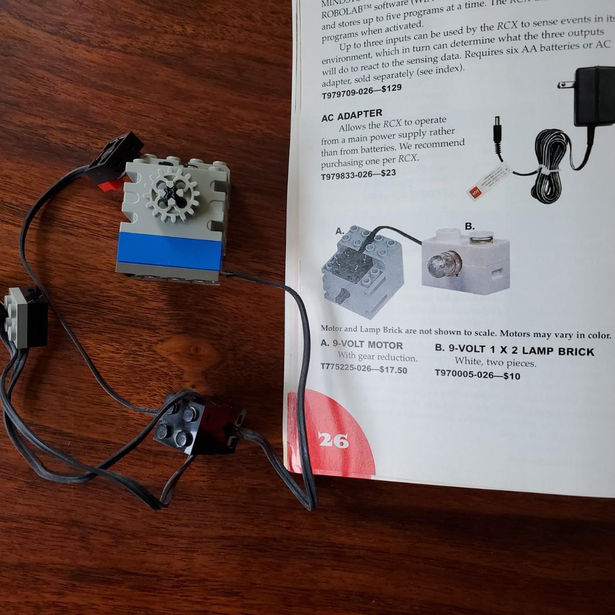 All the parts are in good condition, one owner. Includes the programmable brick, infrared transmitter with cable, 2-volt motors, and the instruction manual.