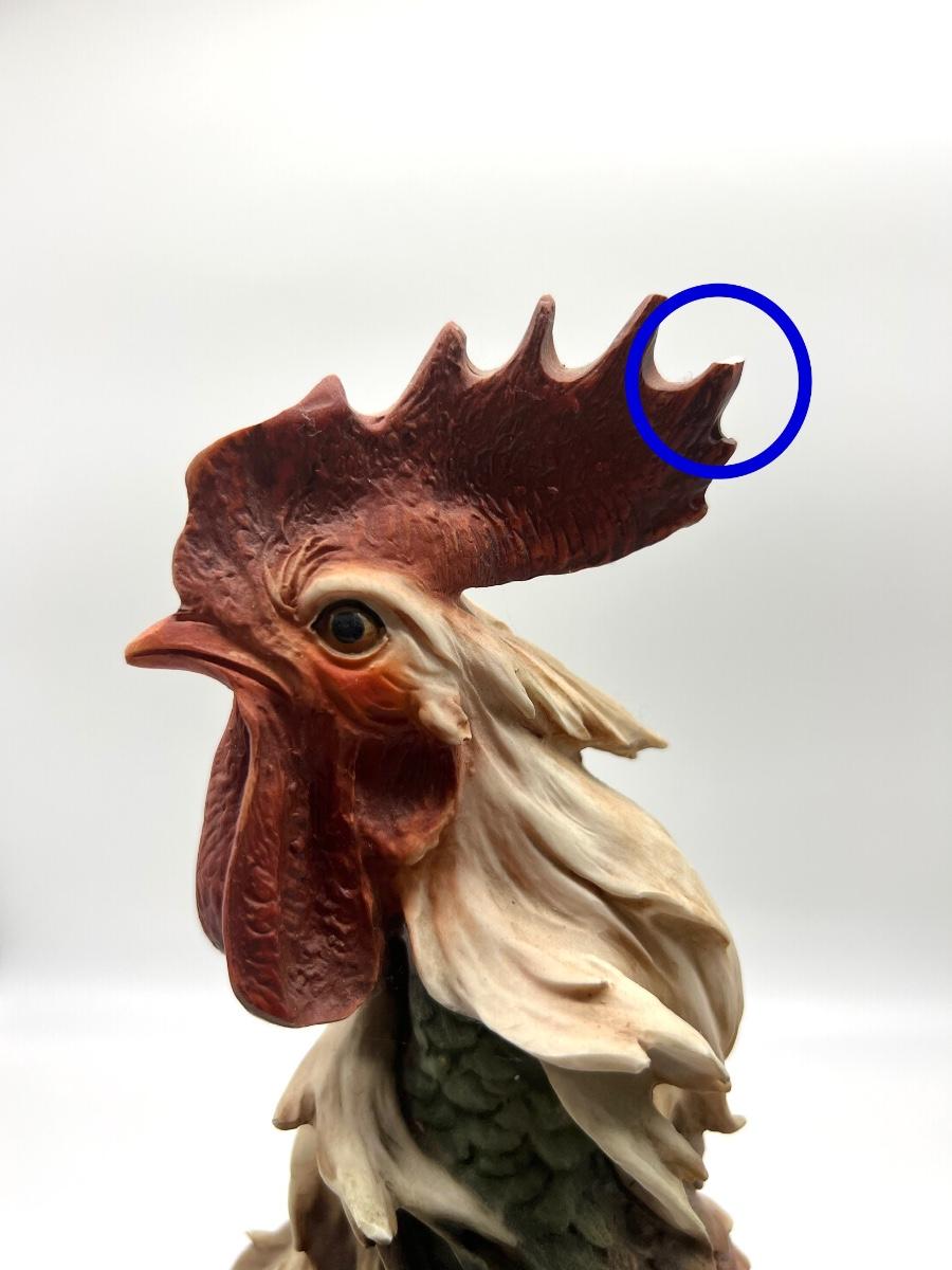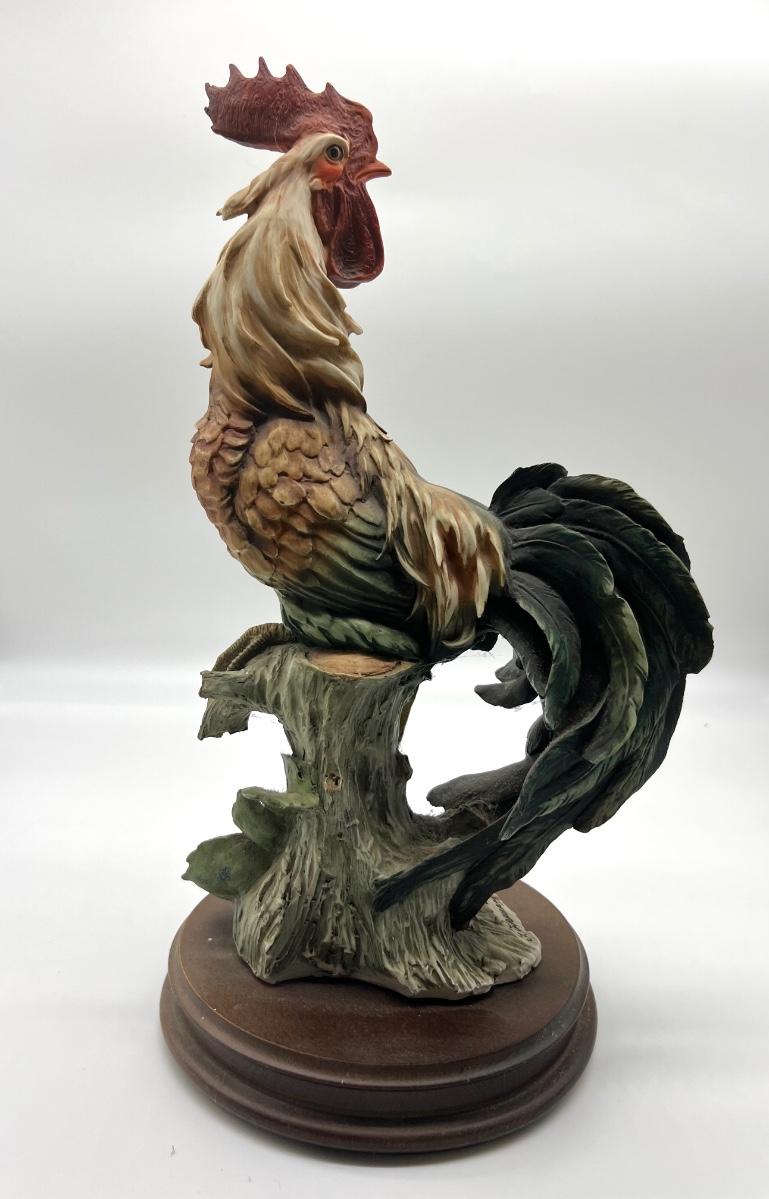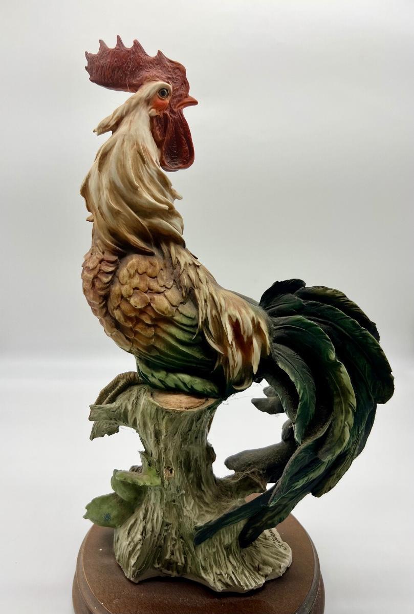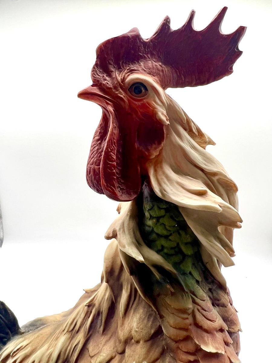 Giuseppe Armani Rooster Figurine Capodimonte Neapolitan Marking. Measures 17 inches tall and base measures 8 inches wide. Some minor chips on the combs and on a layered feather, see pictures.