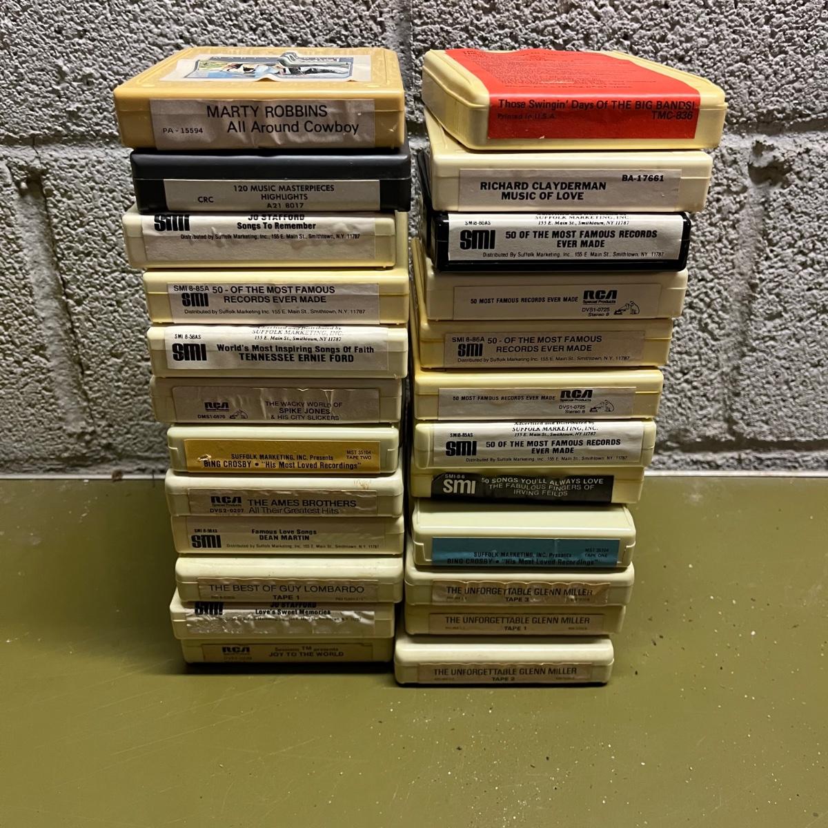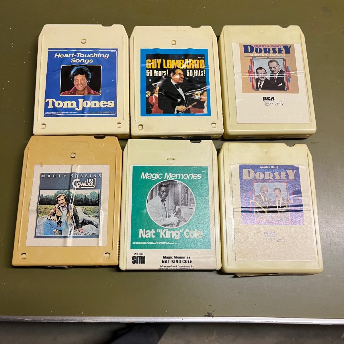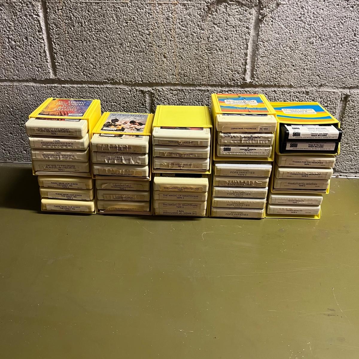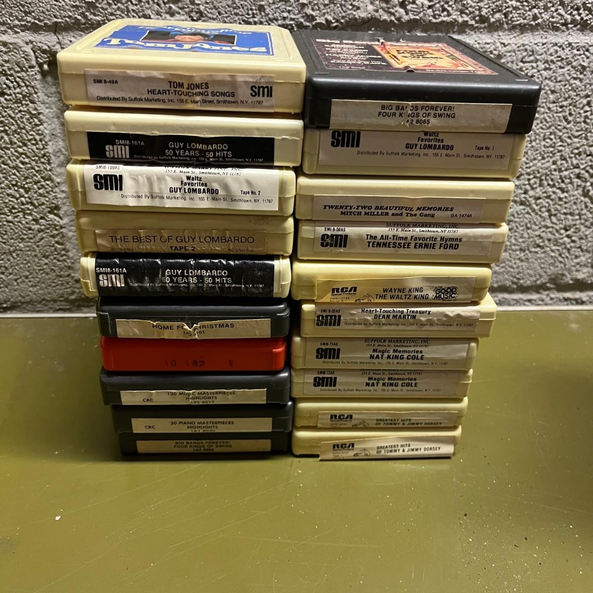 Lot contains a selection of Readers Digest eight track tape collections including Christmas Favorites, Guitar on Velvet, How Great Thou Are, Henry Mancini and more. Also includes tapes by Tennessee Ernie Ford, Tom Jones, Guy Lombardo, Nat King Cole and more.