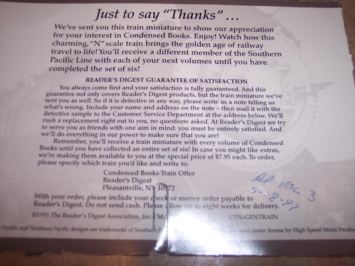 Reader's Digest Train Set 8 cars in Cigar box