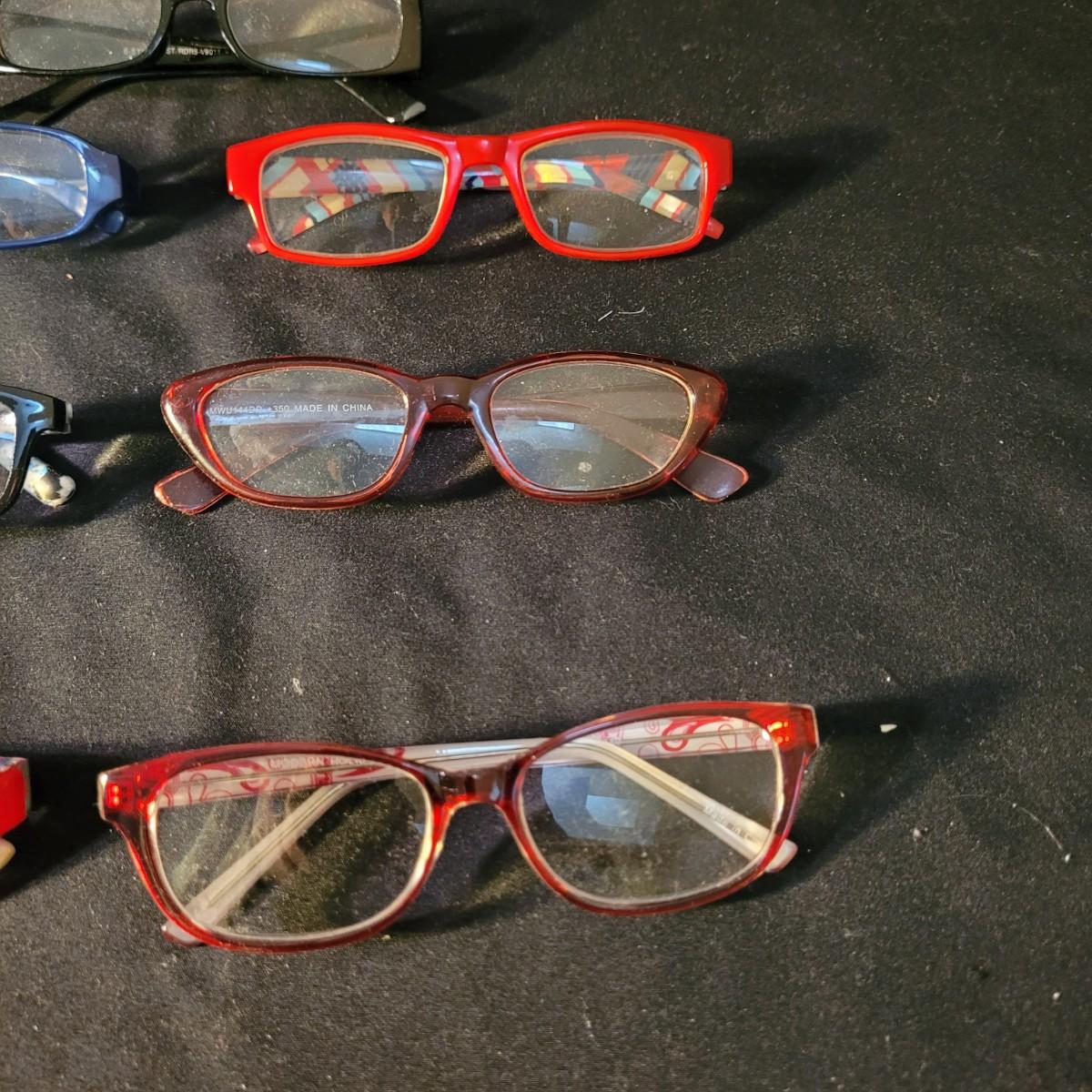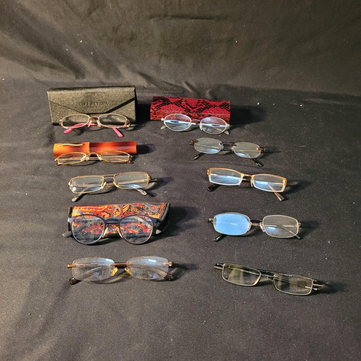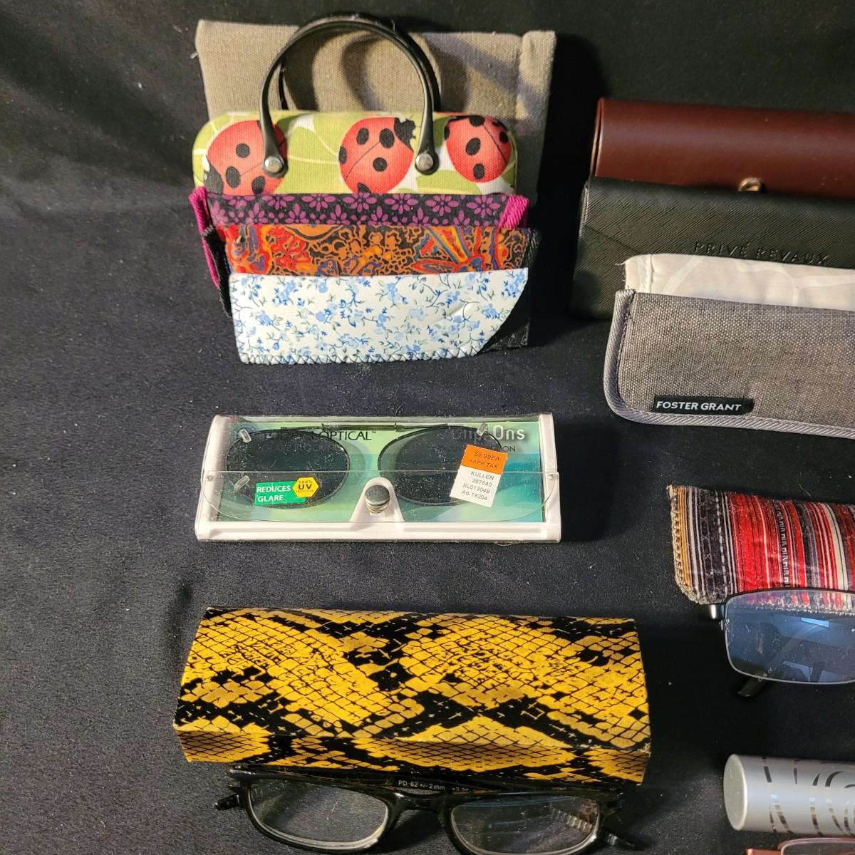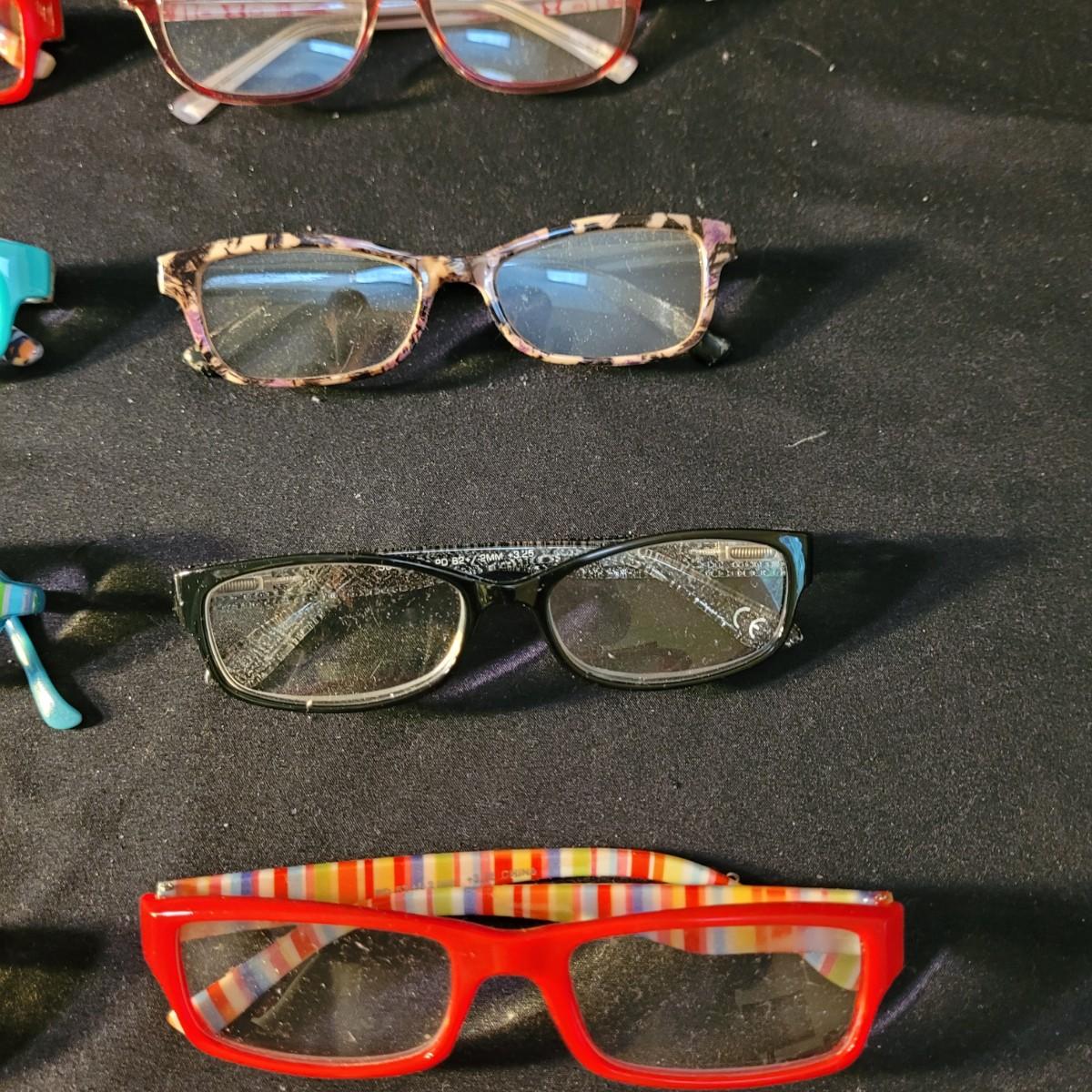 A huge variety of wire and plastic frame reading glasses in many styles. Most glasses are 3.25-3.50 with some 2.50 strength. Accompanied by a wide variety of cases as well. Shipping available.