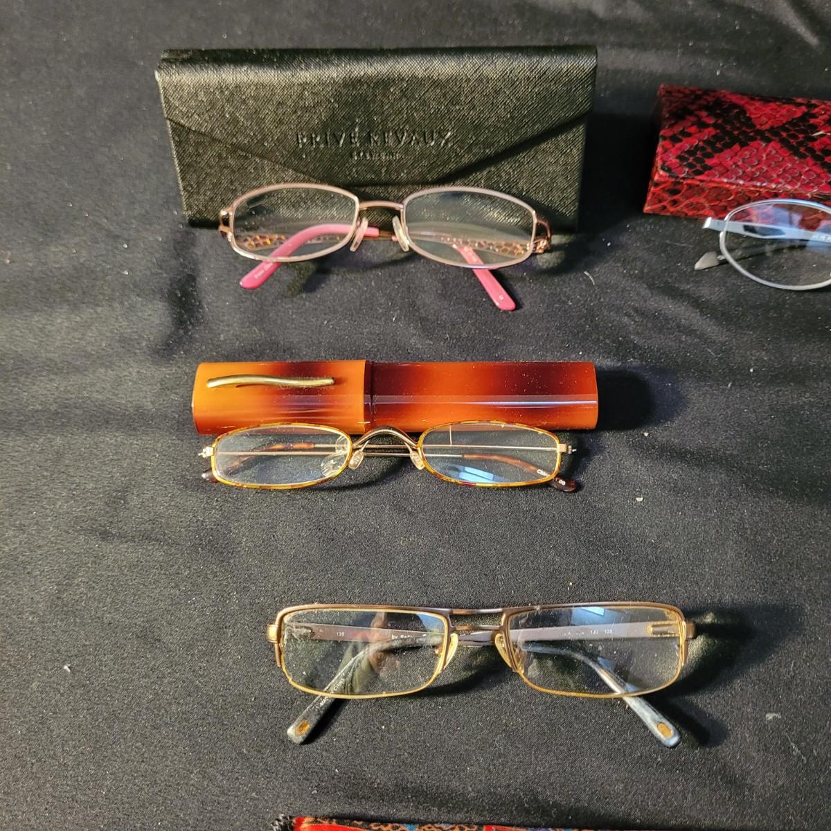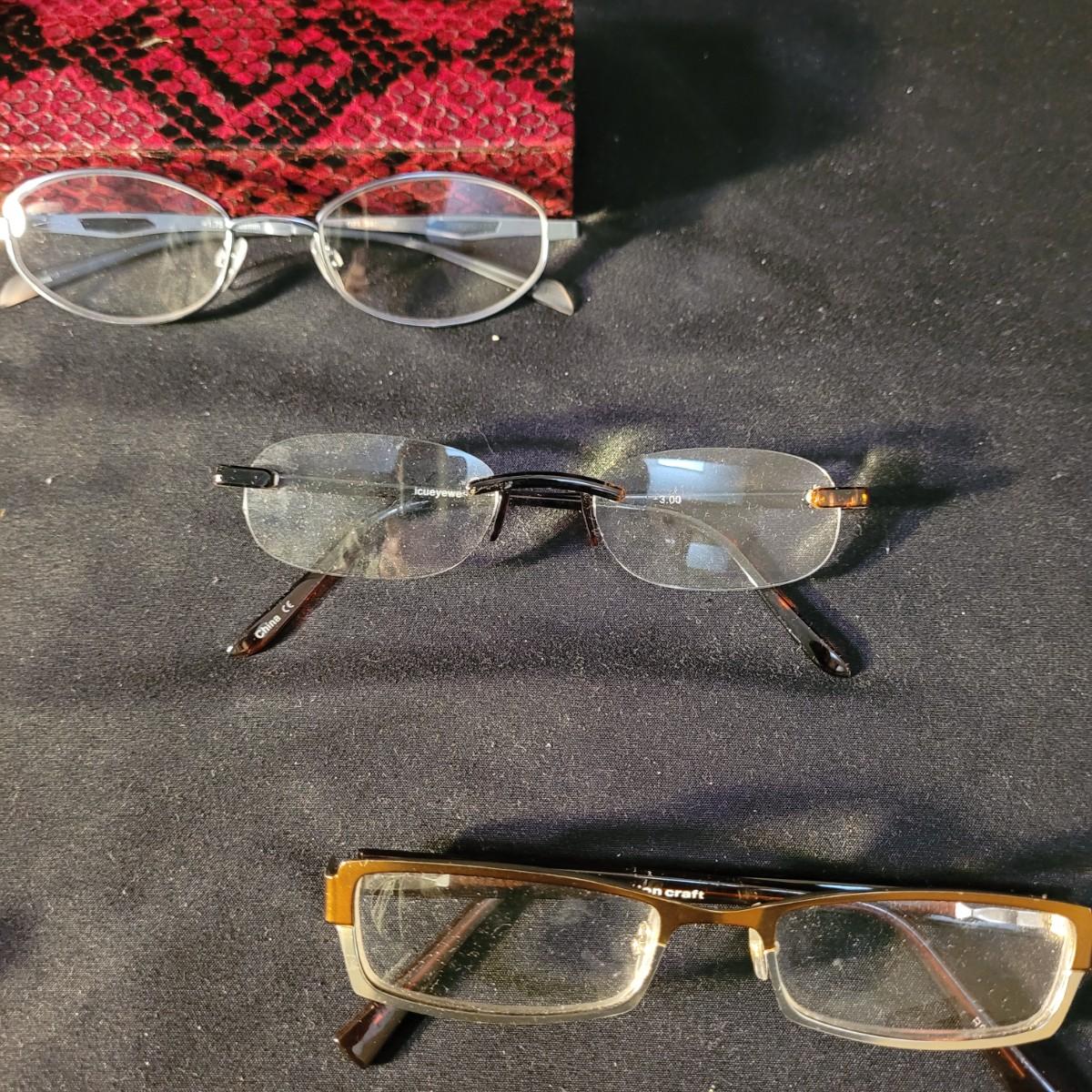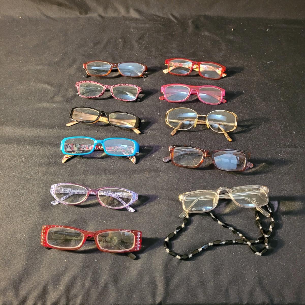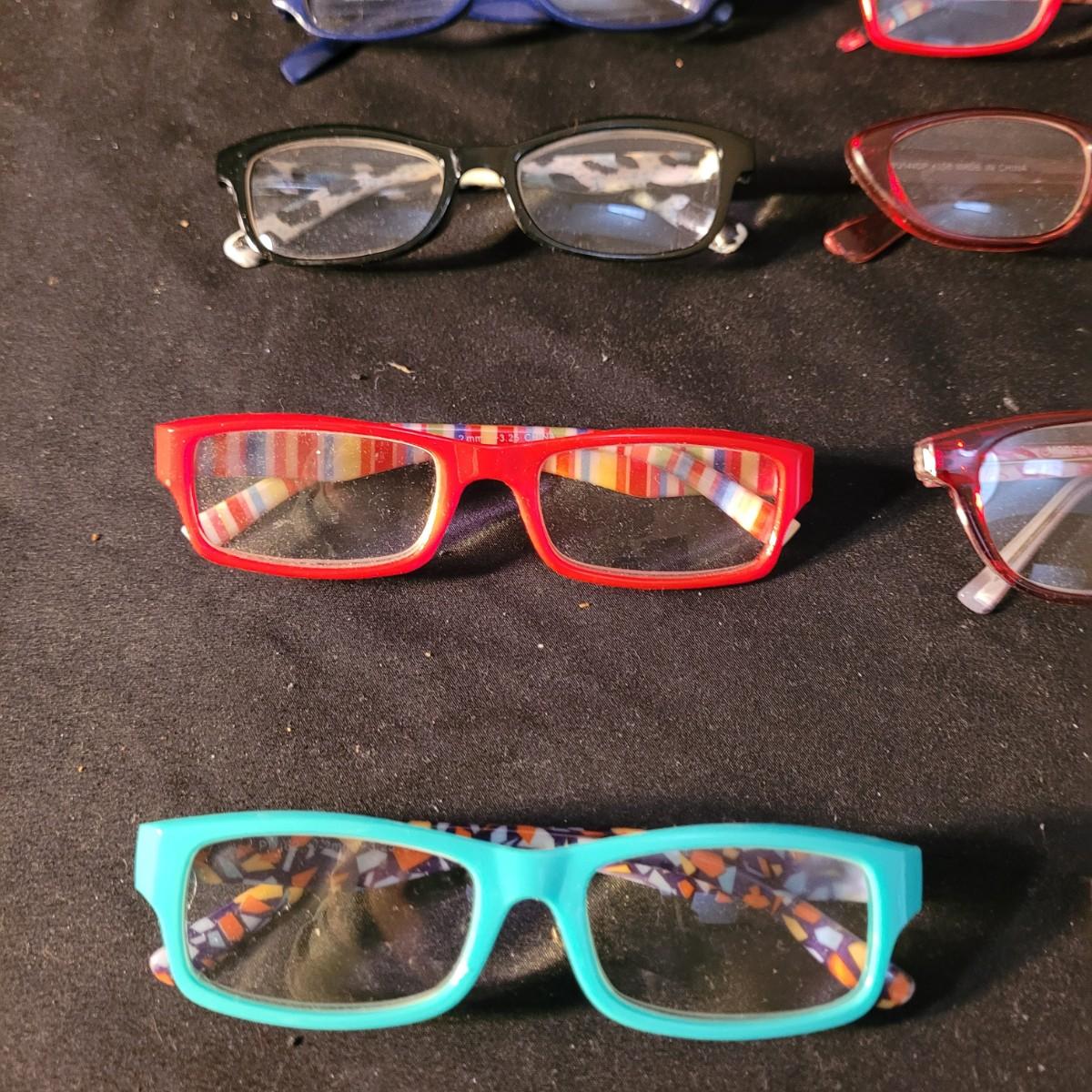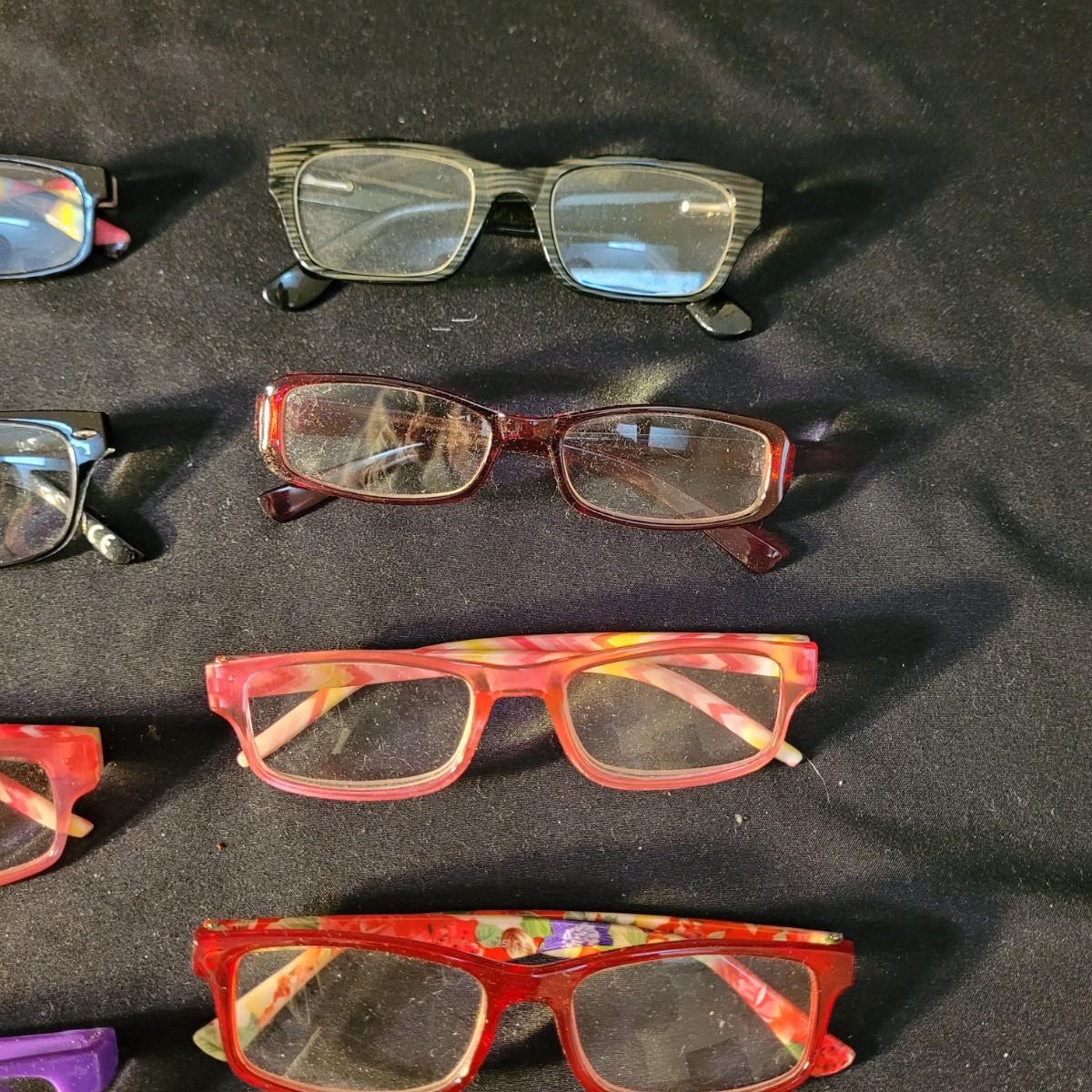 A huge variety of wire and plastic frame reading glasses in many styles. Most glasses are 3.25-3.50 with some 2.50 strength. Accompanied by a wide variety of cases as well. Shipping available.