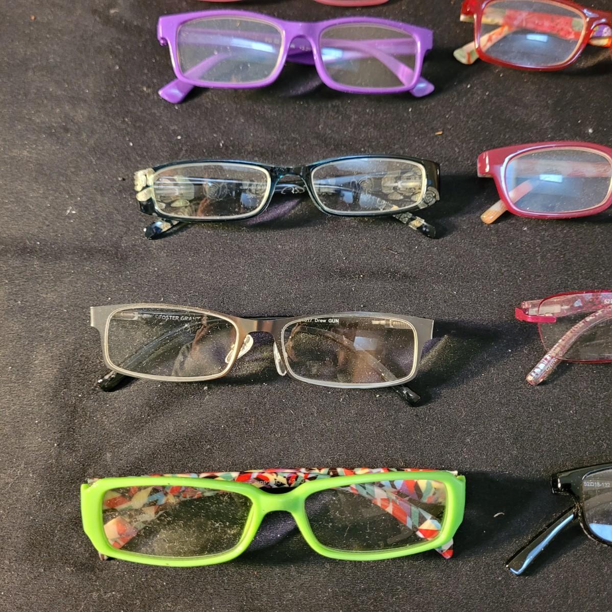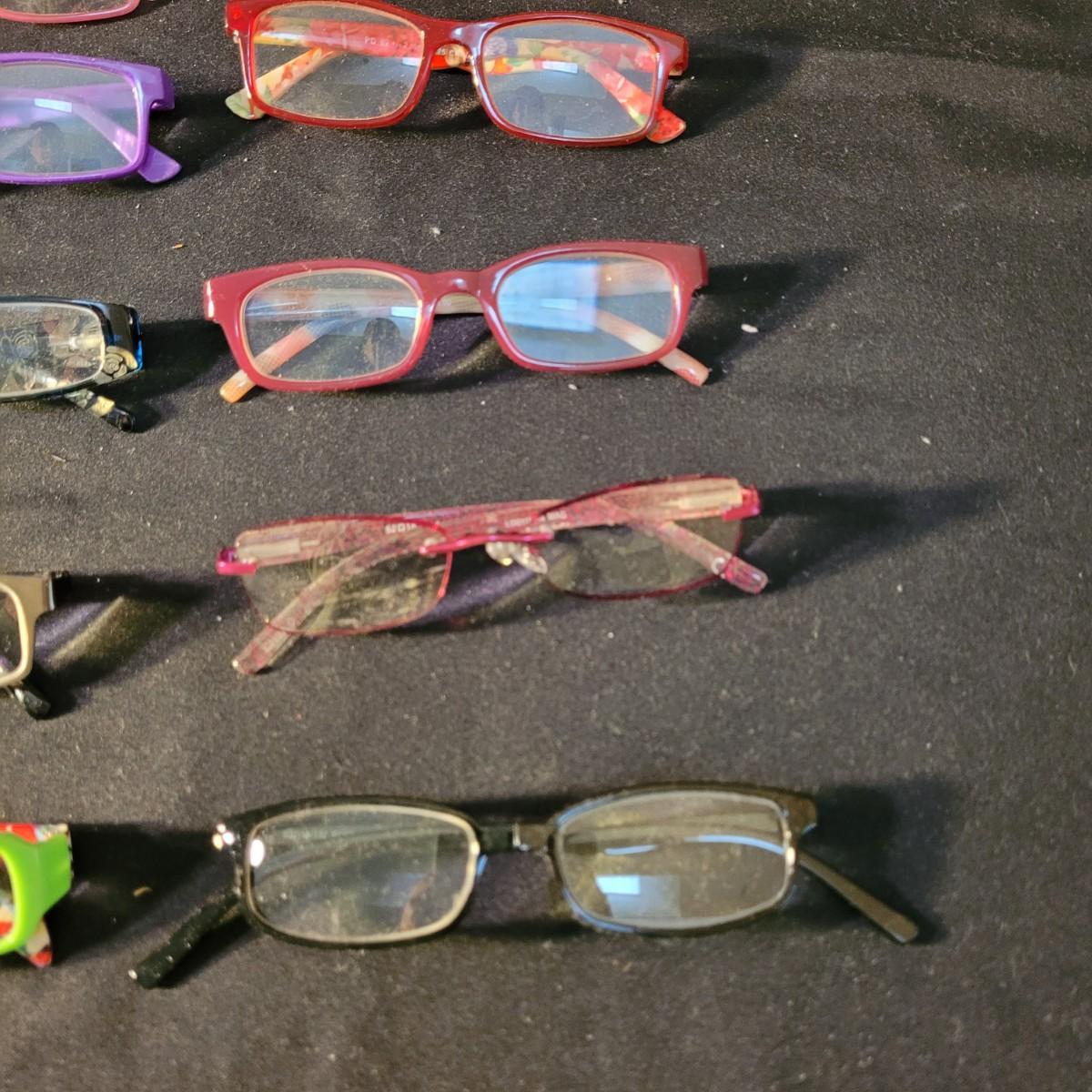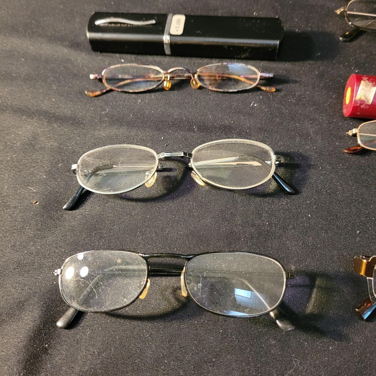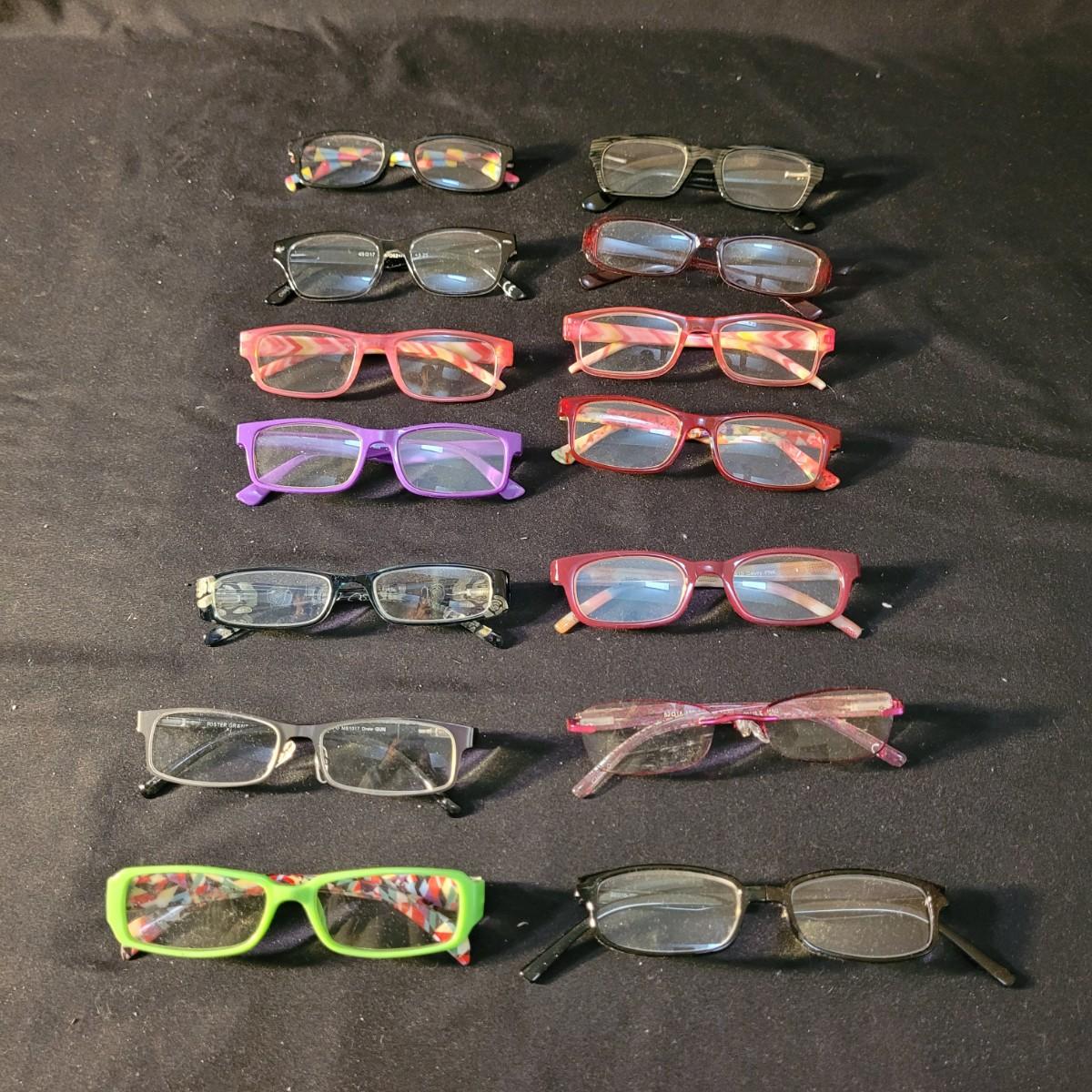 A huge variety of wire and plastic frame reading glasses in many styles. Most glasses are 3.25-3.50 with some 2.50 strength. Accompanied by a wide variety of cases as well. Shipping available.