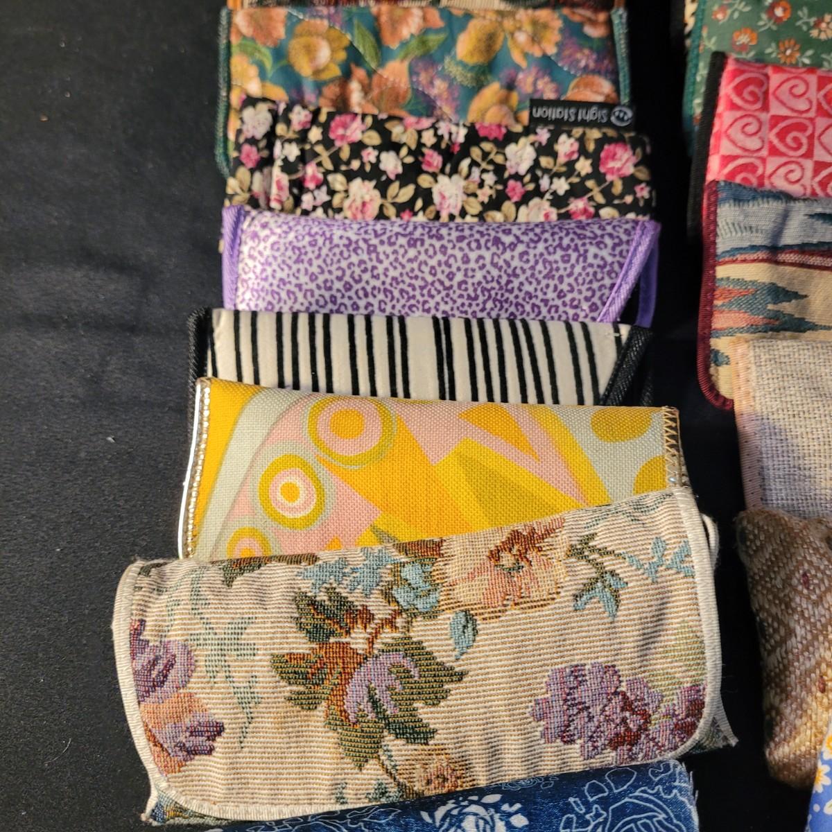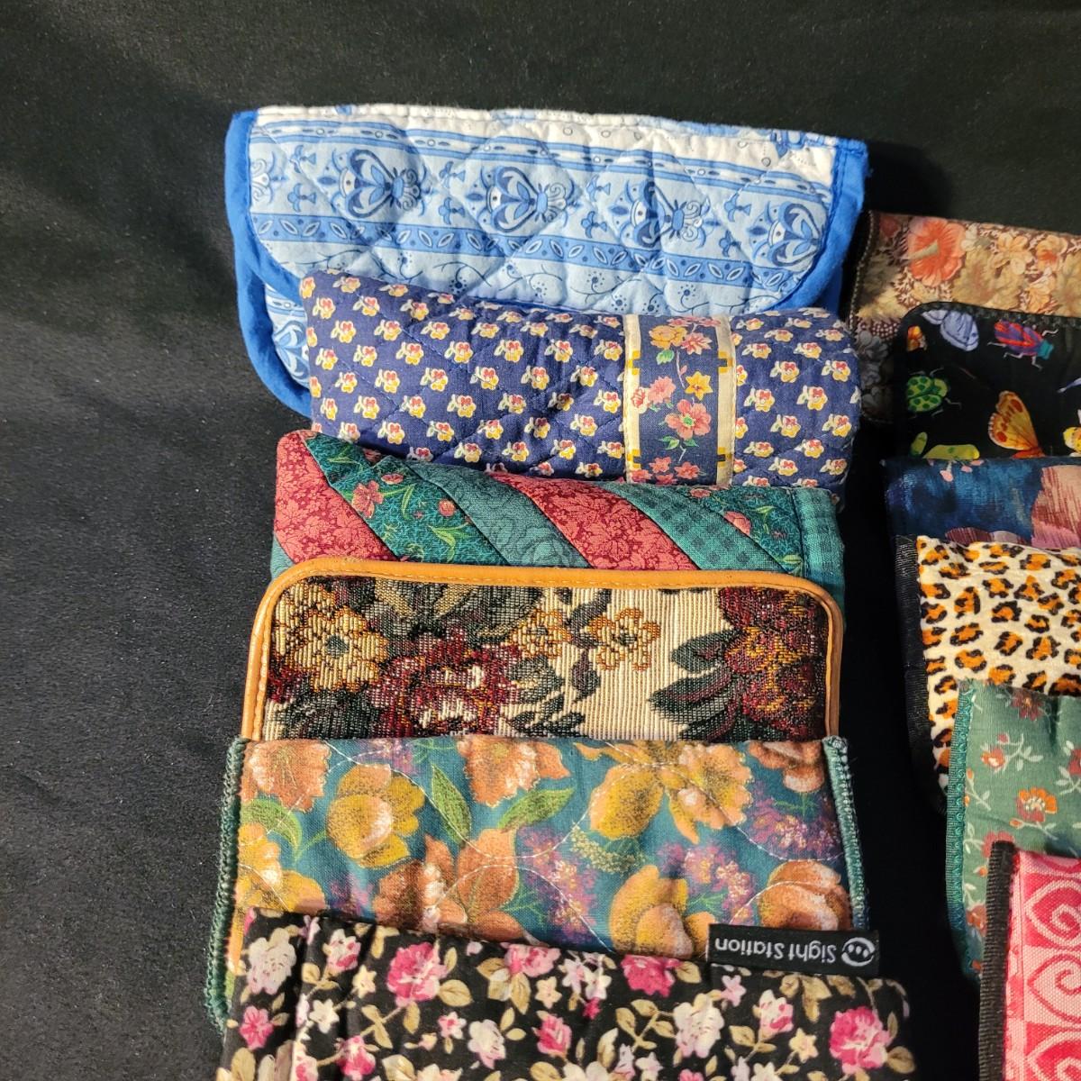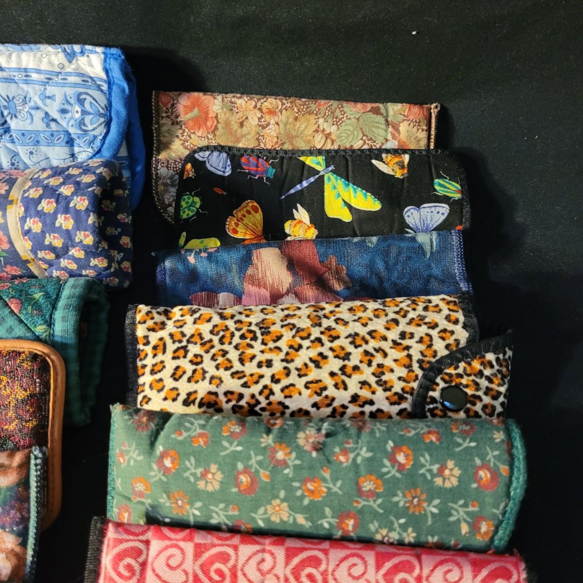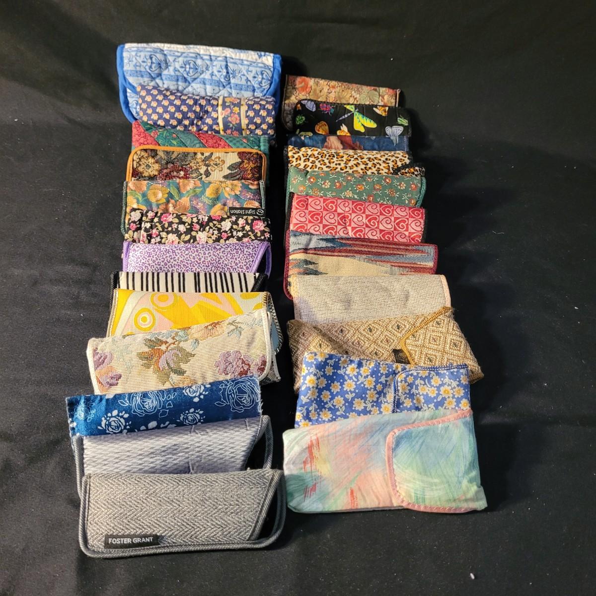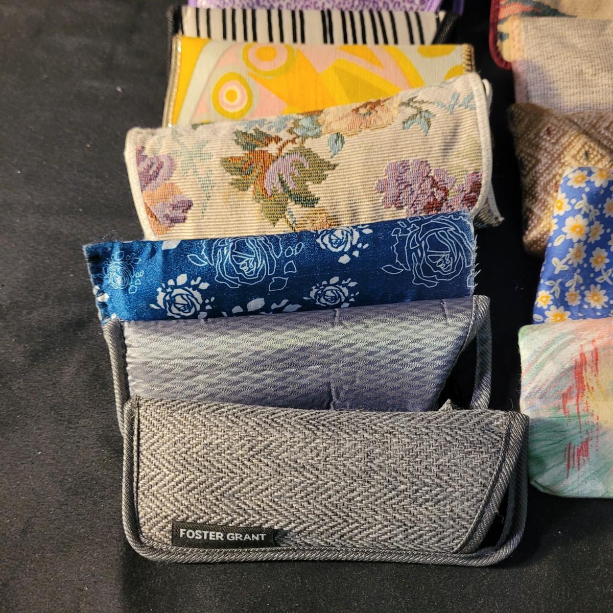 A huge variety of wire and plastic frame reading glasses in many styles. Most glasses are 3.25-3.50 with some 2.50 strength. Accompanied by a wide variety of cases as well. Shipping available.