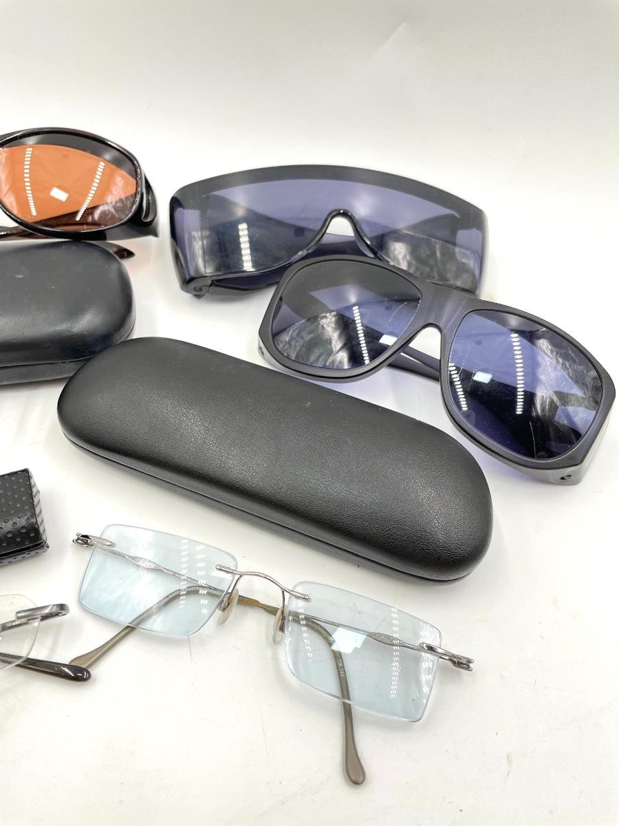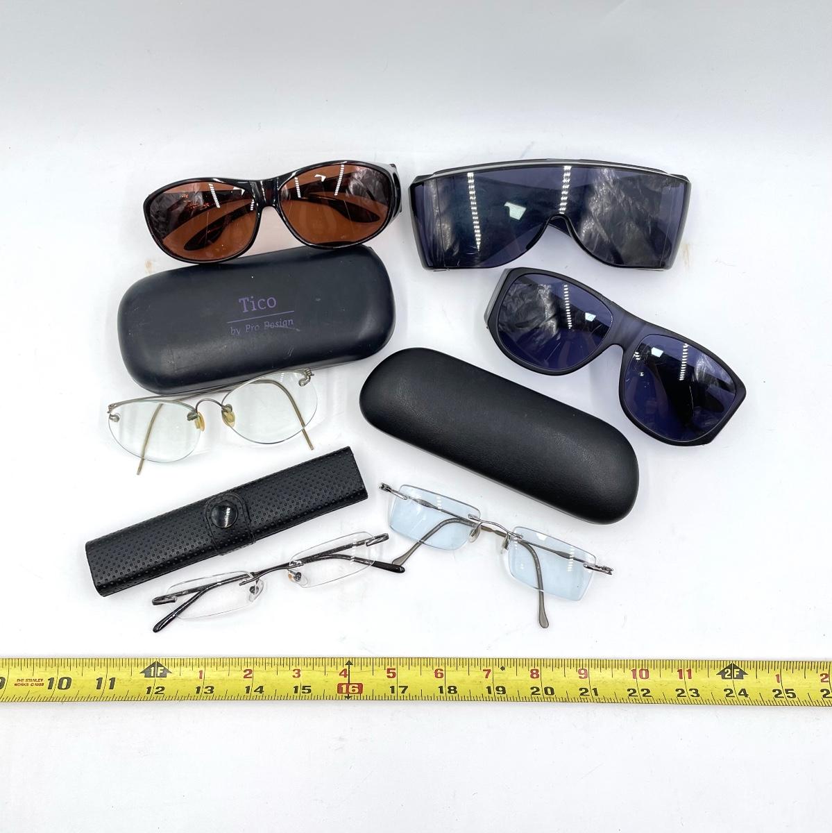 Includes 3 pairs of SolarShield sunglasses, one pair of Silhoutte glasses, one pair of Foster Grand, one unmarked - and 3 cases.