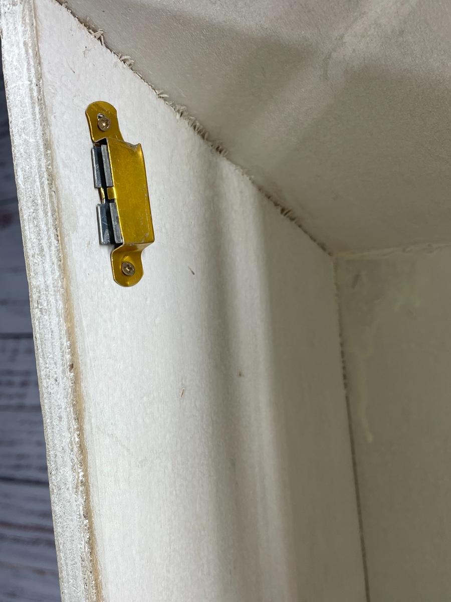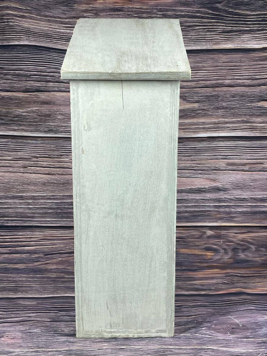 Item is in great condition. The front sign says: “reading room only.” This cabinet is magnetic and closes very well. It is approximately 19” tall.