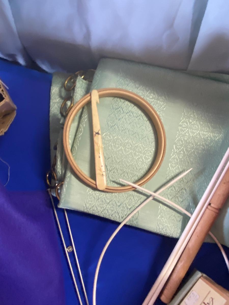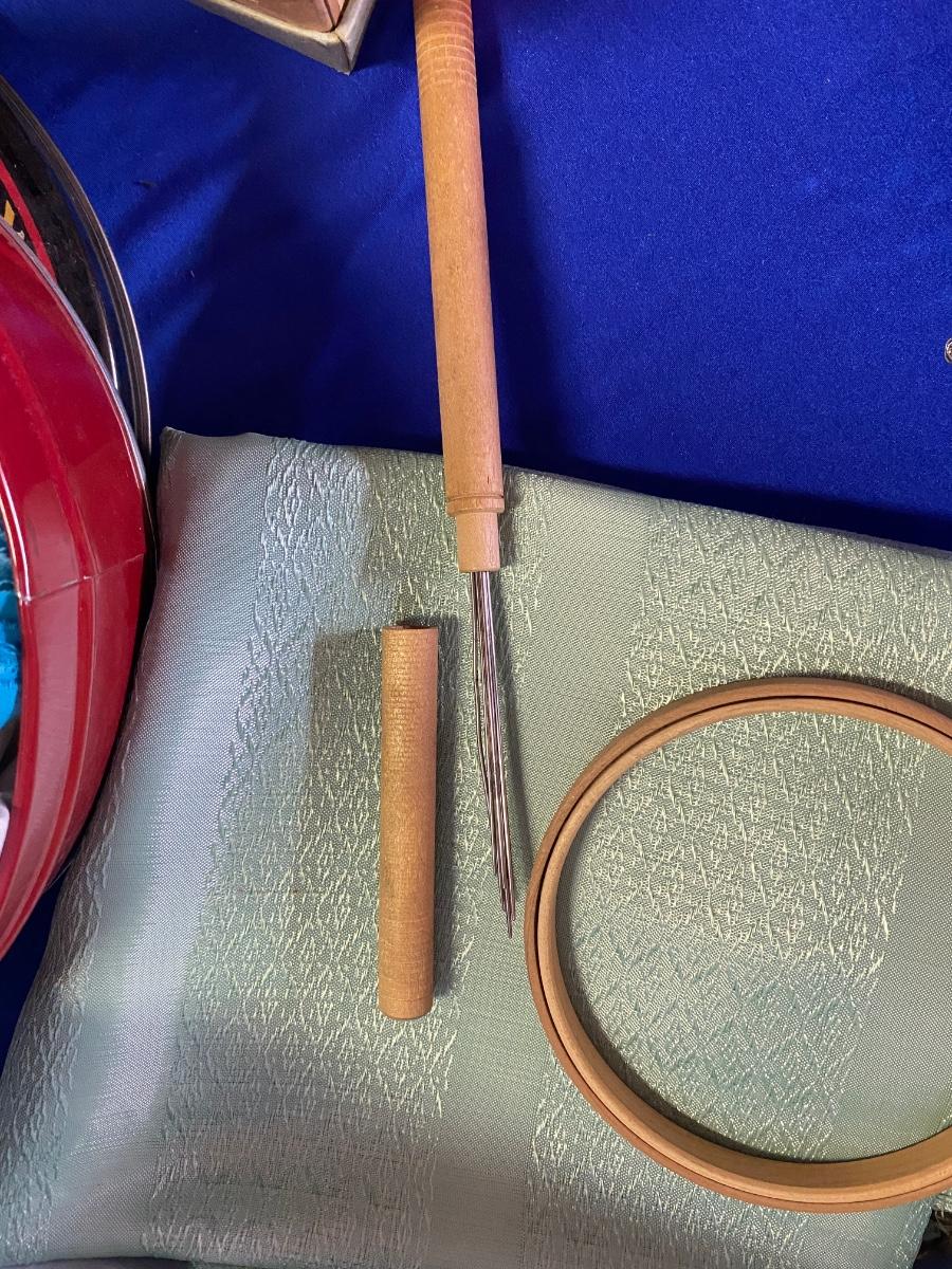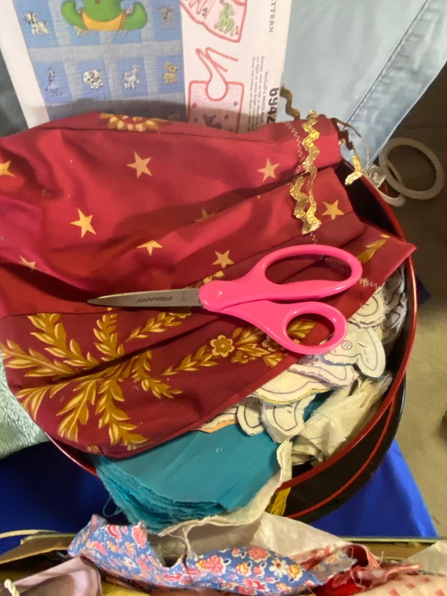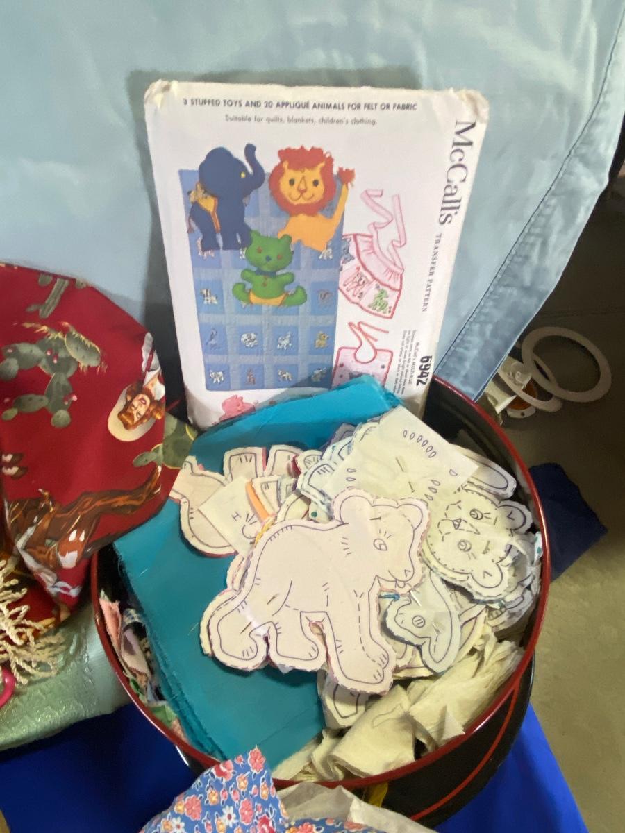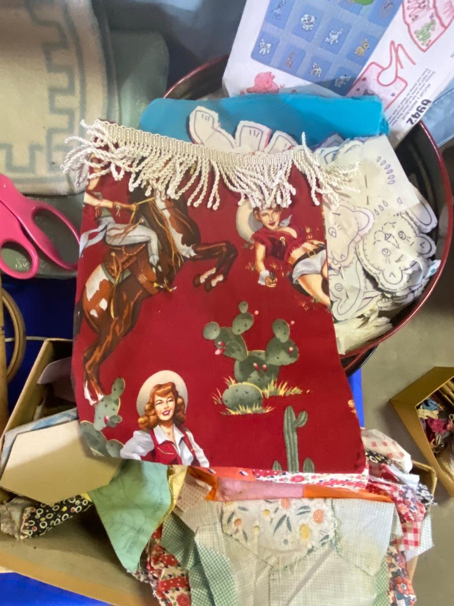 READY TO GO QUILT CUT OUTS, EMBROIDERY THREAT, A HUGE BOX OF CROQUET OR KNITTING THREAD AND MORE!