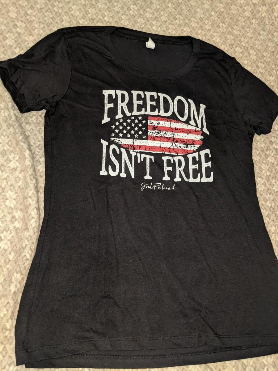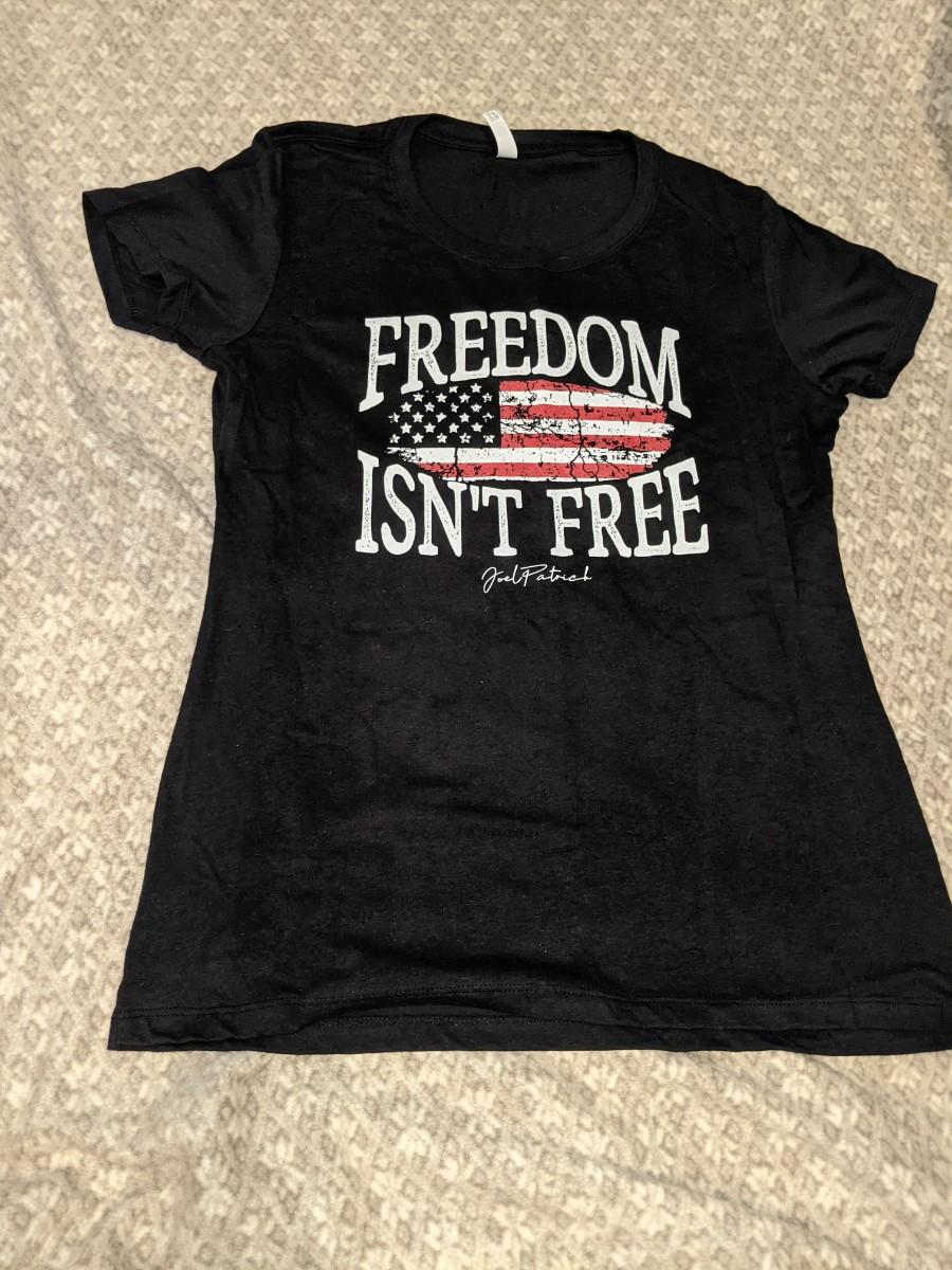 NEW "Freedom isn't free" ladies XL black. T-shirt is by Ideal T Next Level 60% cotton 40% polyester. soft. Value $20