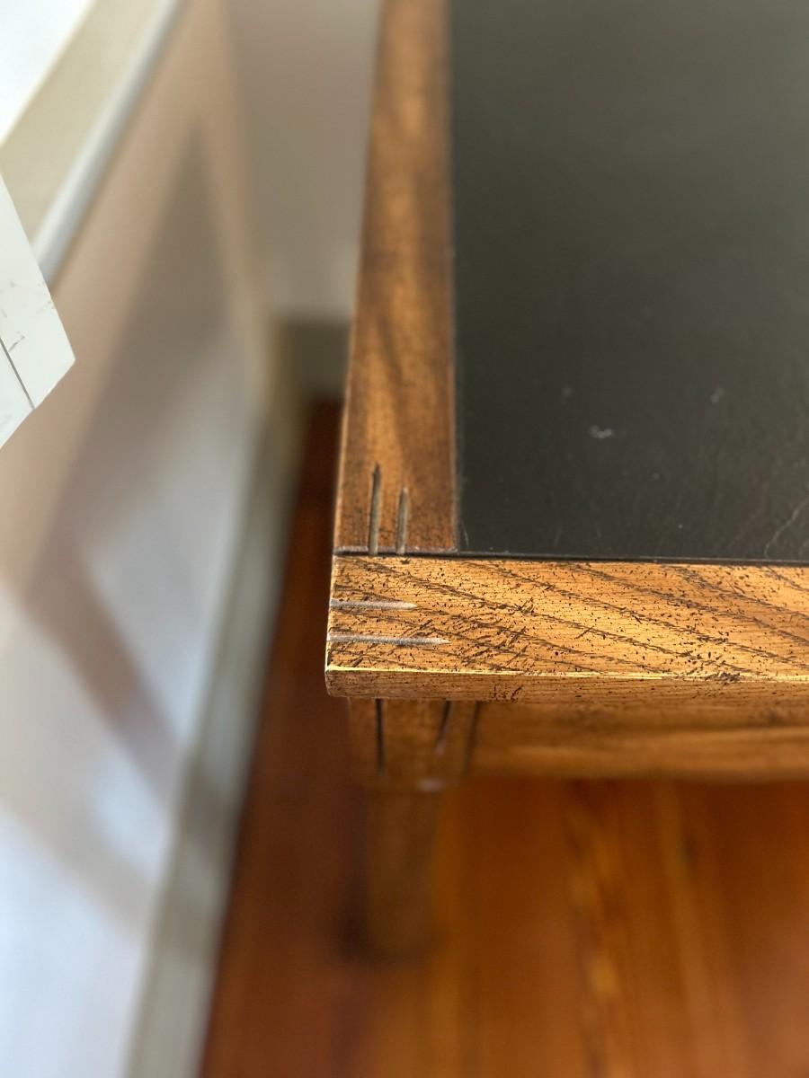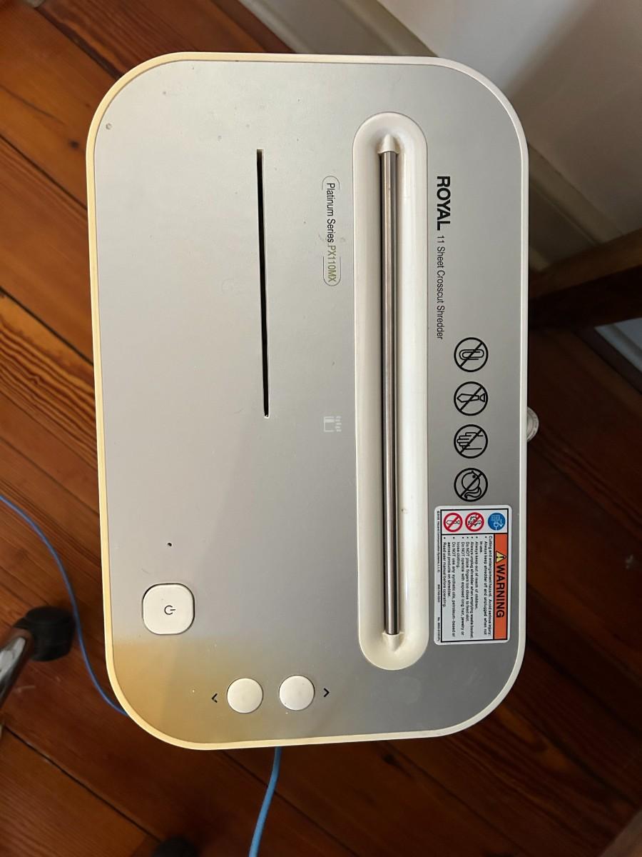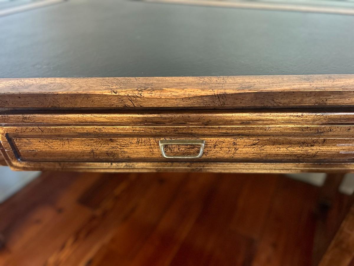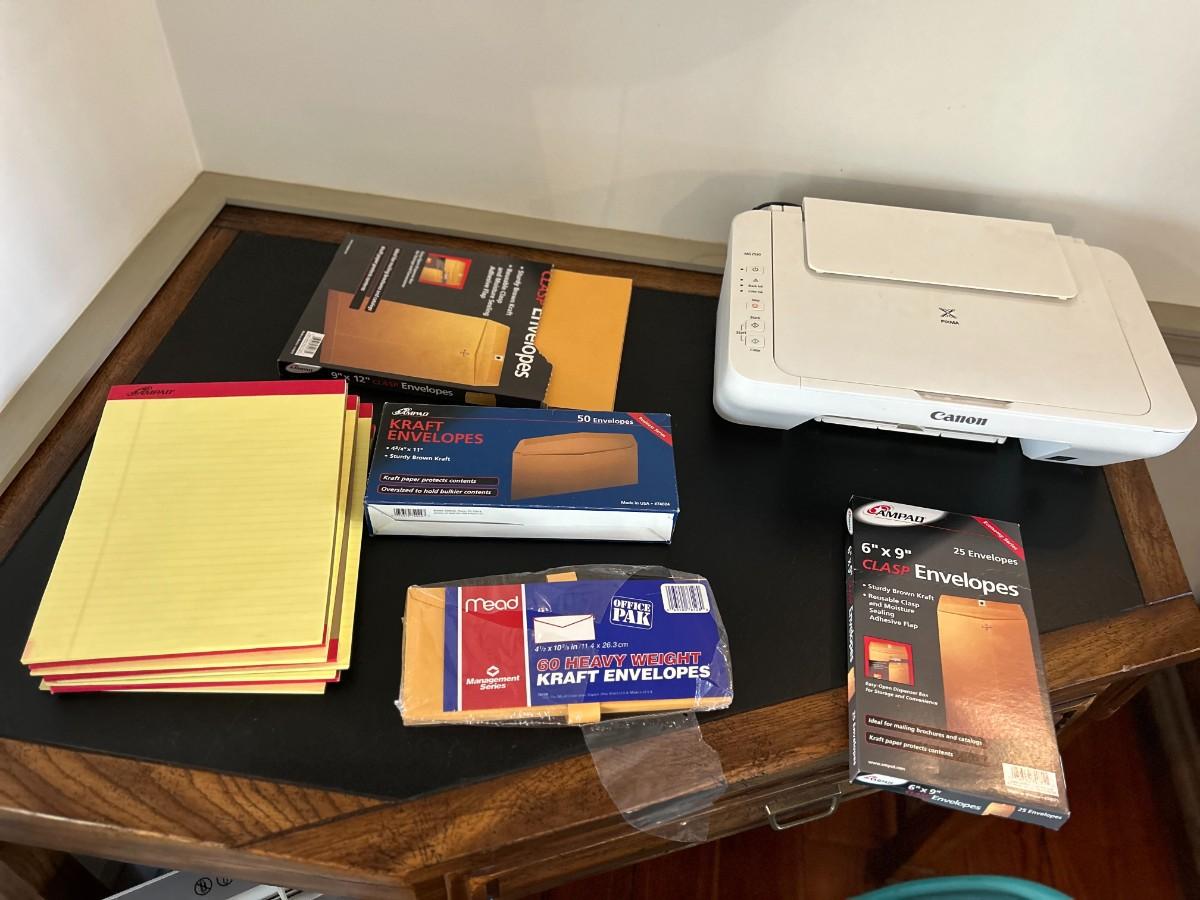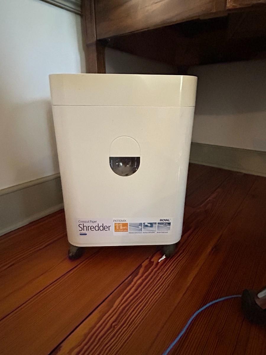 Leather top desk, fun rolling chair, printer and paper shredder and you're ready to start! Desk measures 30hx44wx30d
