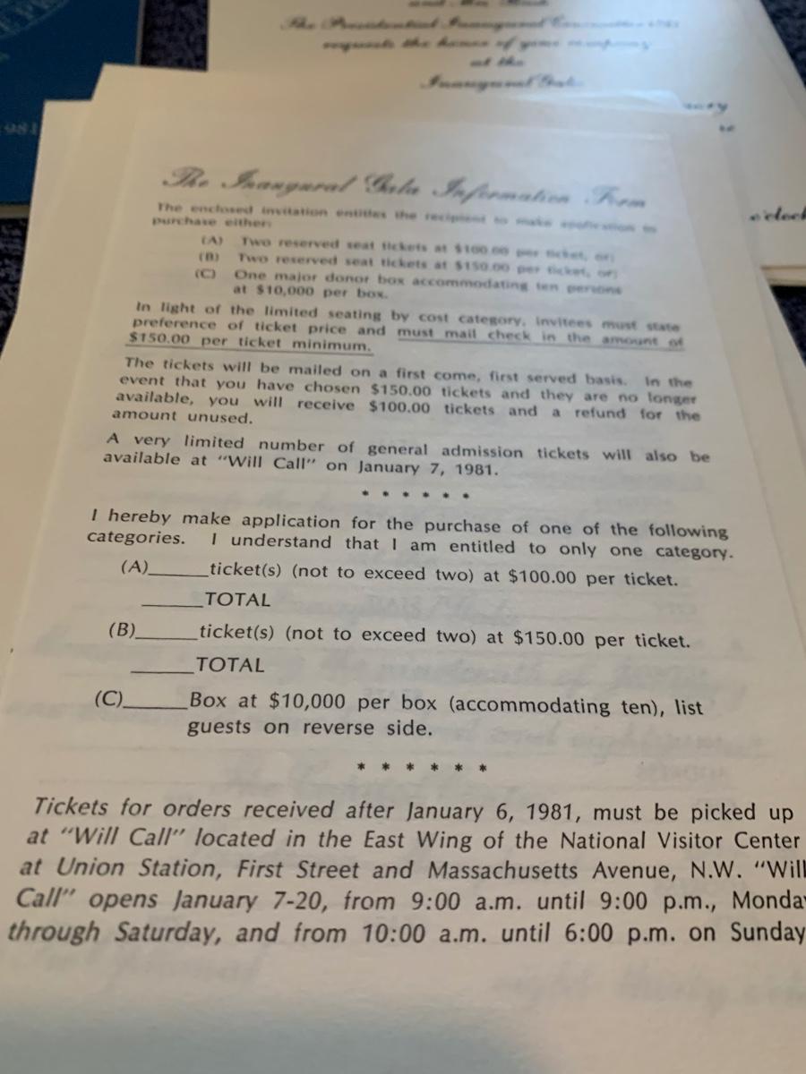 Reagan Inauguration Invites VIP Passes