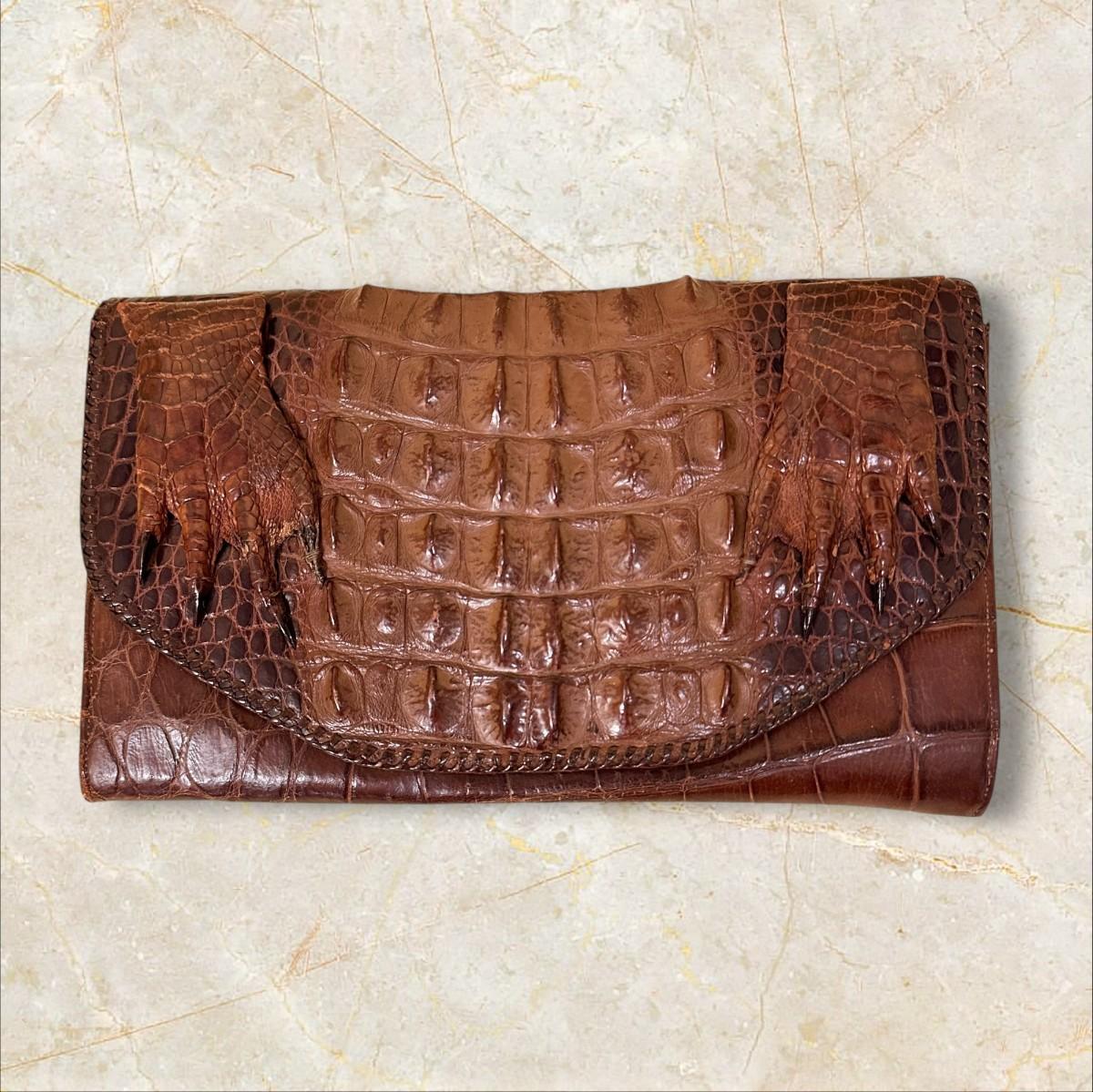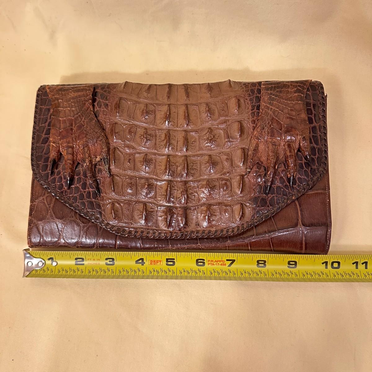 Brown Real Alligator Clutch Handbag - It's Got Claws! This one is most unusual- what a conversation piece, ladies! And in great shape! 10" x 6"