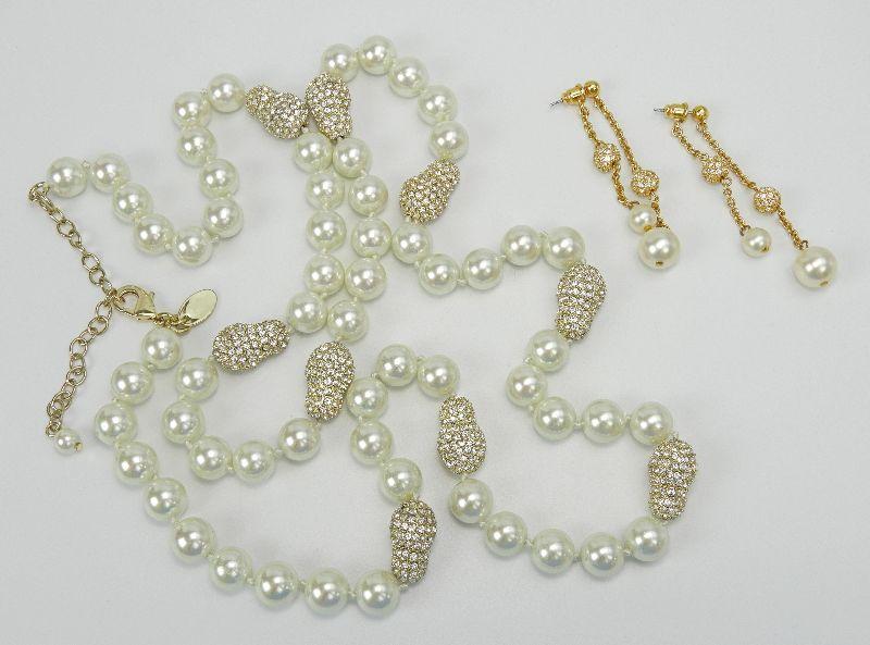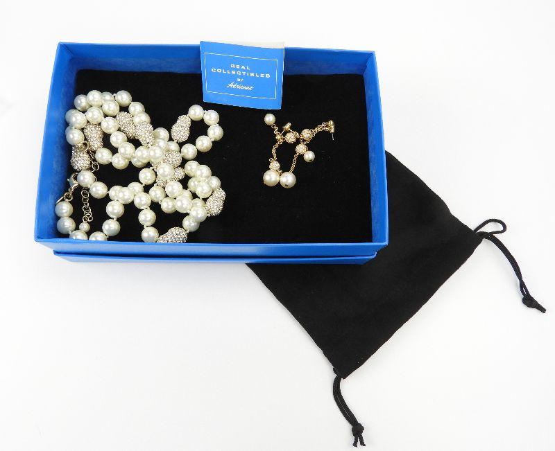 Real Collectibles by Adrienne Creme Pearl Bead and Rhinestone Necklace & Earring Set