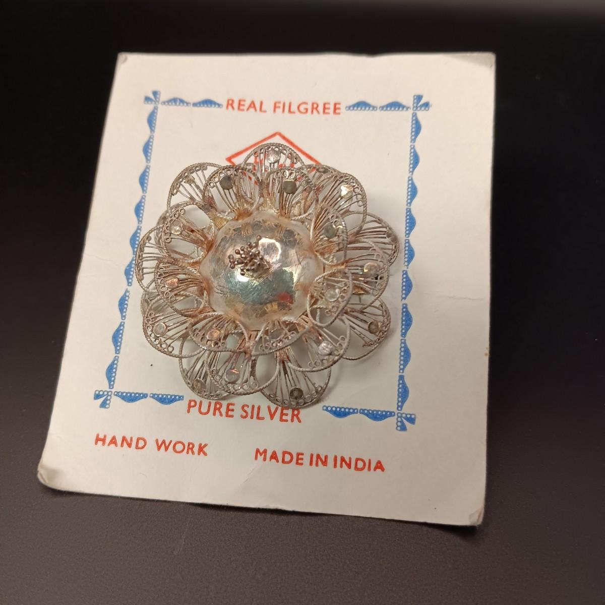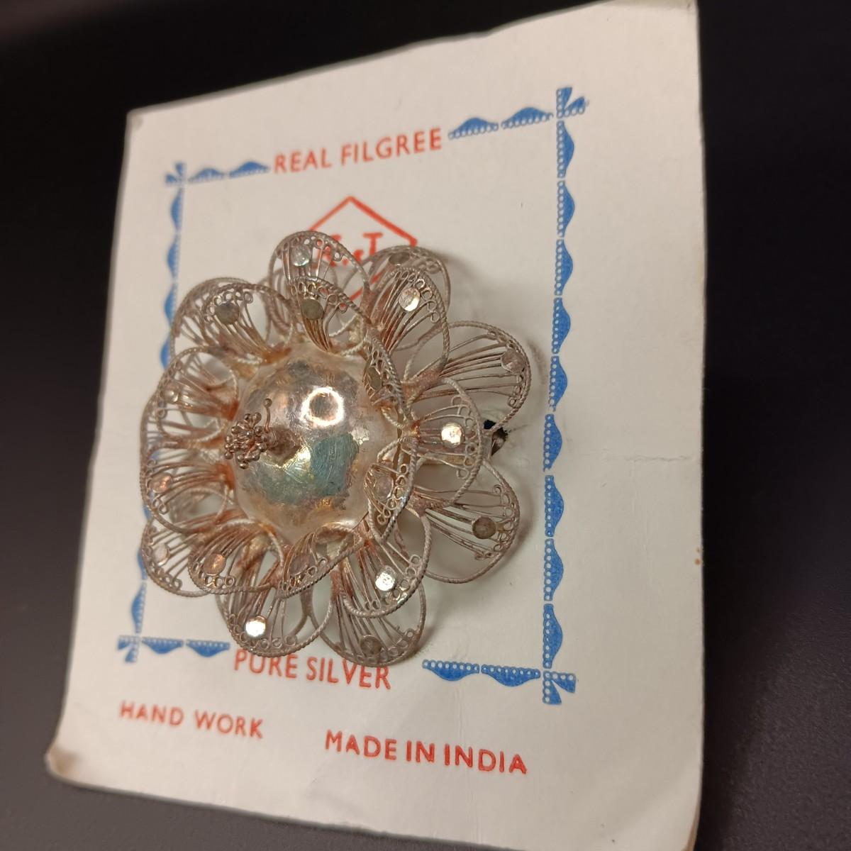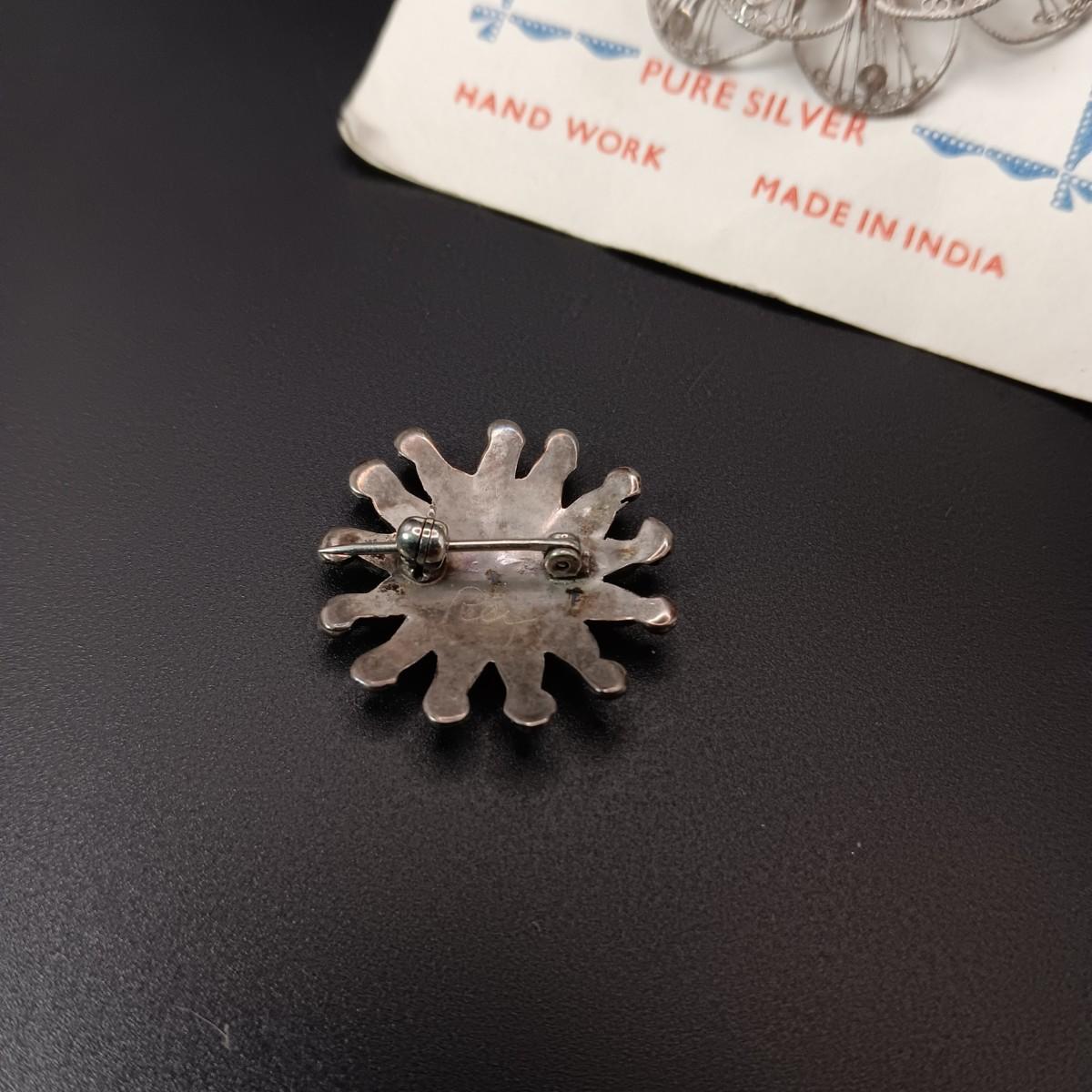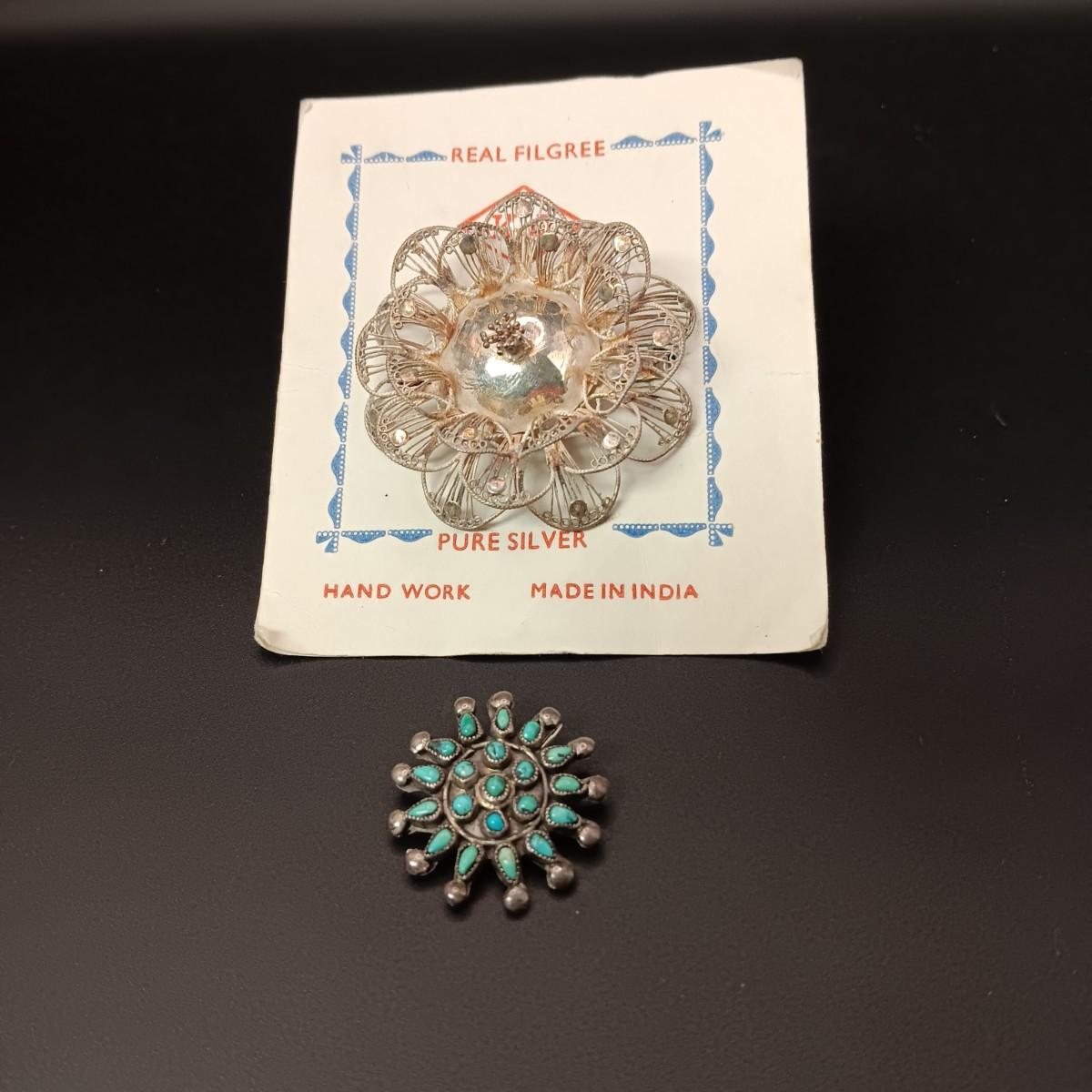 REAL FILIGREE PURE SILVER BROOCH AND A TURQUOISE AND SILVER PIN