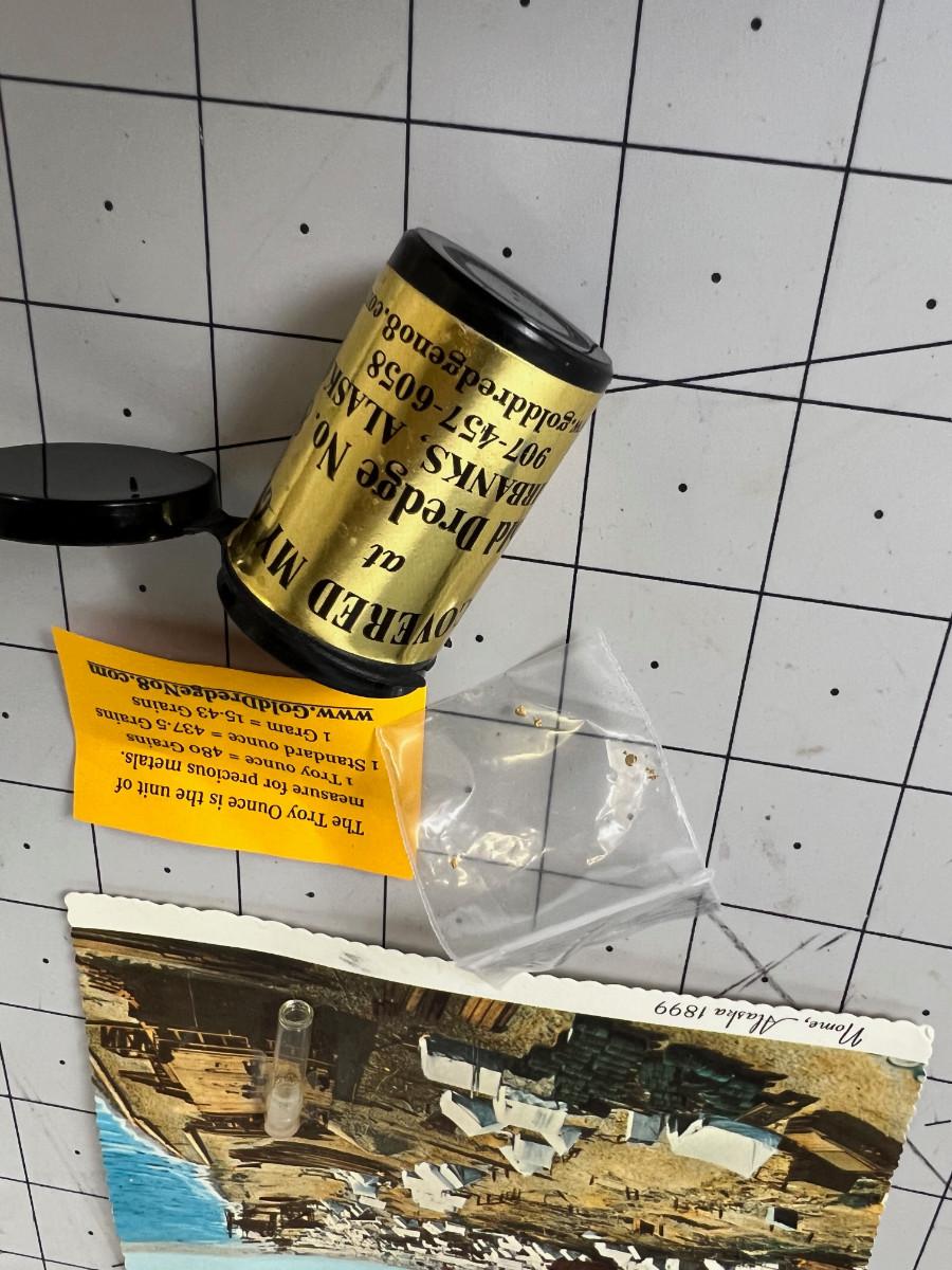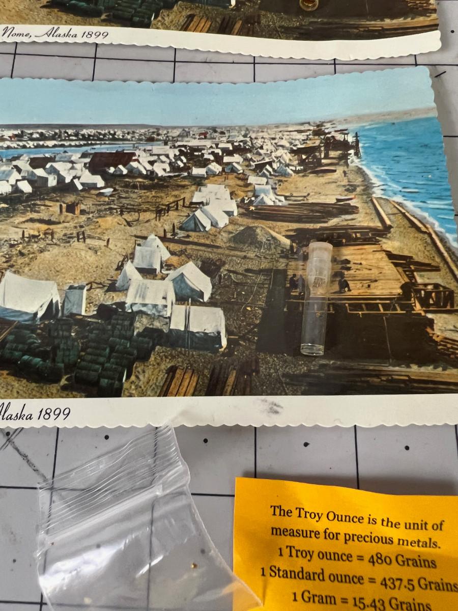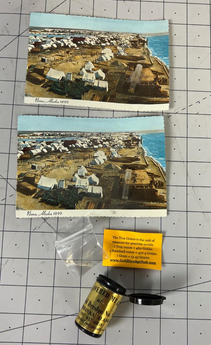 Real Gold From Fairbanks and Nome Alaska - 2 postcards and I vial