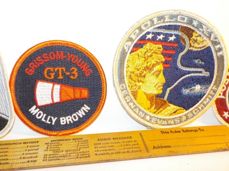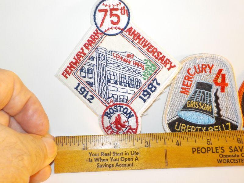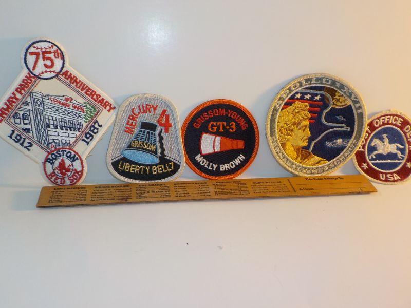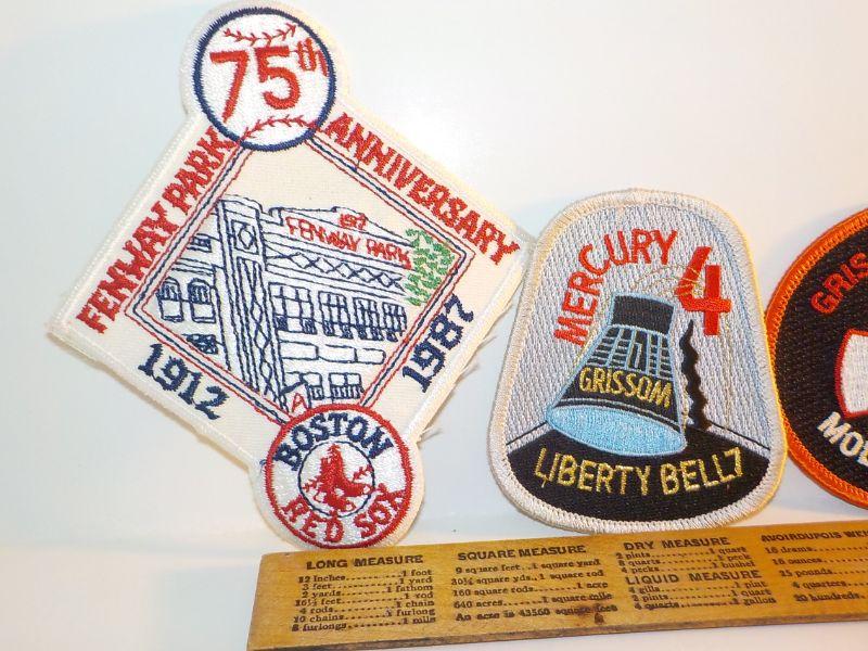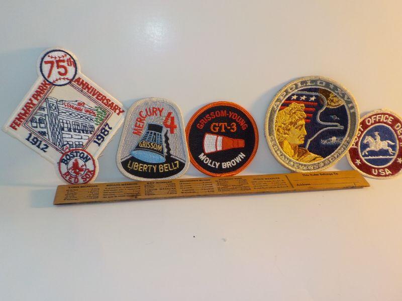" Real Patches  Fenway 75th, Mercury 4, Molly Brown, Apollo 17, USPS.