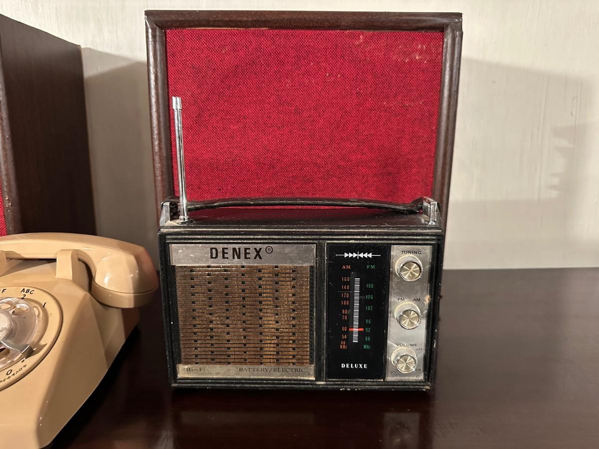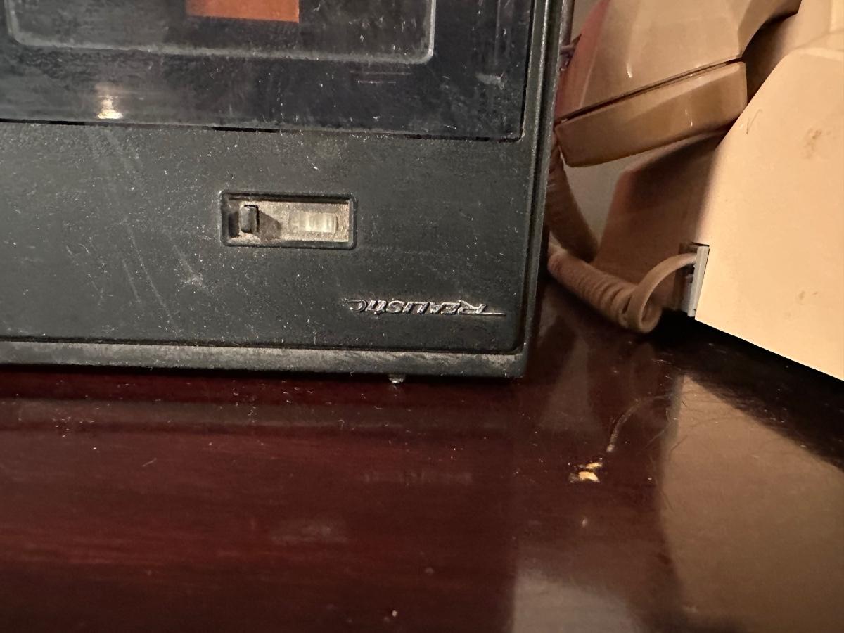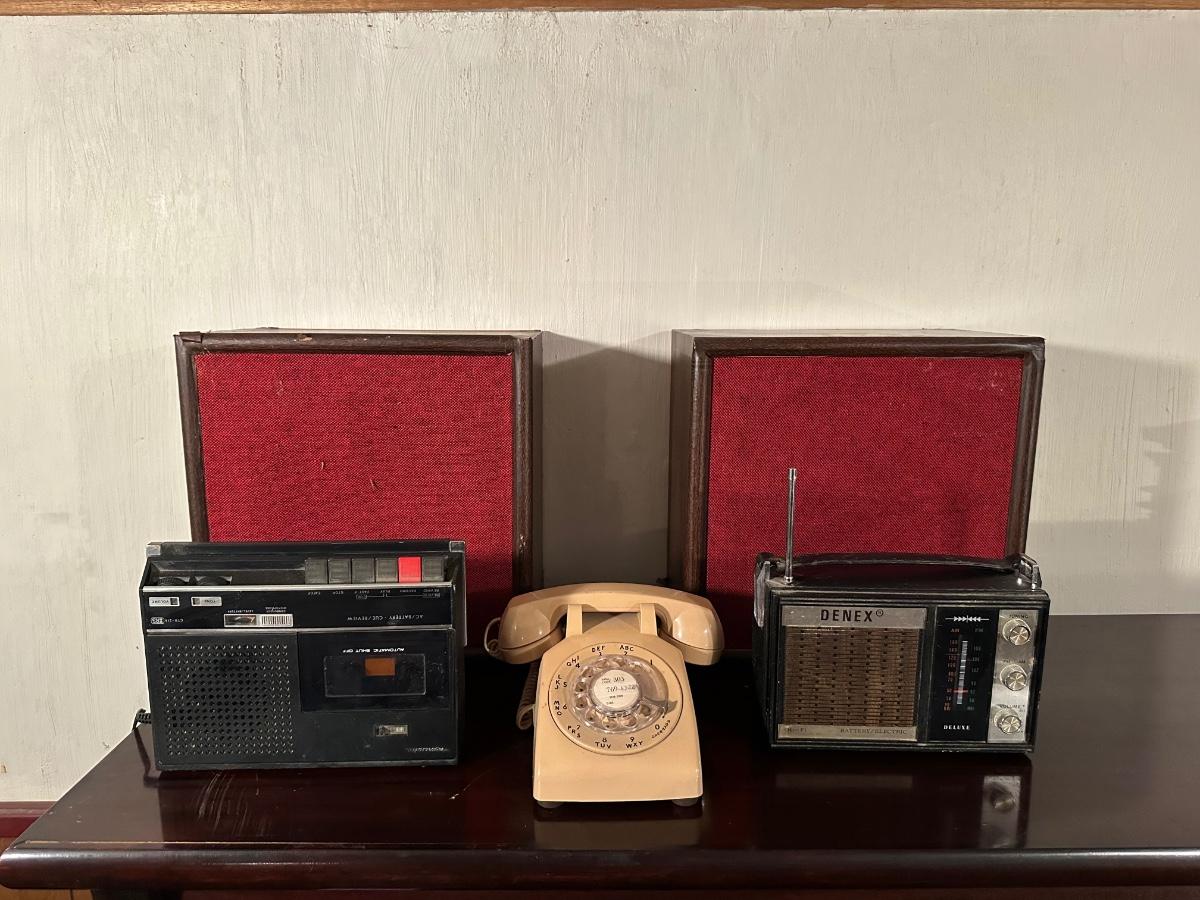 REALISTIC CASSETTE RECORDER, ROTARY PHONE, AM/FM RADIO AND SPEAKERS