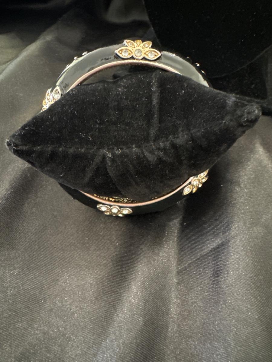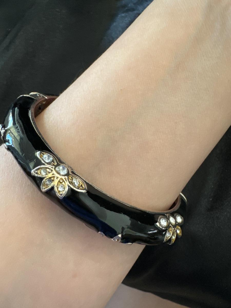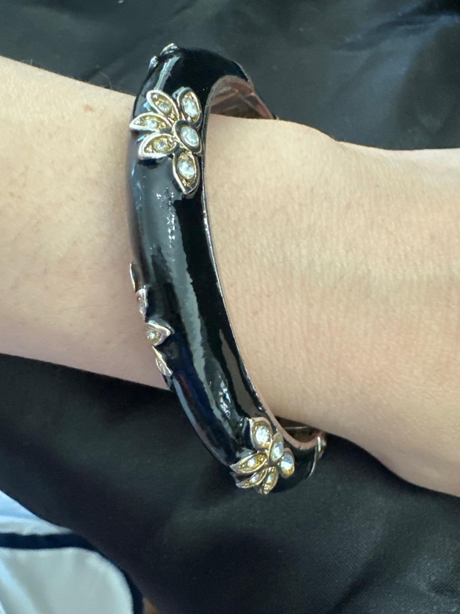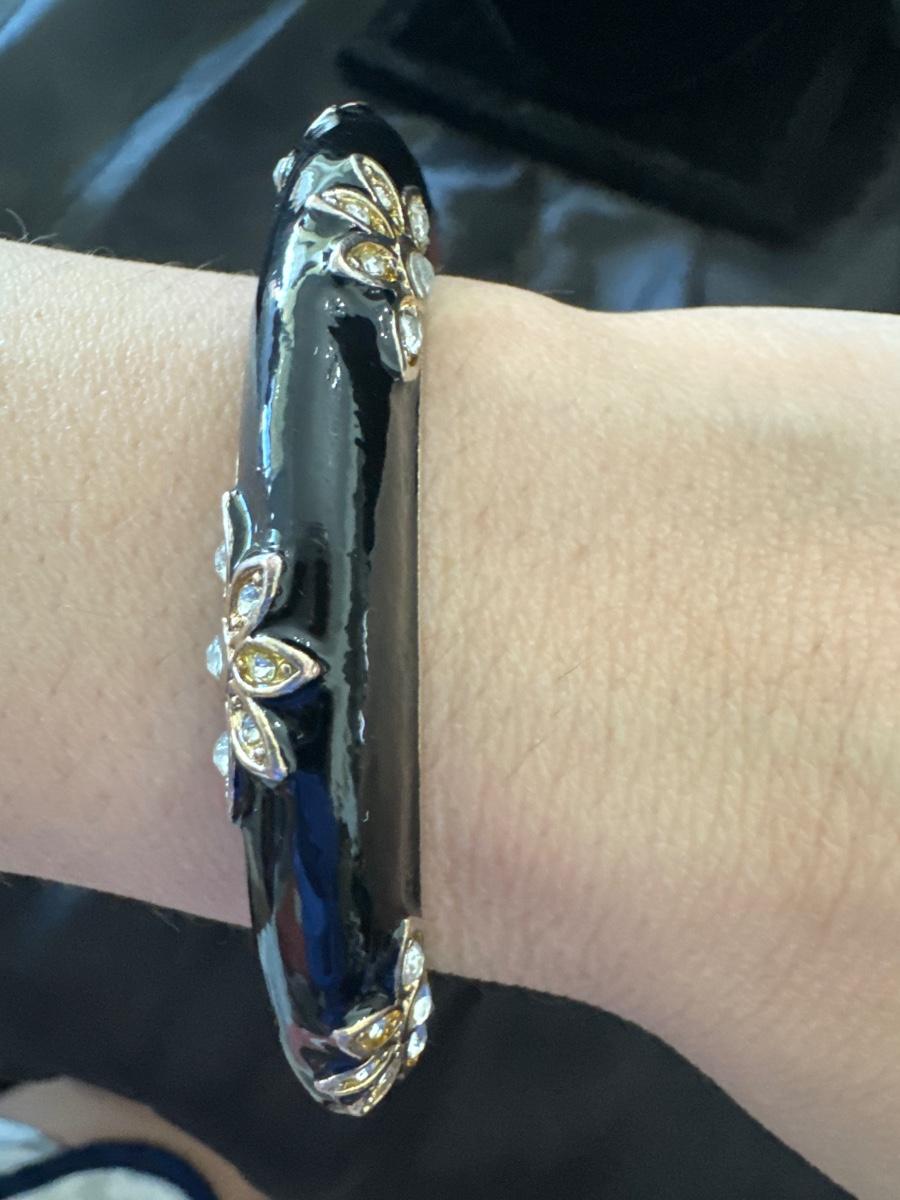 Really beautiful, black enamel, silver toned, hinged bracelet