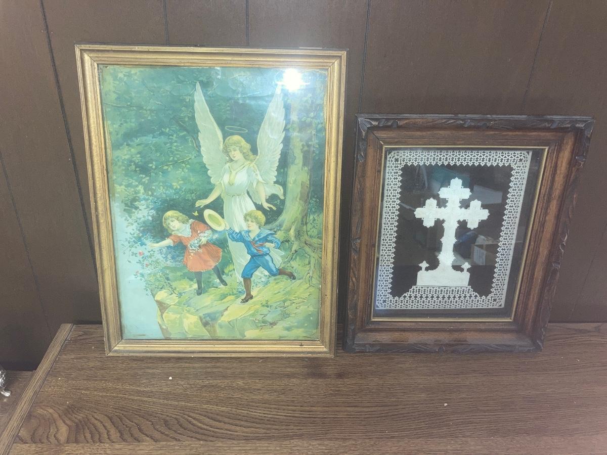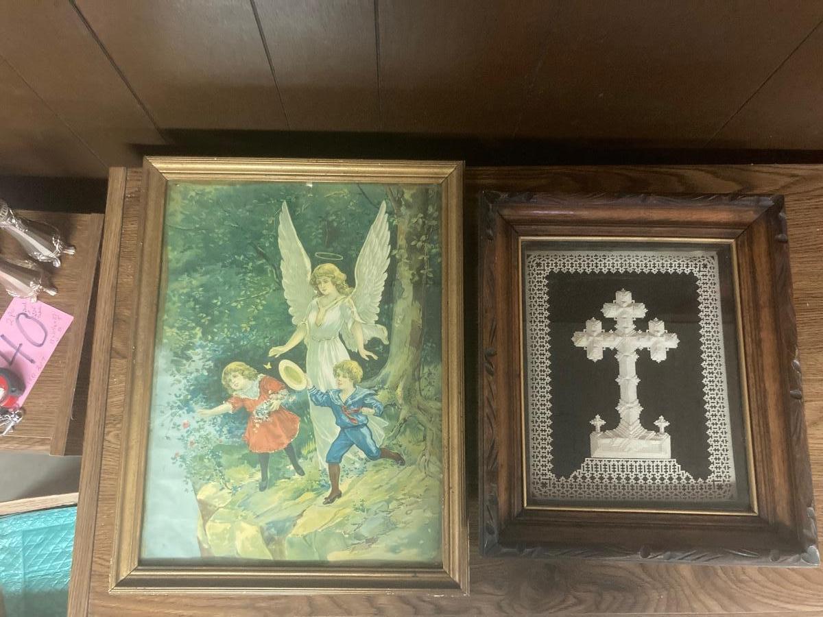 3D CROSS ON INTRICATE PAPER ART, AND A ANGEL PRINT