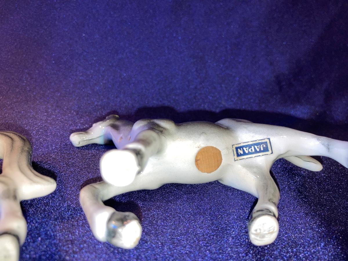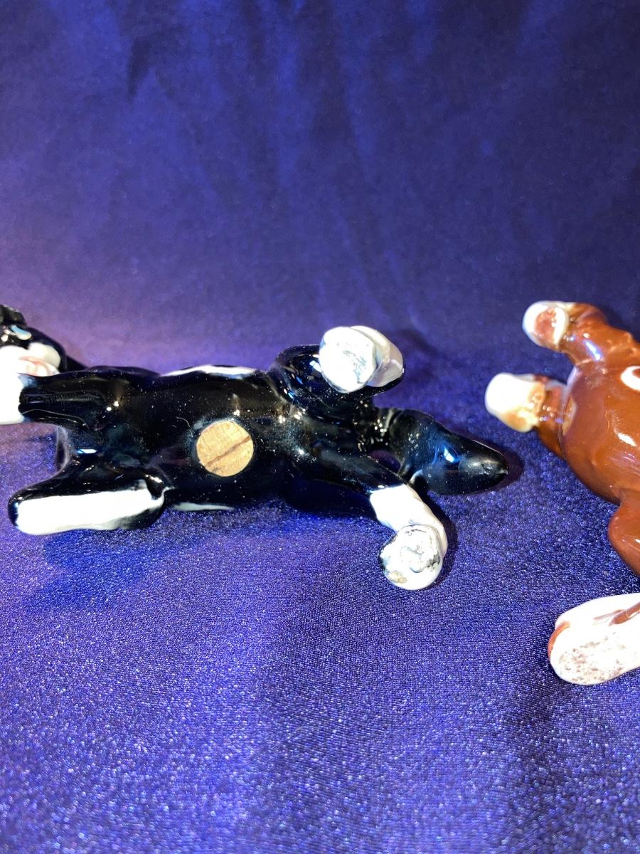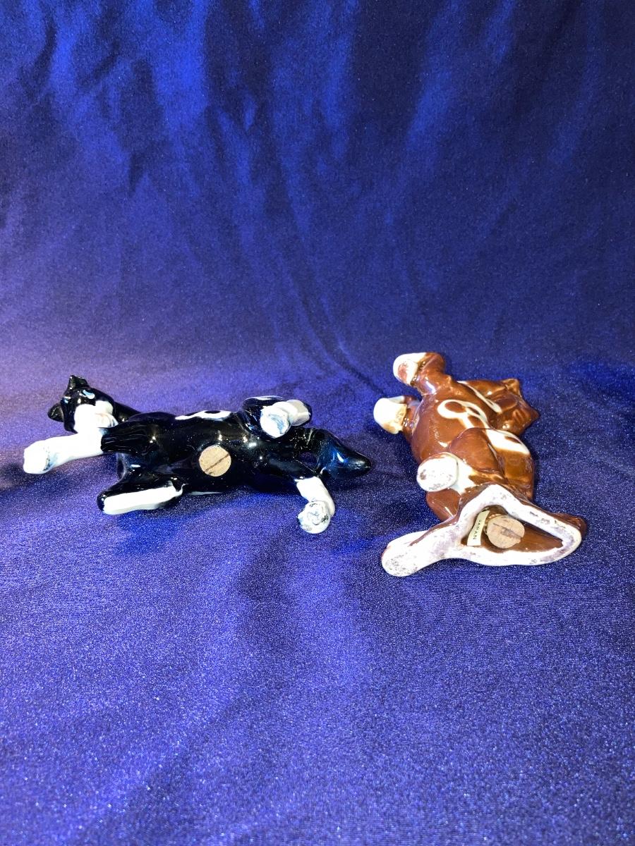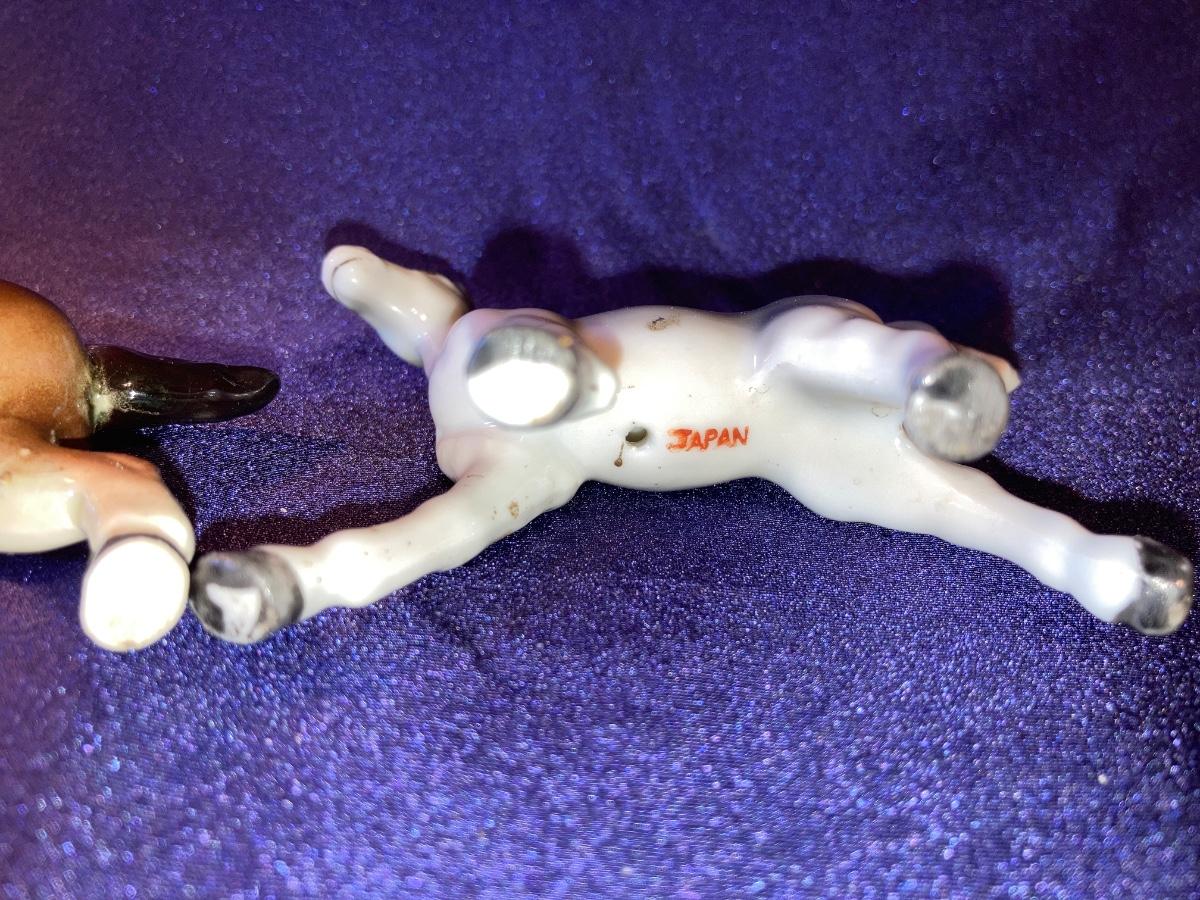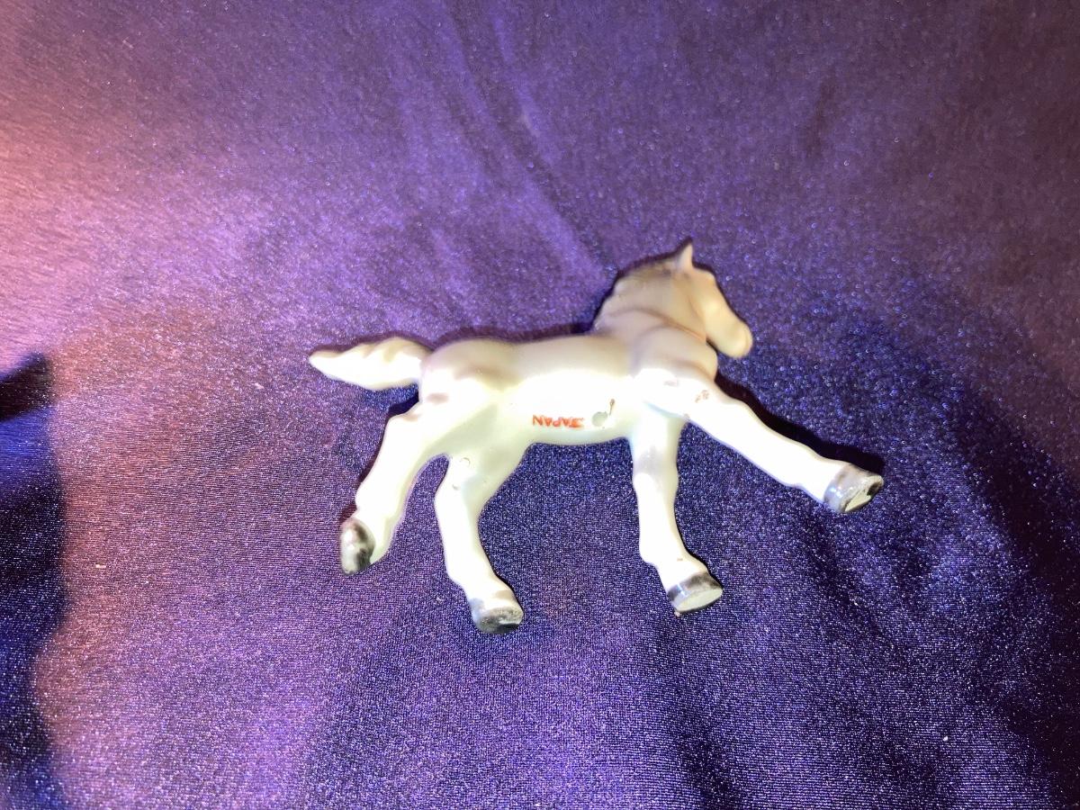 REALLY NEAT OLD SALT AND PEPPER SHAKER HORSES AND ALSO HORSE FIGURINES AND WOODEN BOX