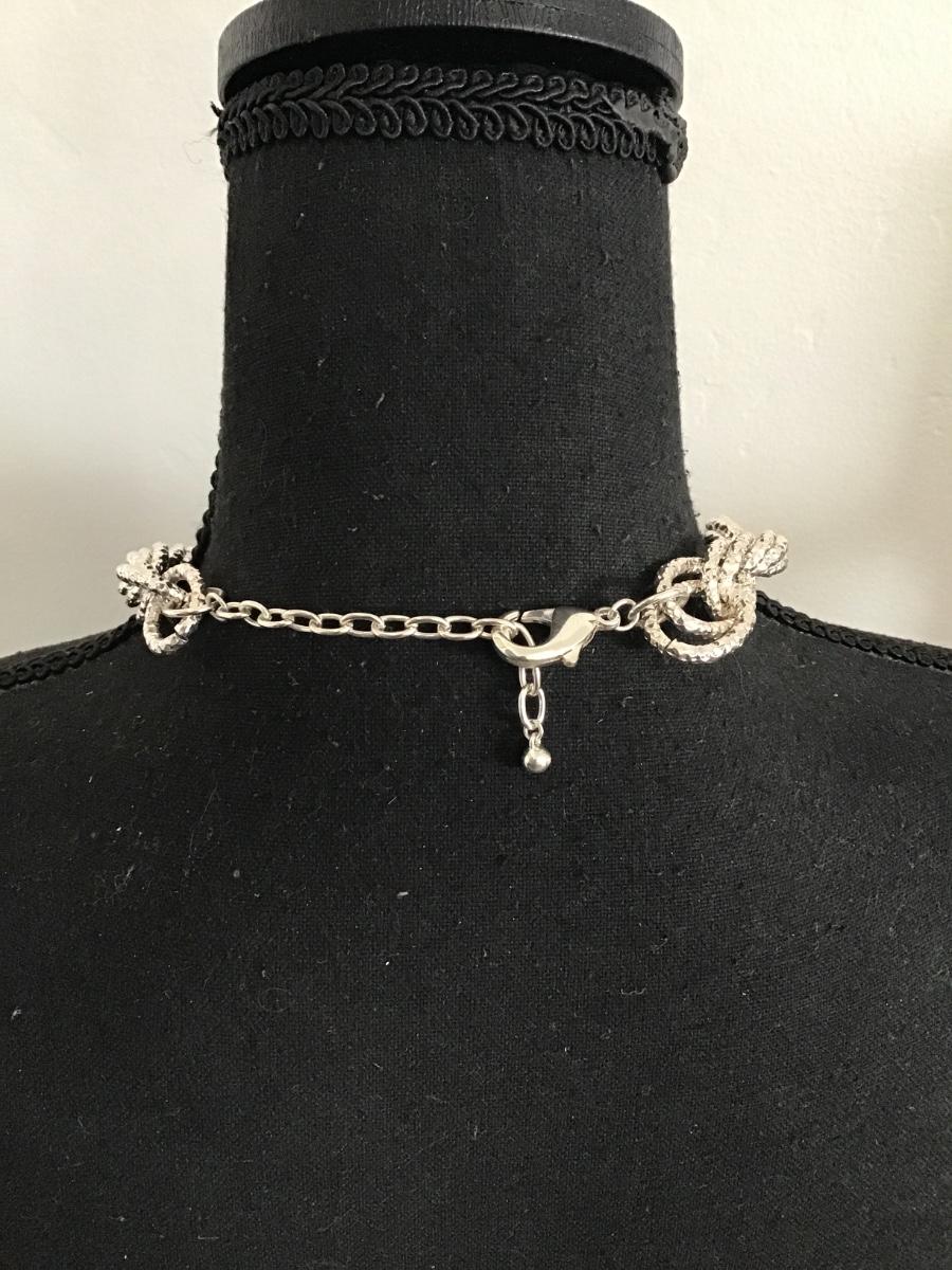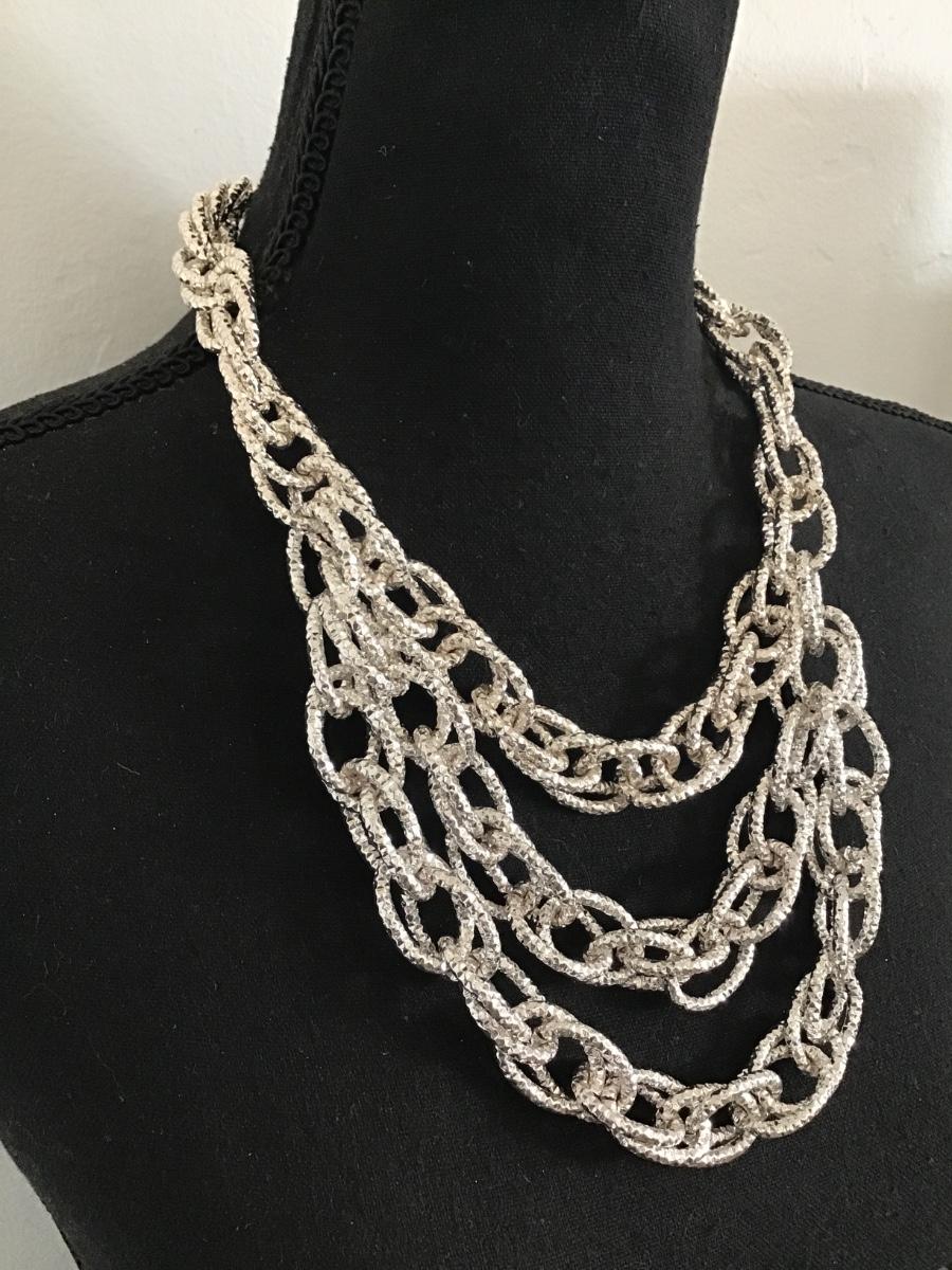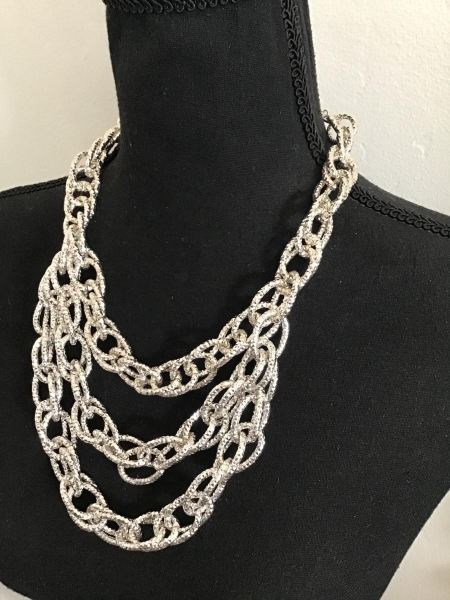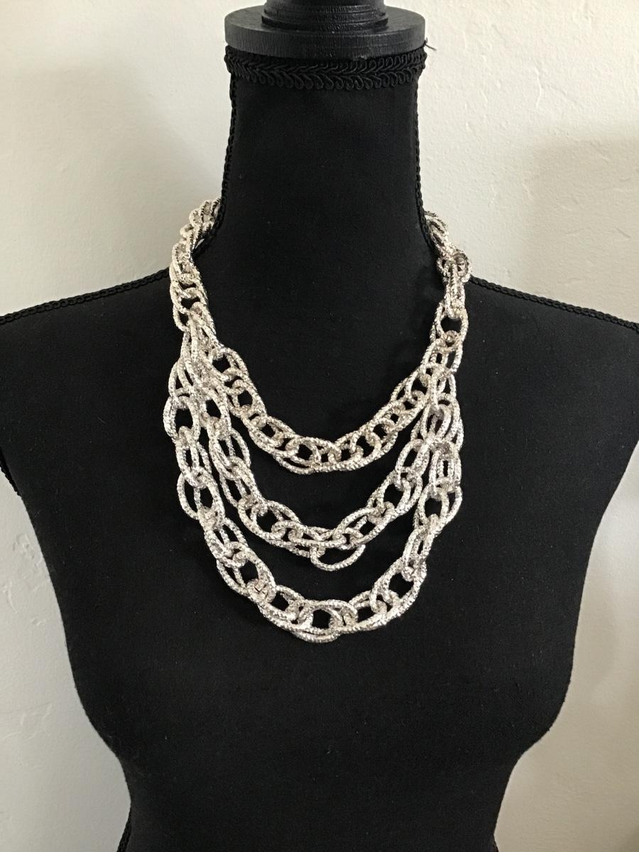 Really pretty chrome silver chunky chain link multi strand statement, necklace