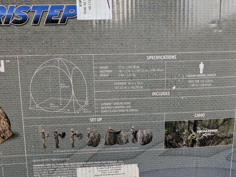 Realtree Xtra, Gunman Spring Steel Ground Blind, 1 Person Hunting Capacity - New
