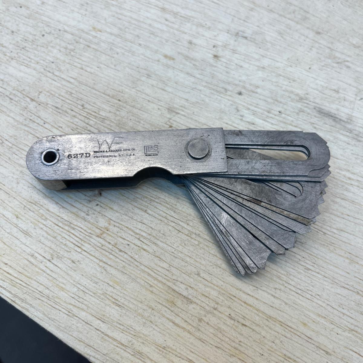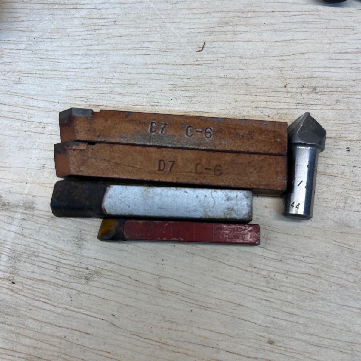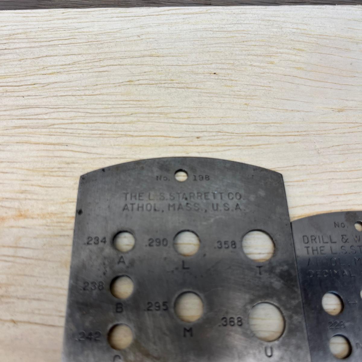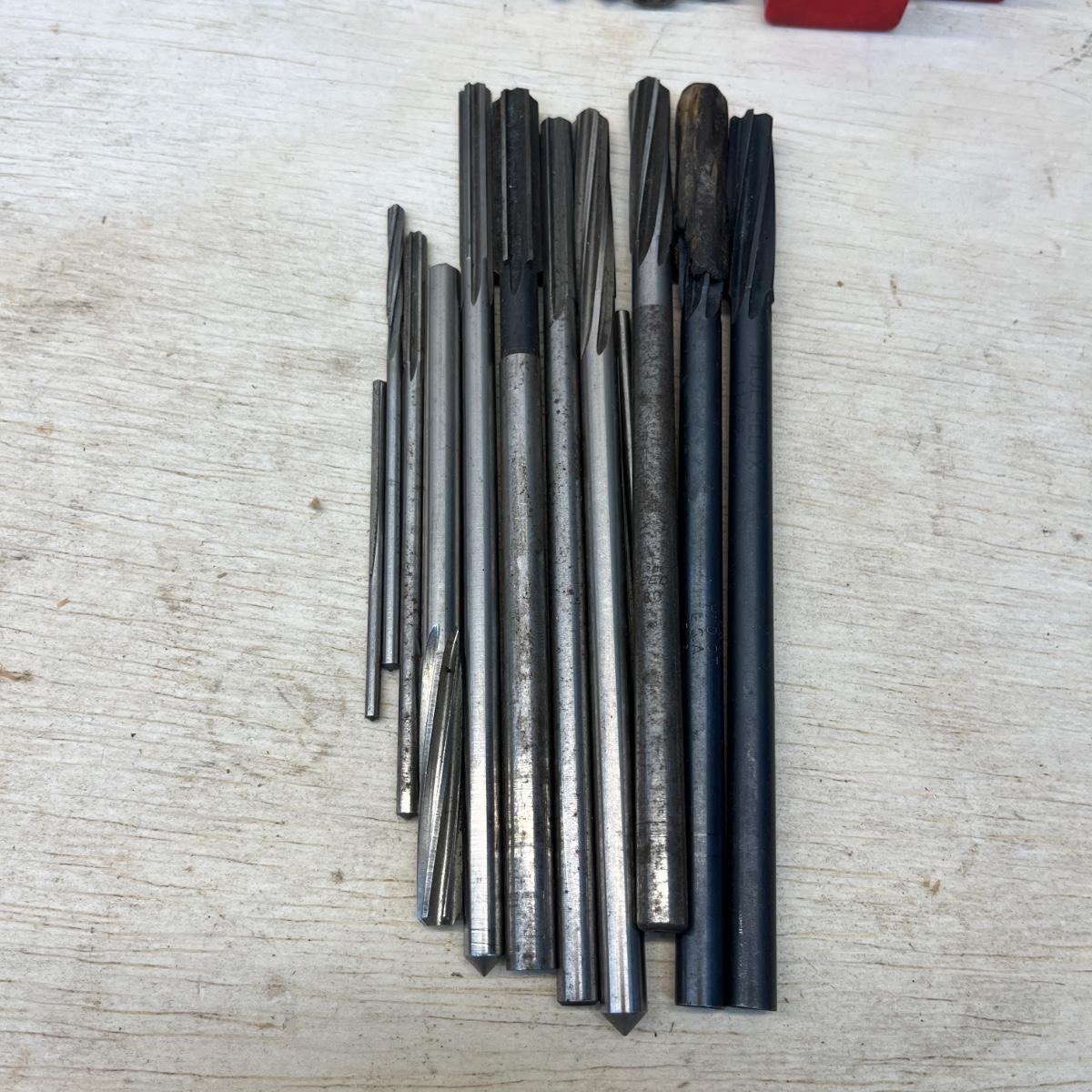 Lot includes Brown & Sharpe thread pitch gauge, Starrett thread pitch gauge, reamers, lathe cutting bits, drill bit gauges and more. Largest drill bit gauge measures 2.5” x 6.5”H.
